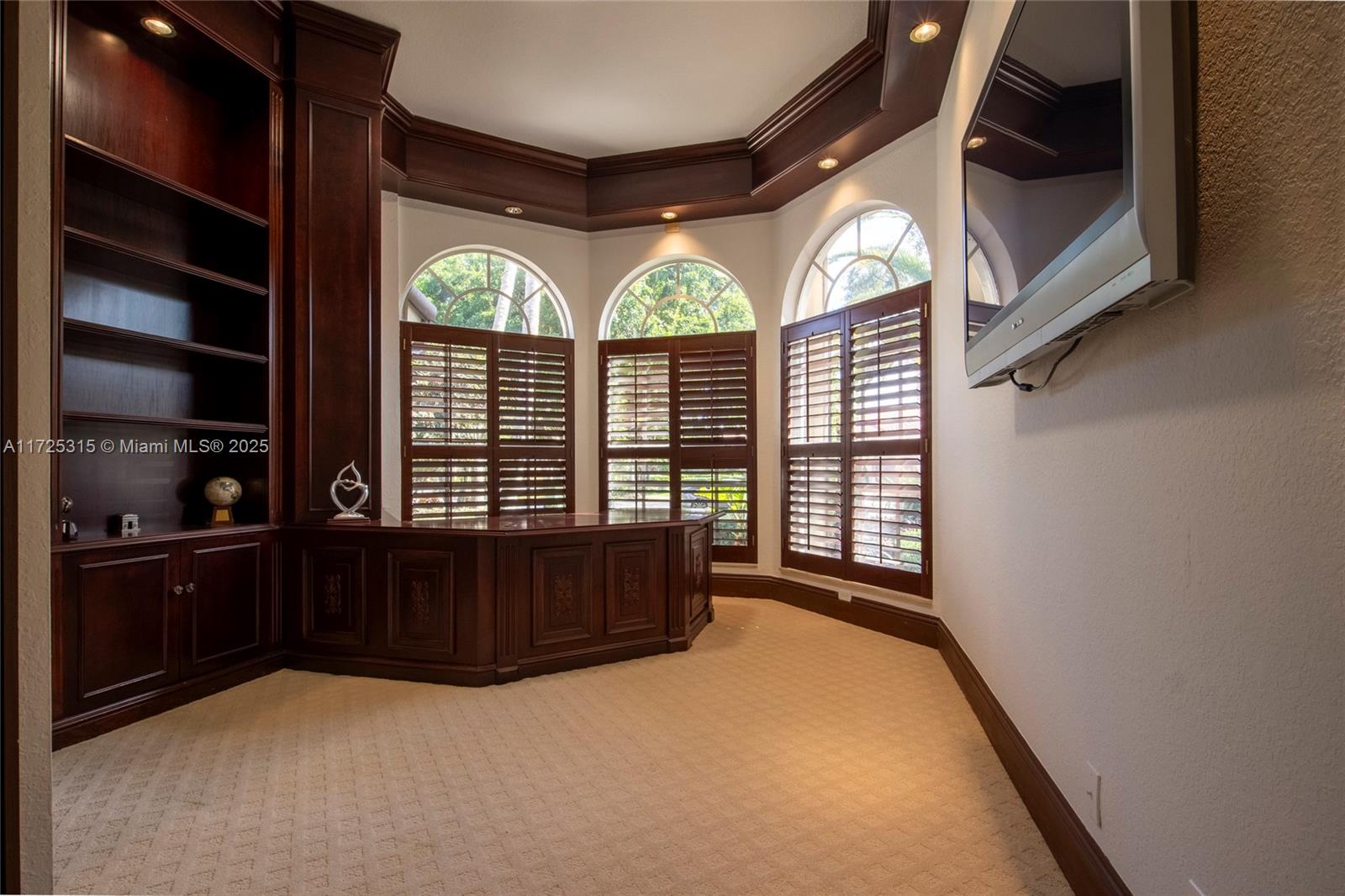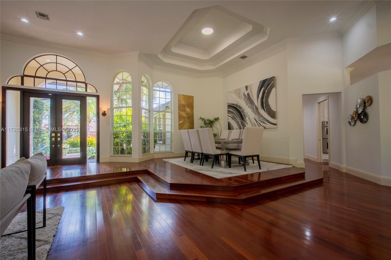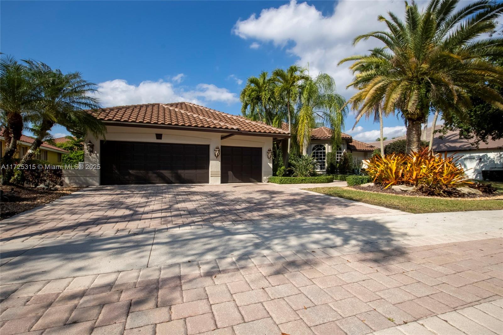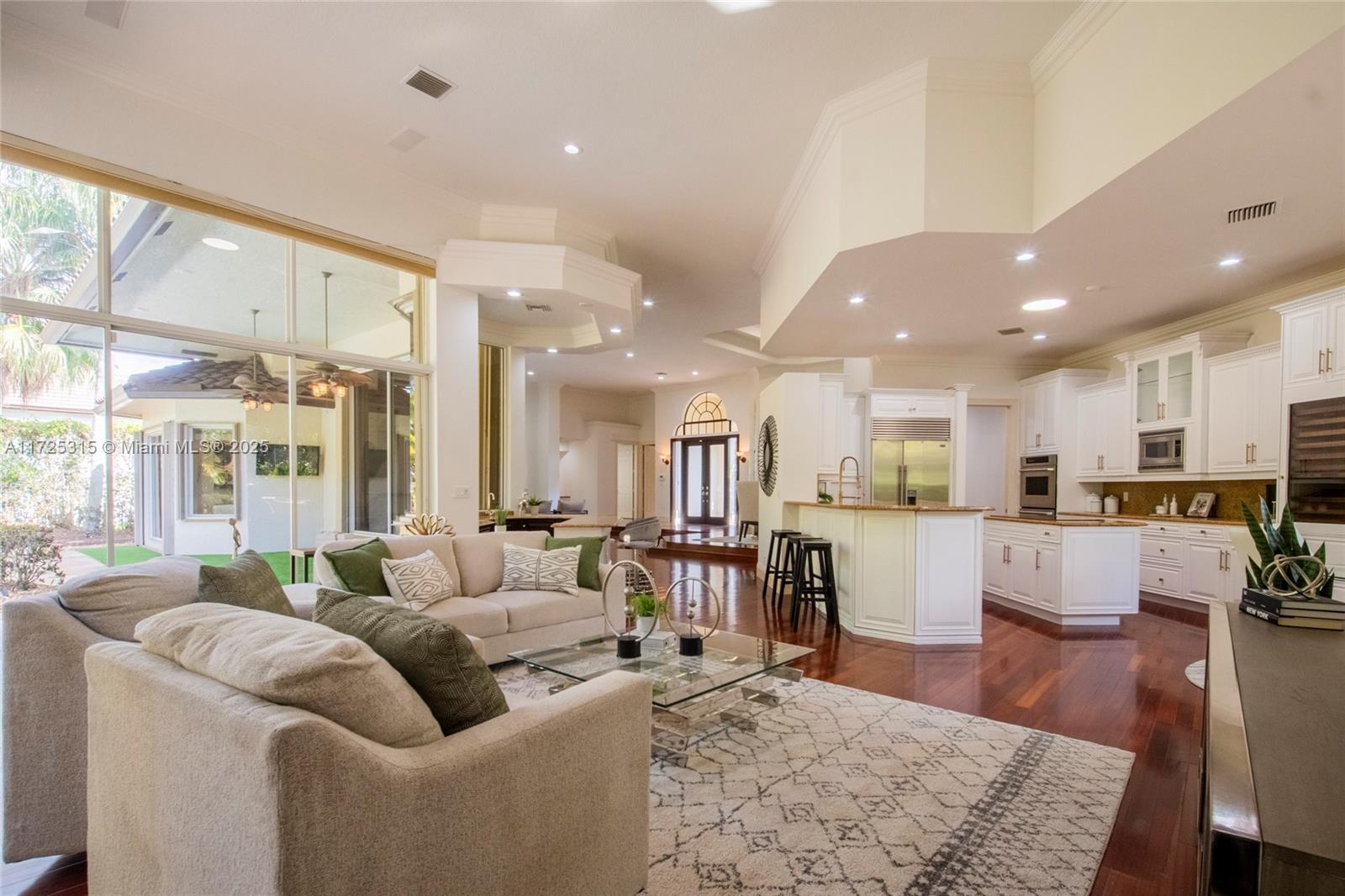 Set on beautifully landscaped 14418 sqft lot, this custom 3,818 sqft residence offers 2020 roof, paver driveway, and accordion shutters. Inside, rich wood flooring, fresh paint, and refined crown molding. At heart of the home, chef's kitchen showcasing white cabinetry, granite countertops, Sub-Zero refrigerator, and Thermador cooking appliances. Expansive primary suite is a retreat with tray ceilings, dual closets, spa-inspired bath, and direct access to backyard. Three additional bedrooms, private office, and 3.2 baths ensure ample space for family and guests, while thoughtful upgrades: LED lighting, cabana bath, and epoxy-finished garage. Outside, unwind in your own paradise: saltwater pool and spa framed by travertine deck. Perfect blend of luxury, function, and style!