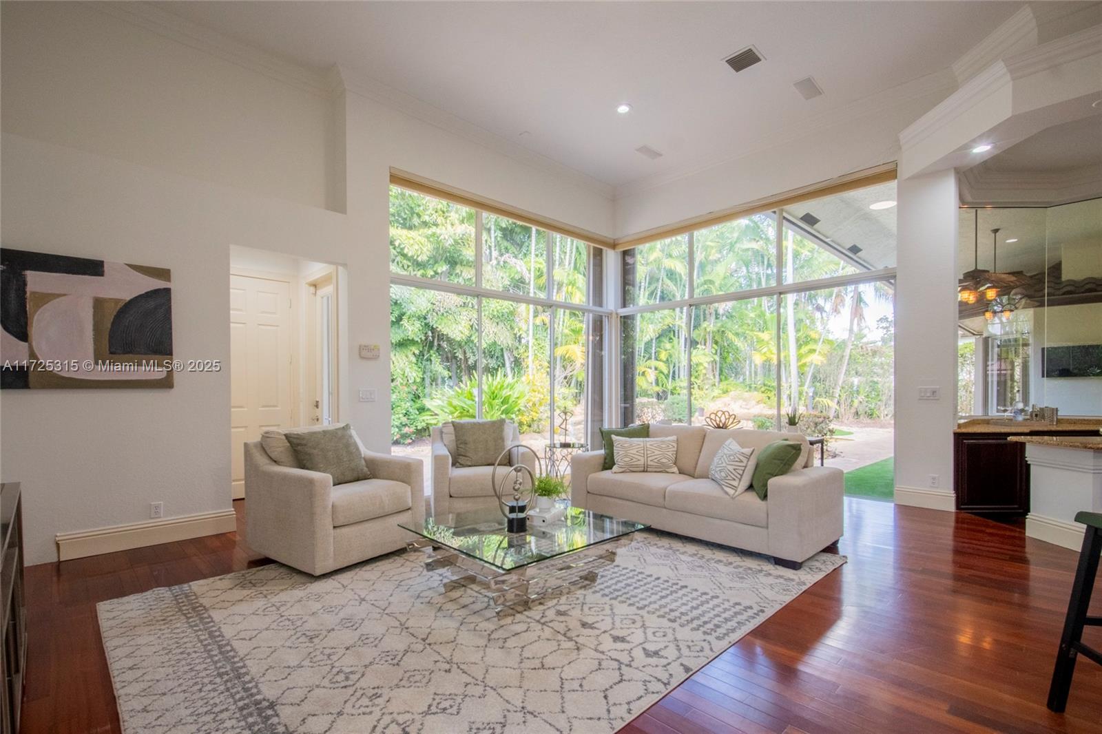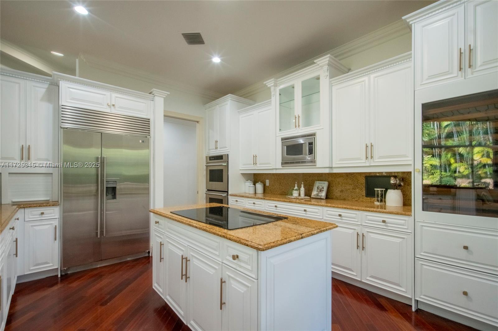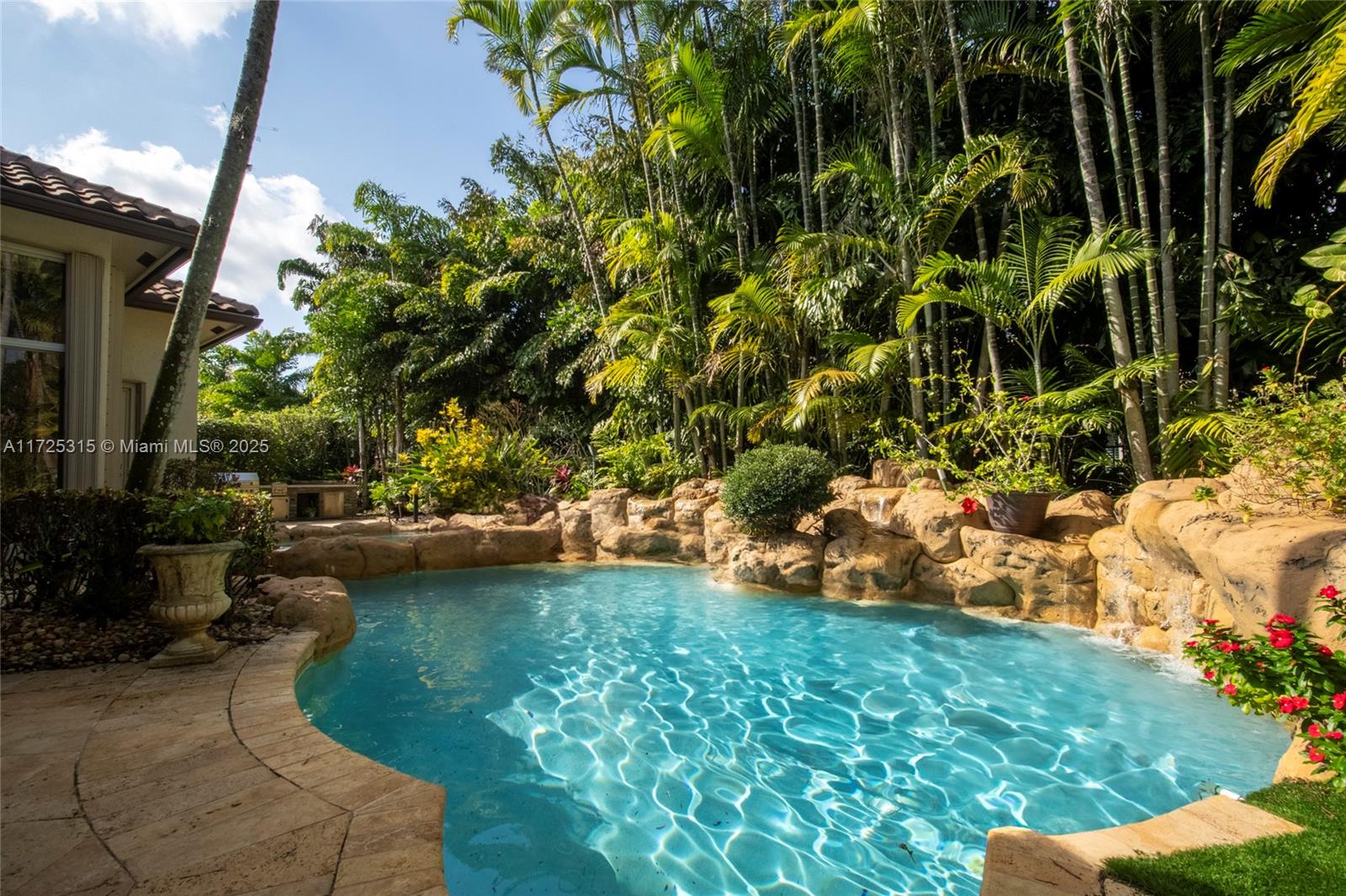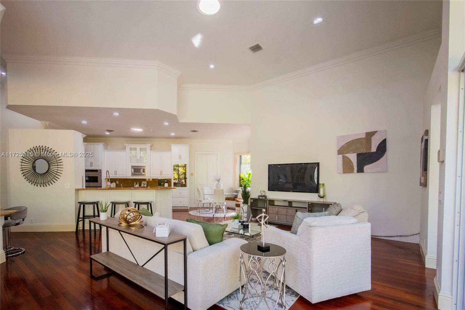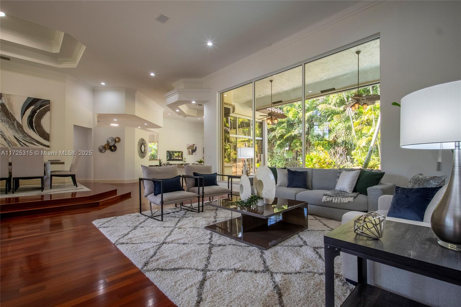 Set on beautifully landscaped 14418 sqft lot, this custom 3,818 sqft residence offers 2020 roof, paver driveway, and accordion shutters. Inside, rich wood flooring, fresh paint, and refined crown molding. At heart of the home, chef's kitchen showcasing white cabinetry, granite countertops, Sub-Zero refrigerator, and Thermador cooking appliances. Expansive primary suite is a retreat with tray ceilings, dual closets, spa-inspired bath, and direct access to backyard. Three additional bedrooms, private office, and 3.2 baths ensure ample space for family and guests, while thoughtful upgrades: LED lighting, cabana bath, and epoxy-finished garage. Outside, unwind in your own paradise: saltwater pool and spa framed by travertine deck. Perfect blend of luxury, function, and style!