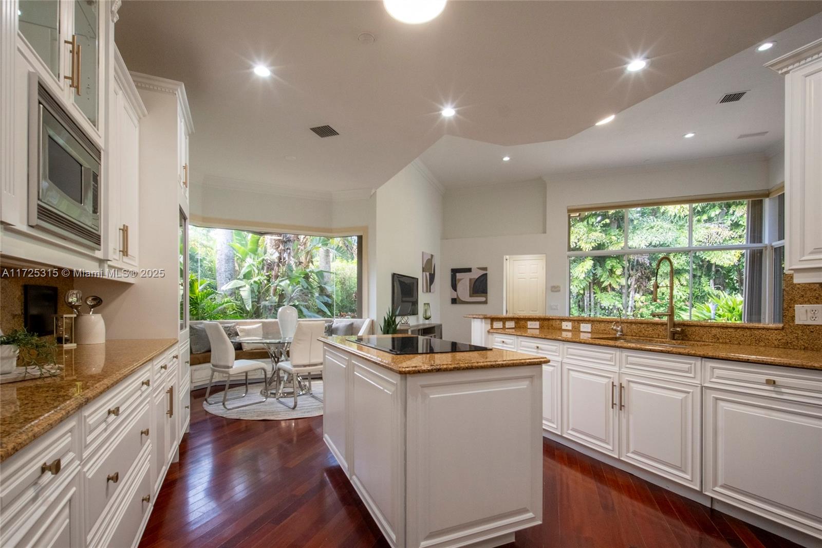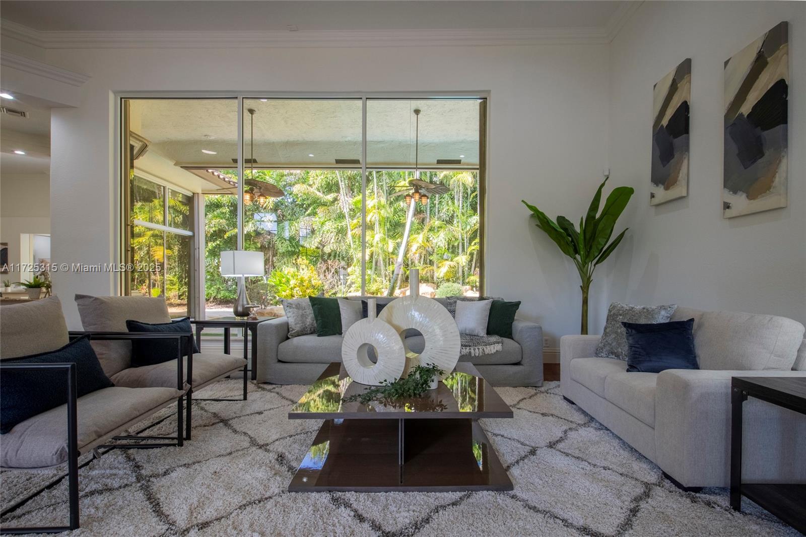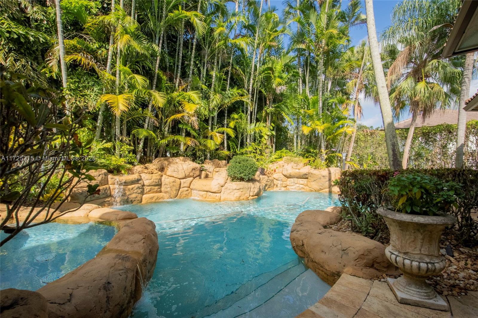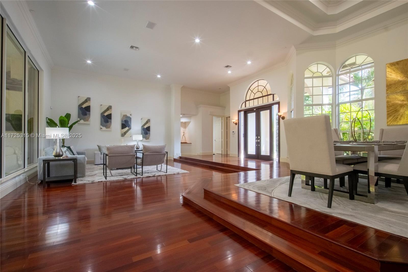 Set on beautifully landscaped 14418 sqft lot, this custom 3,818 sqft residence offers 2020 roof, paver driveway, and accordion shutters. Inside, rich wood flooring, fresh paint, and refined crown molding. At heart of the home, chef's kitchen showcasing white cabinetry, granite countertops, Sub-Zero refrigerator, and Thermador cooking appliances. Expansive primary suite is a retreat with tray ceilings, dual closets, spa-inspired bath, and direct access to backyard. Three additional bedrooms, private office, and 3.2 baths ensure ample space for family and guests, while thoughtful upgrades: LED lighting, cabana bath, and epoxy-finished garage. Outside, unwind in your own paradise: saltwater pool and spa framed by travertine deck. Perfect blend of luxury, function, and style!