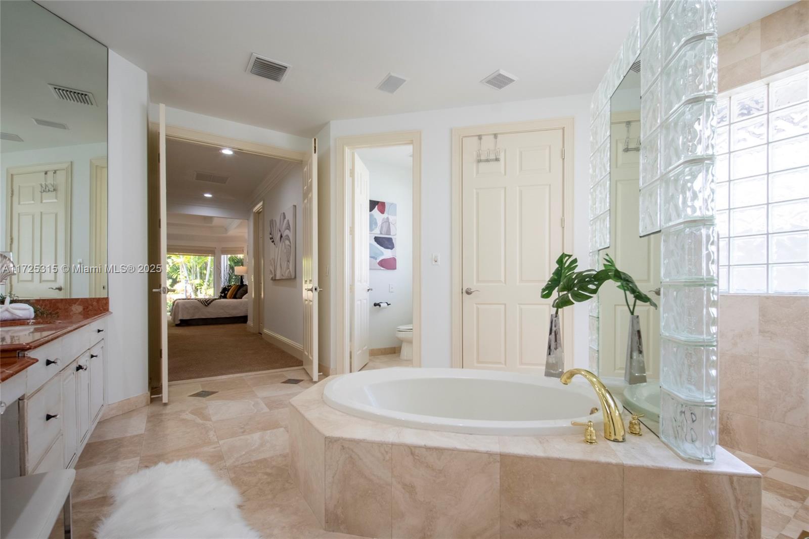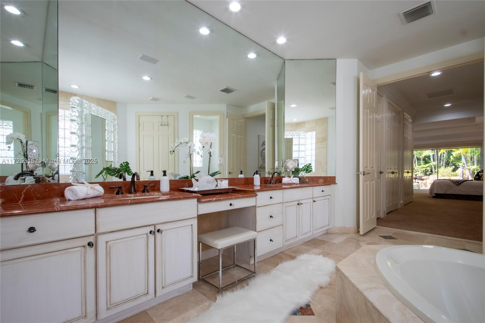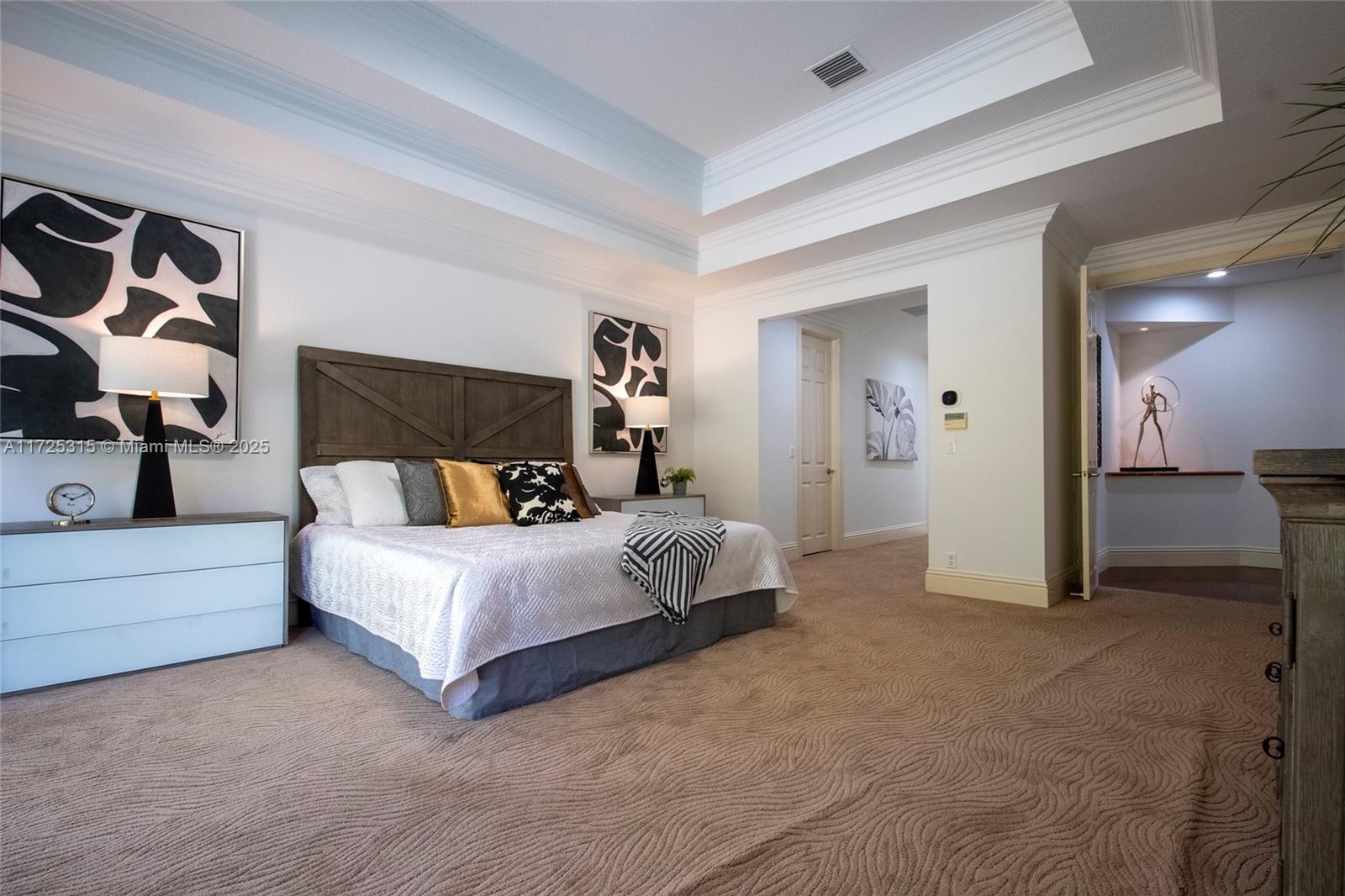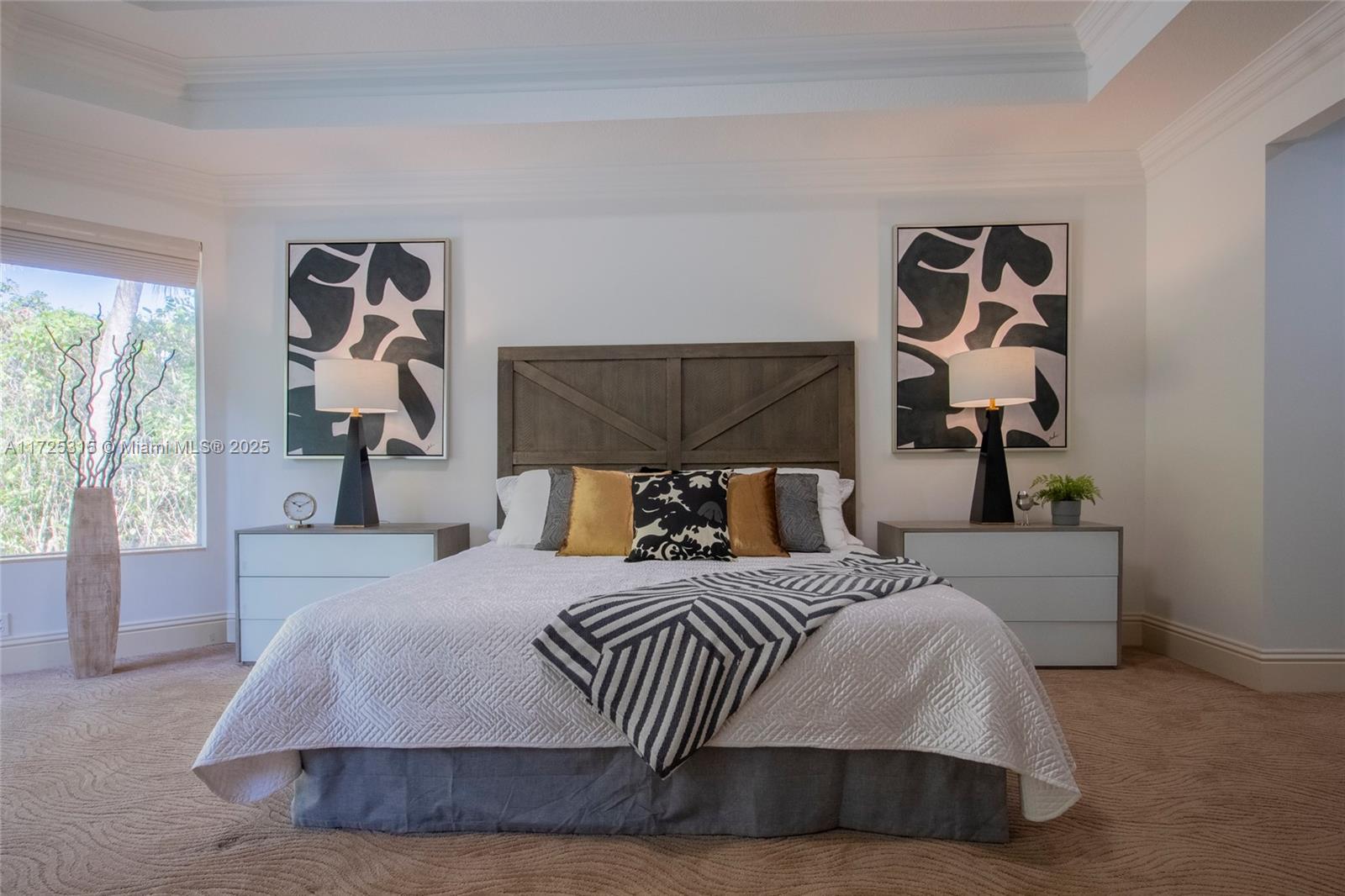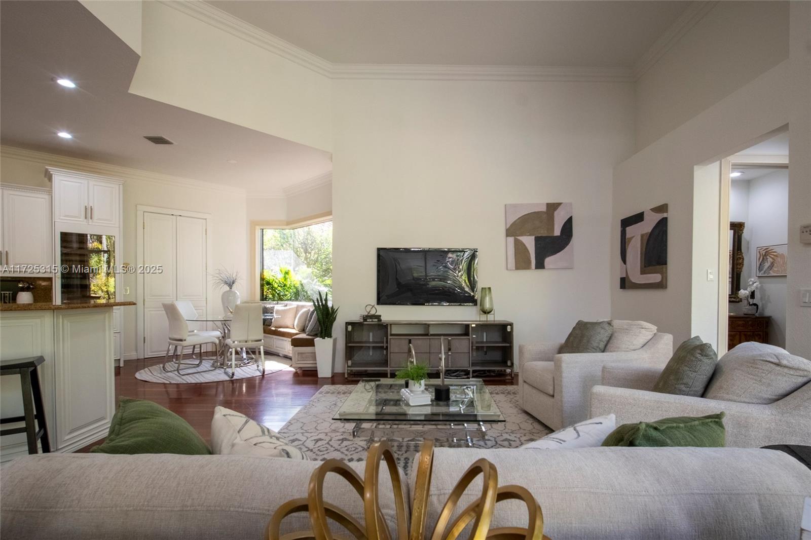Set on beautifully landscaped 14418 sqft lot, this custom 3,818 sqft residence offers 2020 roof, paver driveway, and accordion shutters. Inside, rich wood flooring, fresh paint, and refined crown molding. At heart of the home, chef's kitchen showcasing white cabinetry, granite countertops, Sub-Zero refrigerator, and Thermador cooking appliances. Expansive primary suite is a retreat with tray ceilings, dual closets, spa-inspired bath, and direct access to backyard. Three additional bedrooms, private office, and 3.2 baths ensure ample space for family and guests, while thoughtful upgrades: LED lighting, cabana bath, and epoxy-finished garage. Outside, unwind in your own paradise: saltwater pool and spa framed by travertine deck. Perfect blend of luxury, function, and style!
