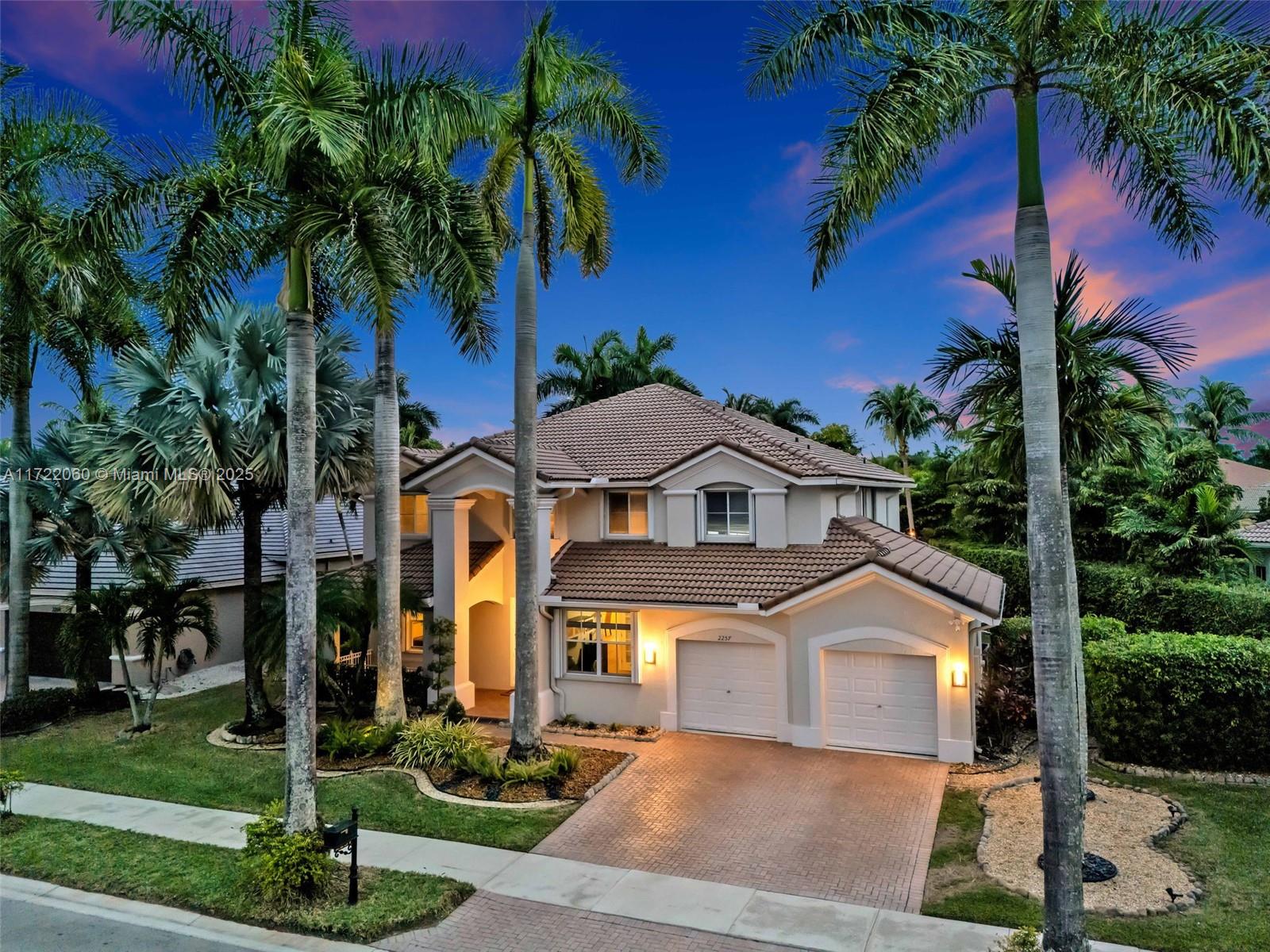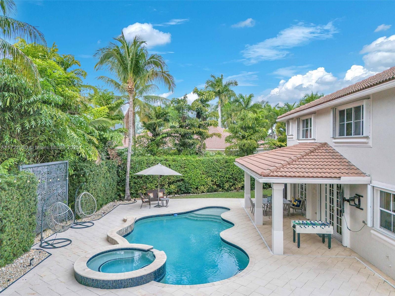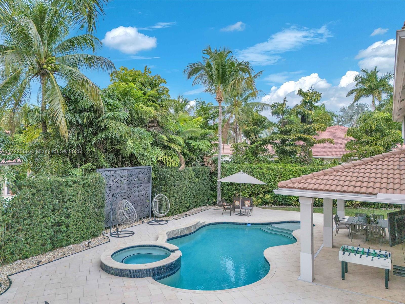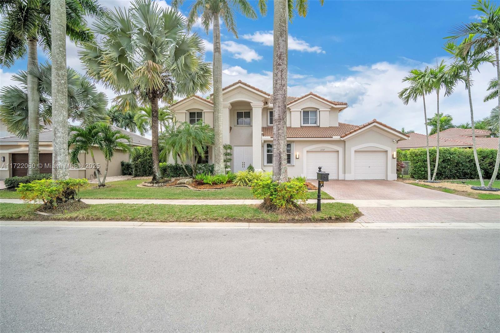 Oversize backyard with Serene private patio. WON'T LAST LONG! Welcome to the LARK Model, a magnificent residence located in the prestigious Weston Hills Golf Country Club community. This property boasts a sprawling private lot, featuring 6 spacious bedrooms, 5 bathrooms, a private office & a game-room. Italian porcelain floor on the first floor. The chef-inspired kitchen is a true highlight, complete with a stunning luxury island and an open-concept design, Pompei Quartz countertops perfect for seamless entertaining. Step outside to discover a modern Heated pool with a Diamond Brite Jacuzzi, overlooking a serene private patio that offers the ultimate in relaxation and tranquility, all set against the picturesque backdrop wall. Ideally located near the Weston town center & top-tier schools.