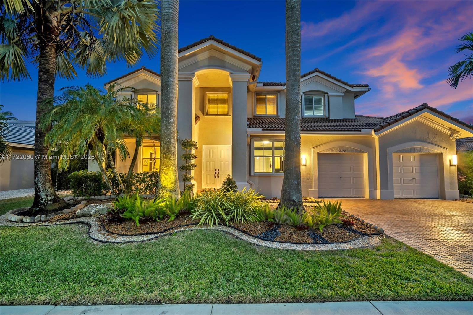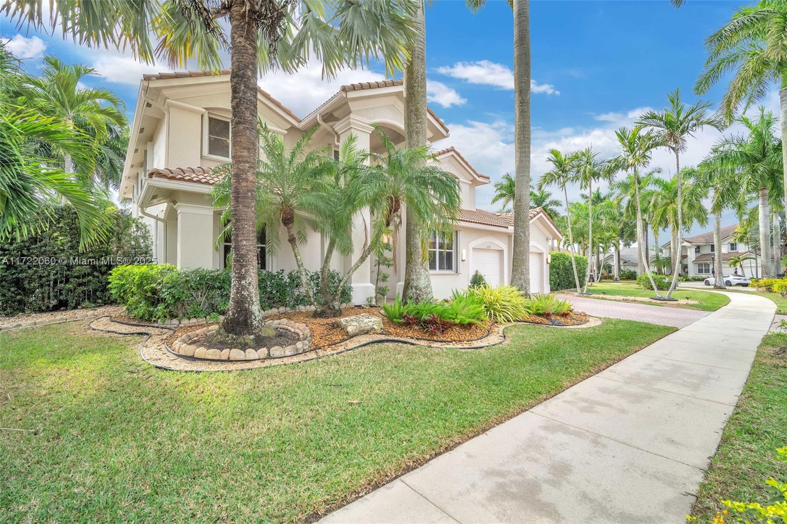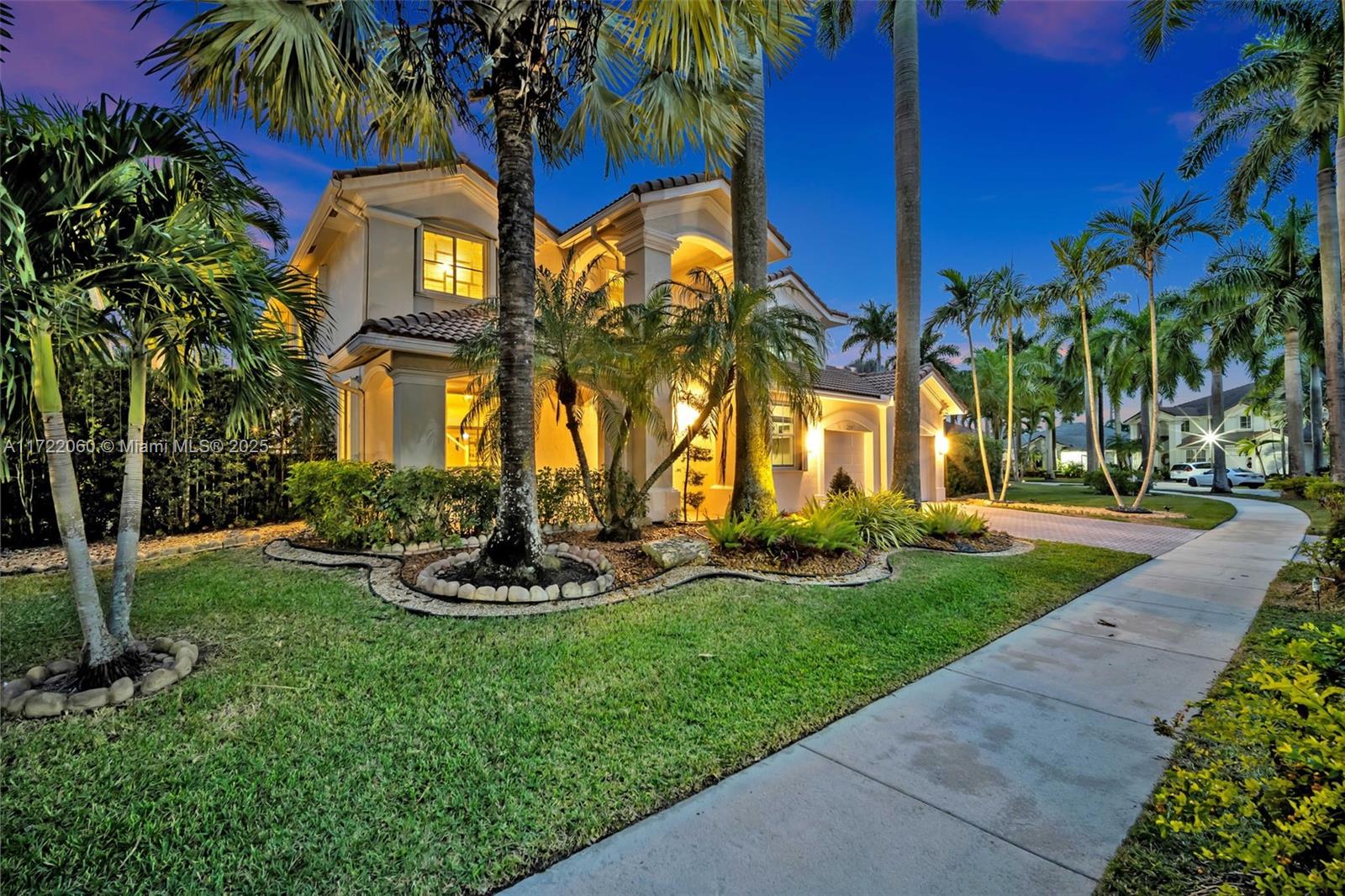 Oversize backyard with Serene private patio. WON'T LAST LONG! Welcome to the LARK Model, a magnificent residence located in the prestigious Weston Hills Golf Country Club community. This property boasts a sprawling private lot, featuring 6 spacious bedrooms, 5 bathrooms, a private office & a game-room. Italian porcelain floor on the first floor. The chef-inspired kitchen is a true highlight, complete with a stunning luxury island and an open-concept design, Pompei Quartz countertops perfect for seamless entertaining. Step outside to discover a modern Heated pool with a Diamond Brite Jacuzzi, overlooking a serene private patio that offers the ultimate in relaxation and tranquility, all set against the picturesque backdrop wall. Ideally located near the Weston town center & top-tier schools.