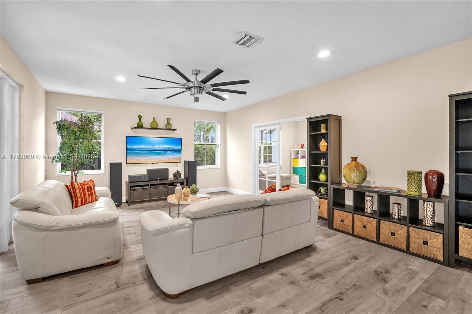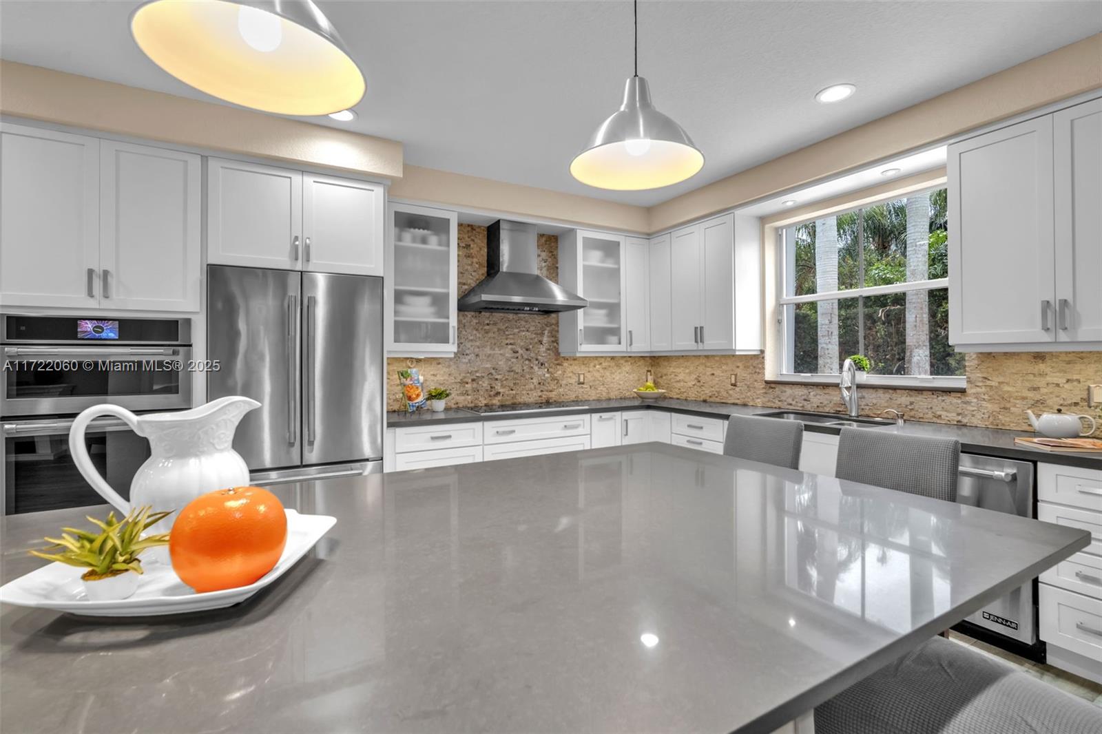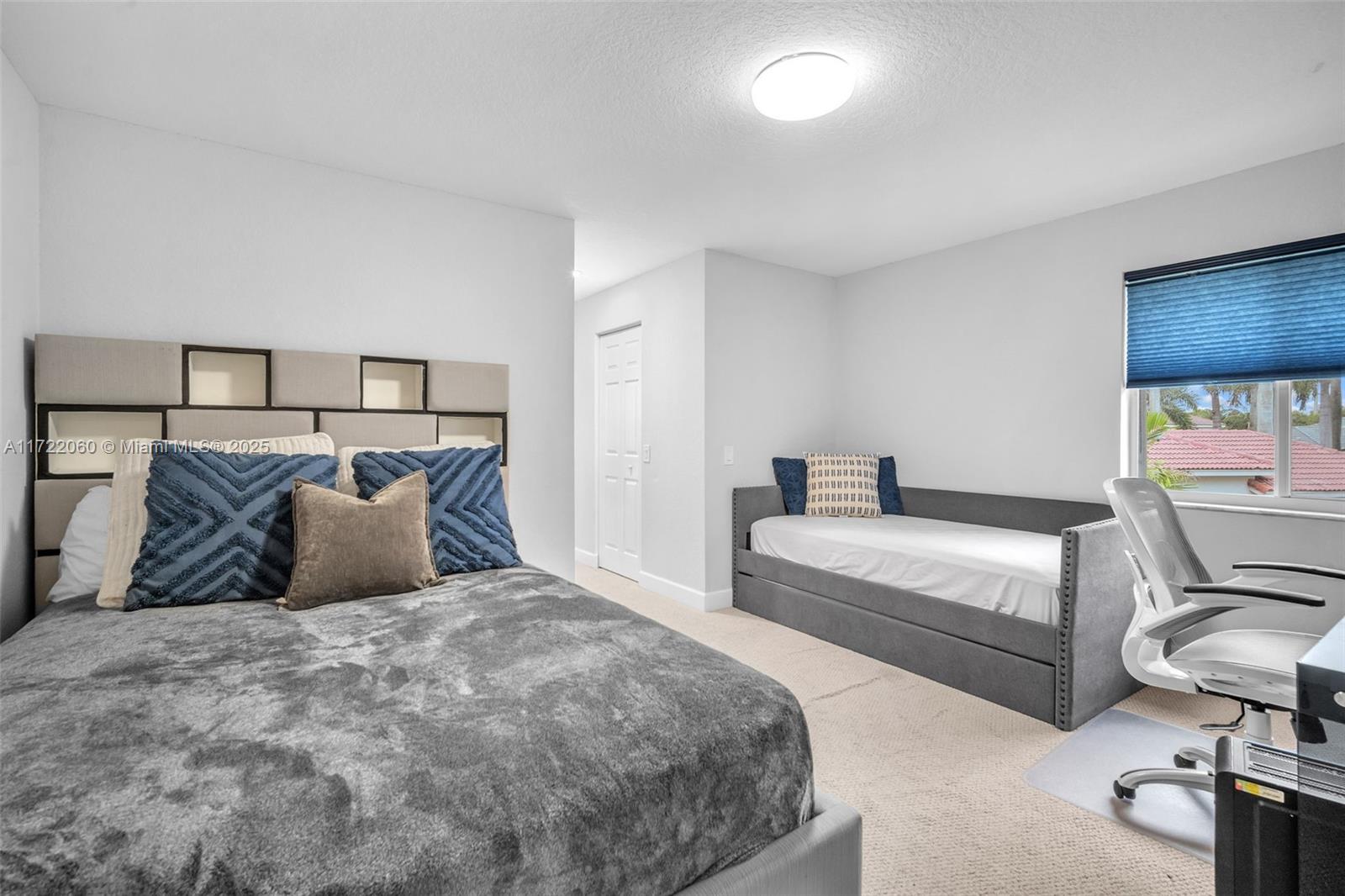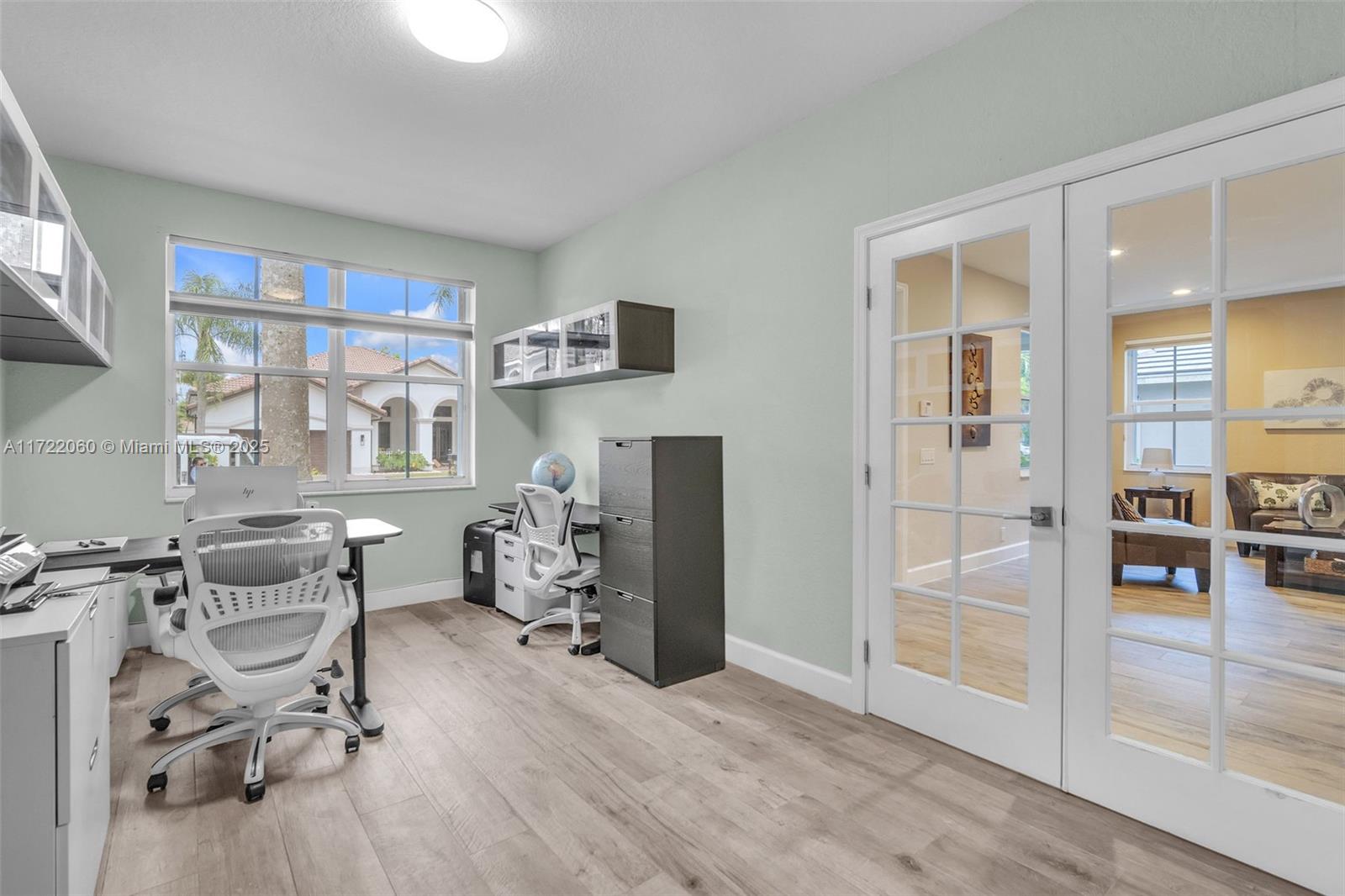 Oversize backyard with Serene private patio. WON'T LAST LONG! Welcome to the LARK Model, a magnificent residence located in the prestigious Weston Hills Golf Country Club community. This property boasts a sprawling private lot, featuring 6 spacious bedrooms, 5 bathrooms, a private office & a game-room. Italian porcelain floor on the first floor. The chef-inspired kitchen is a true highlight, complete with a stunning luxury island and an open-concept design, Pompei Quartz countertops perfect for seamless entertaining. Step outside to discover a modern Heated pool with a Diamond Brite Jacuzzi, overlooking a serene private patio that offers the ultimate in relaxation and tranquility, all set against the picturesque backdrop wall. Ideally located near the Weston town center & top-tier schools.