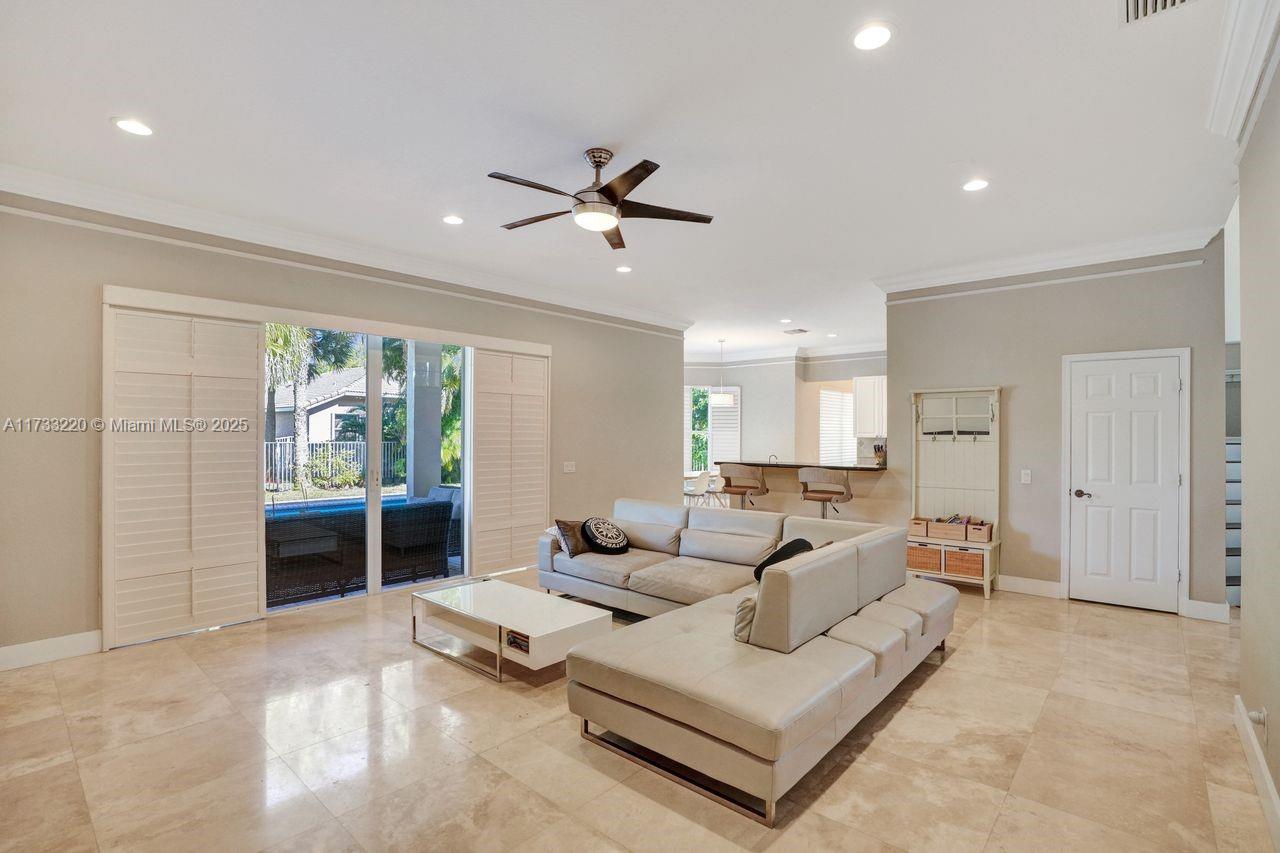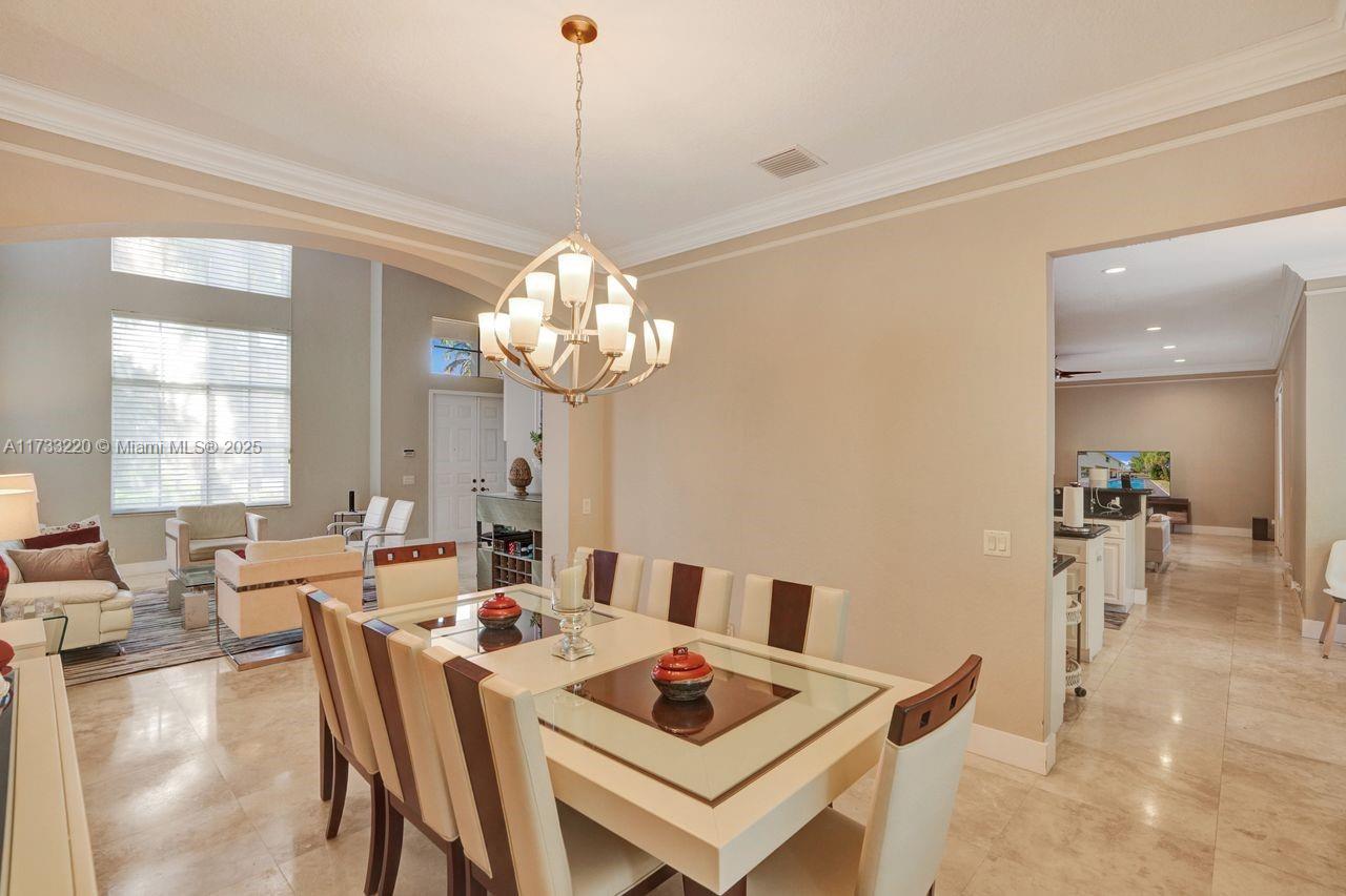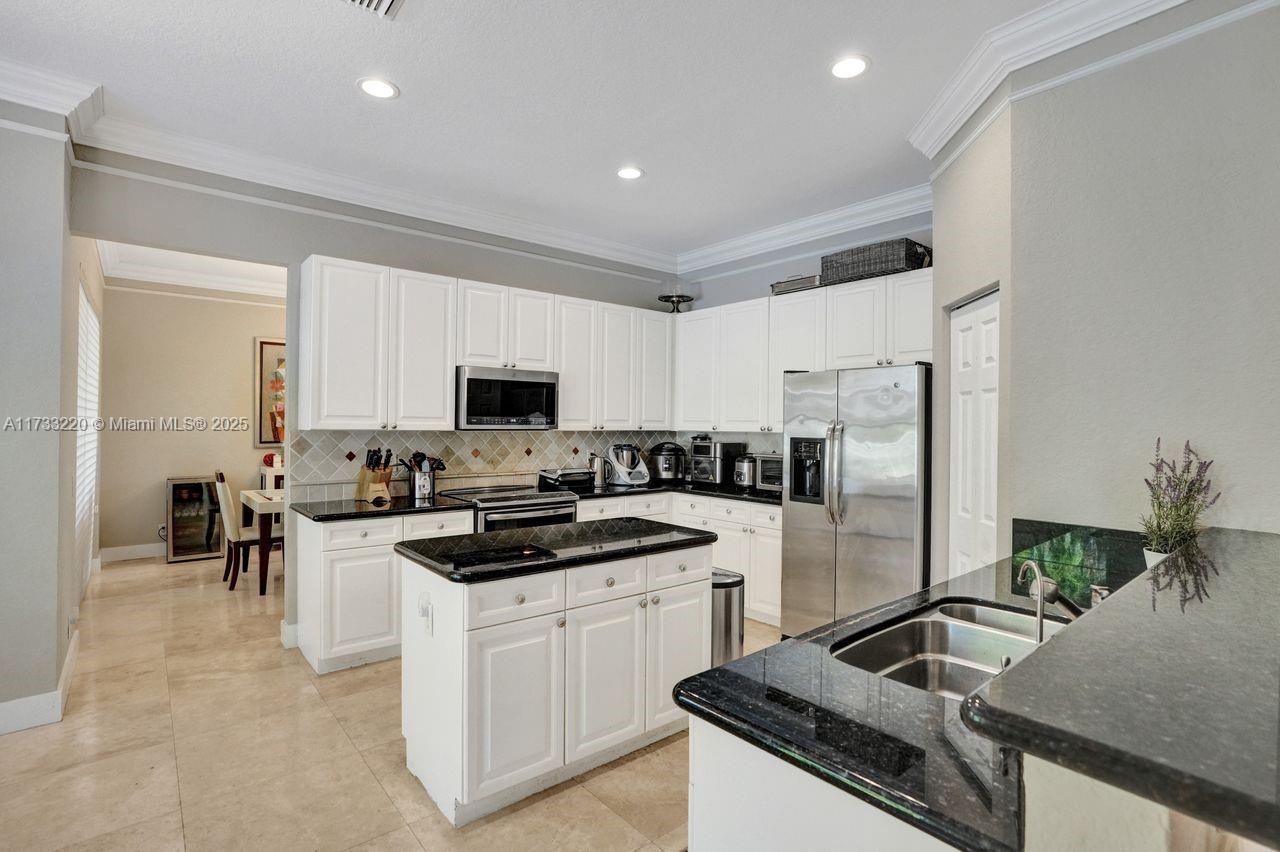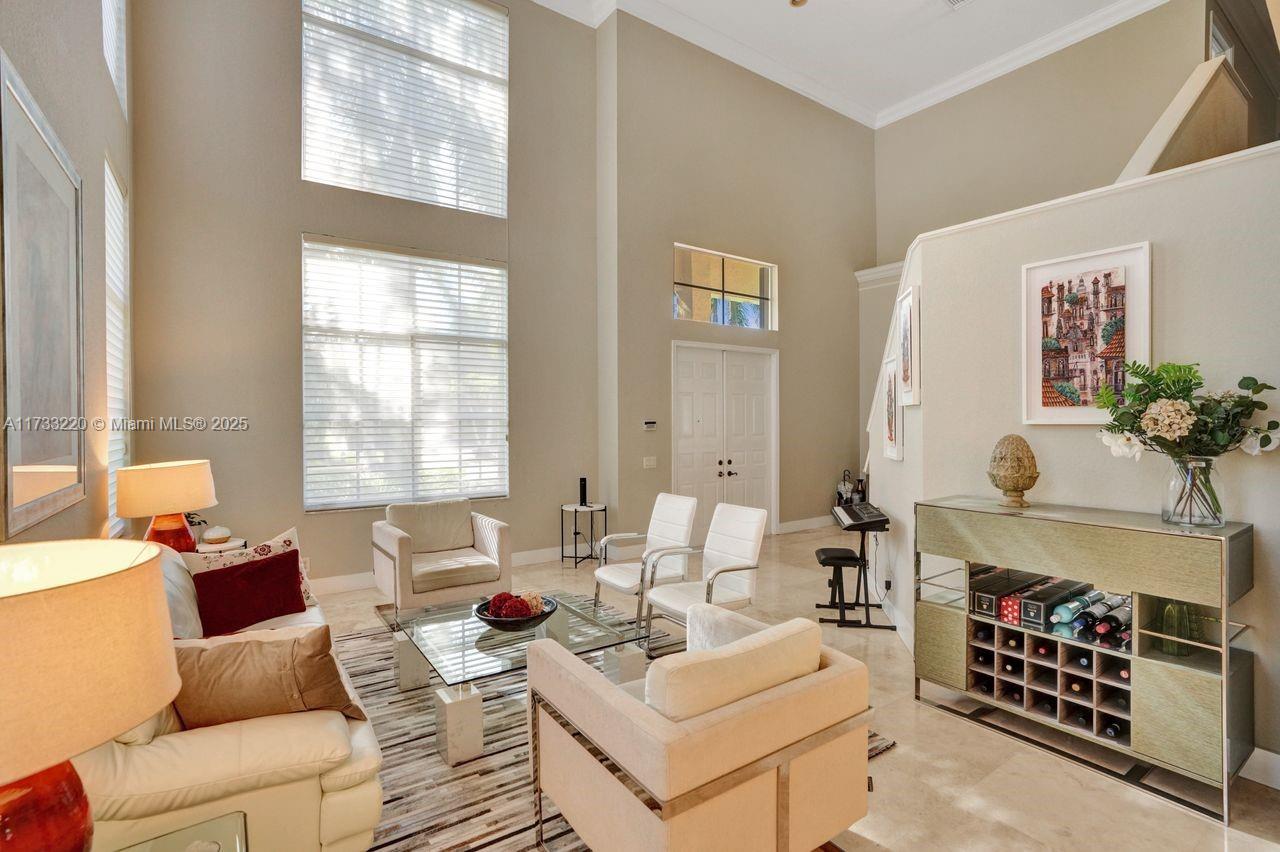 Luxurious living in this five-bedroom, five-bathroom, pool home inside the exclusive WHCC. Marble flooring throughout the downstairs area. Enjoy the convenience of a full bedroom and bath on the first Floor. Gourmet kitchen with a large center island, stainless steel appliances and exquisite granite countertops. Up to three cars, with motors garage doors that can be controlled remotely. The water heater with a pump which is very consuming efficient only 20% of the regular equivalent. One garage space is insulated and features air conditioning for ultimate hobby comfort, equipped with accordion hurricane protection and a manned gated community for peace of mind. Simply do not miss this home.