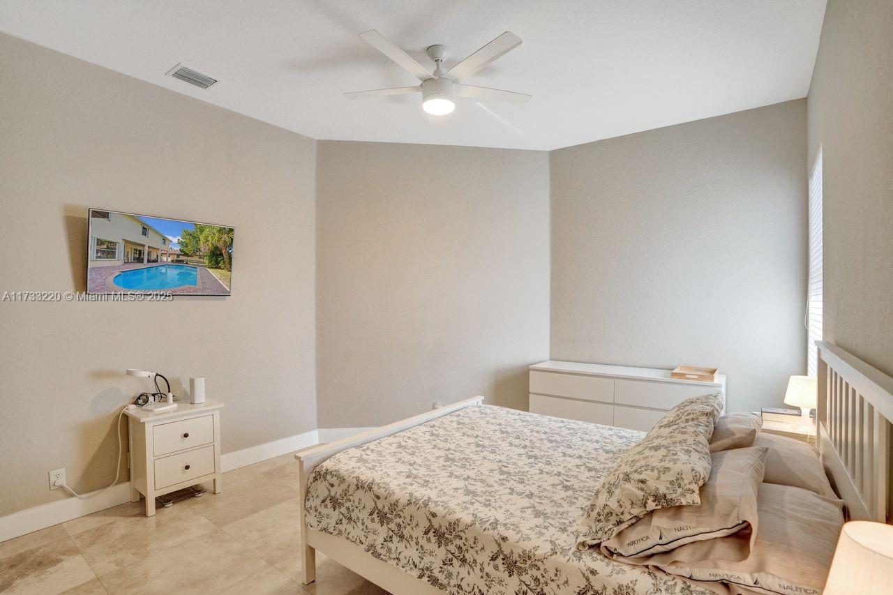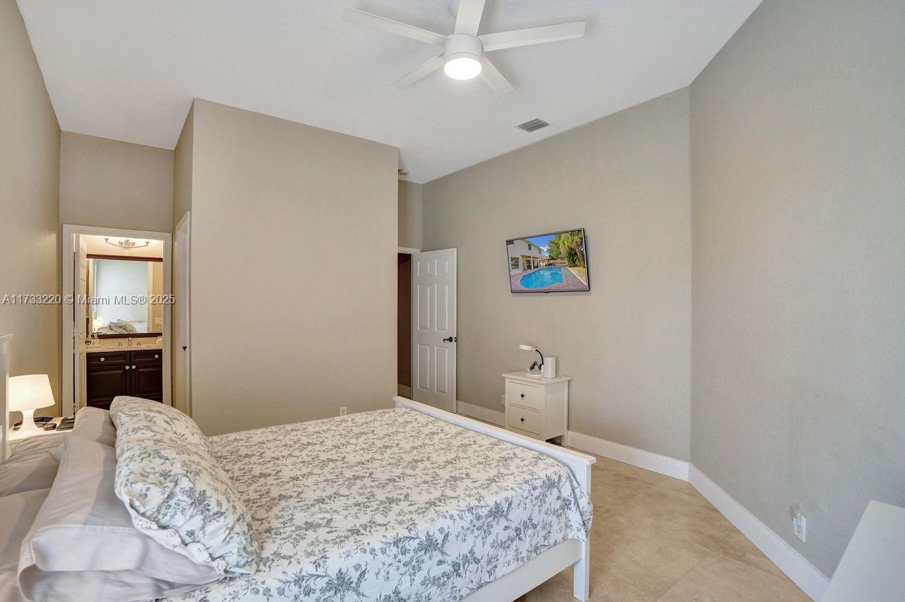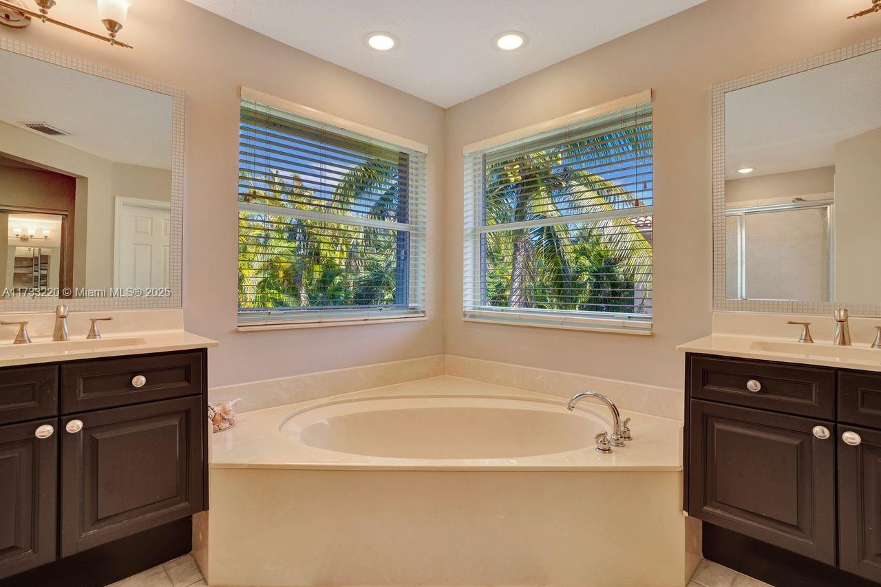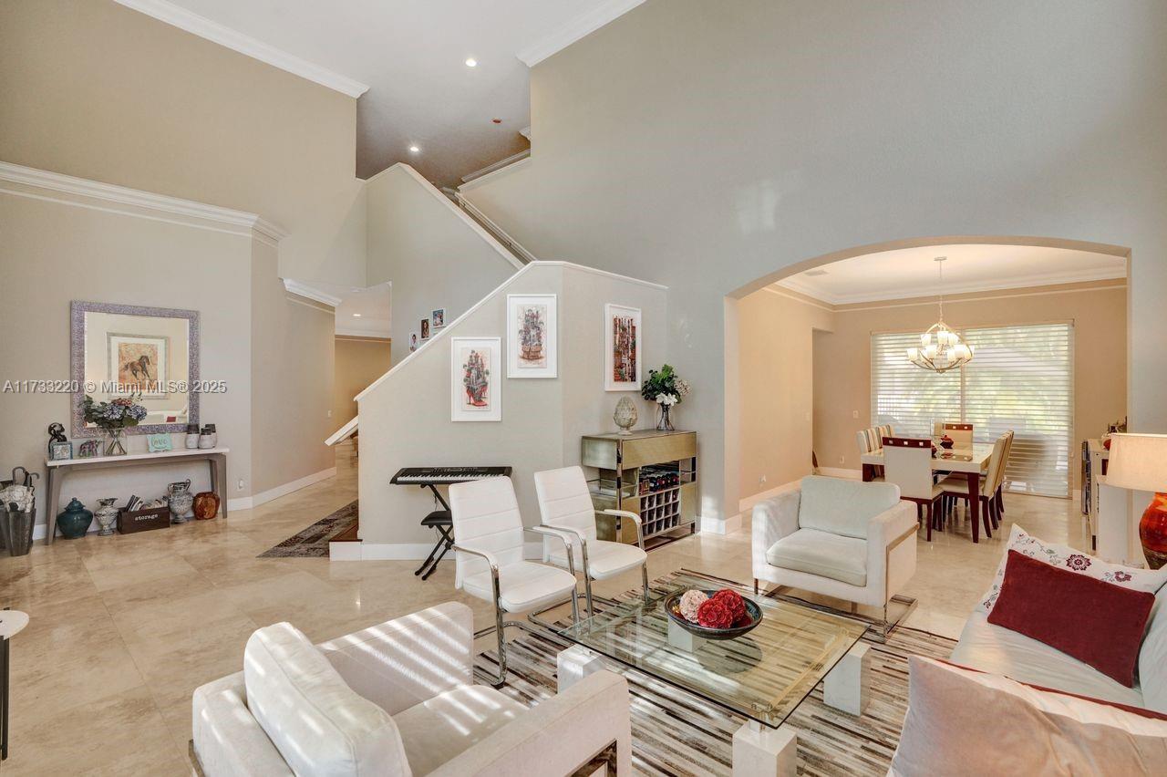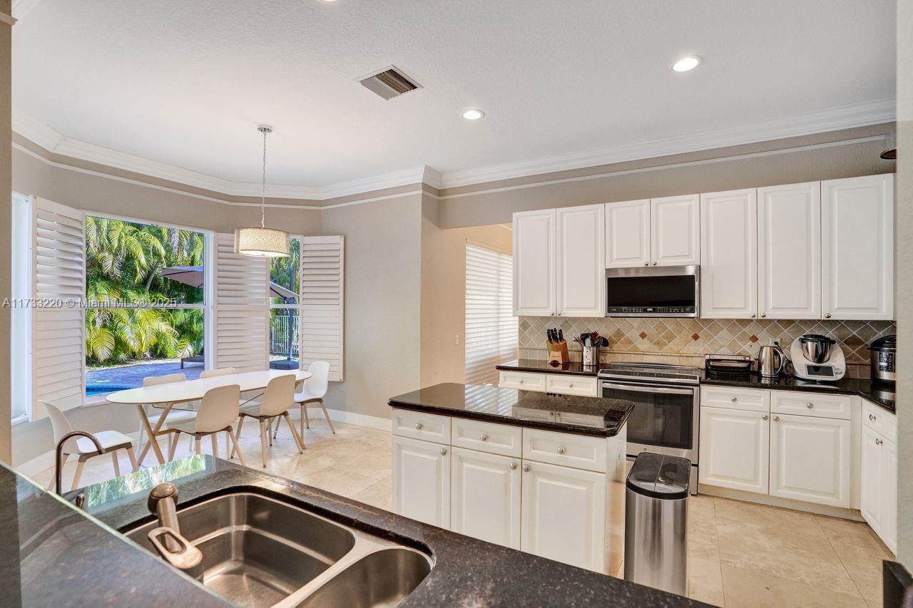 Luxurious living in this five-bedroom, five-bathroom, pool home inside the exclusive WHCC. Marble flooring throughout the downstairs area. Enjoy the convenience of a full bedroom and bath on the first Floor. Gourmet kitchen with a large center island, stainless steel appliances and exquisite granite countertops. Up to three cars, with motors garage doors that can be controlled remotely. The water heater with a pump which is very consuming efficient only 20% of the regular equivalent. One garage space is insulated and features air conditioning for ultimate hobby comfort, equipped with accordion hurricane protection and a manned gated community for peace of mind. Simply do not miss this home.