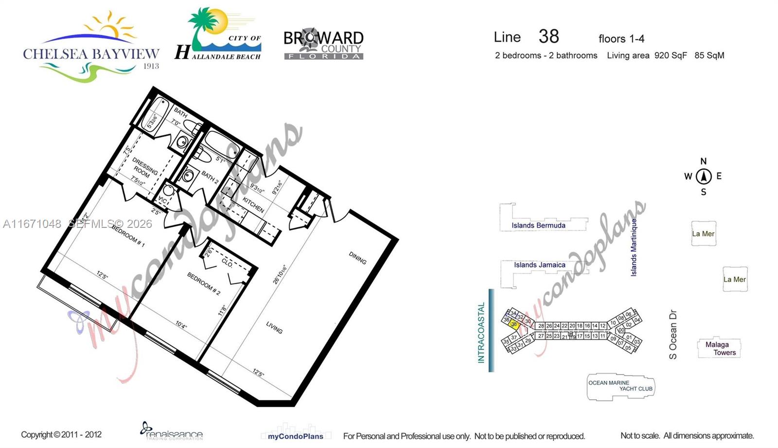 Intercoastal location, lush garden pool area, in the heart of Hallandale, with beachfront access. First floor, two bedrooms, two baths. Open-concept, updated kitchen, impact windows, tile floors. Well-managed resort-style, updated 4-story building with 40-year certification. Rentals are accepted after the first year of ownership. Minutes to the shopping malls, restaurants, and Gulfstream. An incredible opportunity in a prime location! PRICE drastically reduced to $247,000 !!!Owner pays assessments at closing! BUILDING