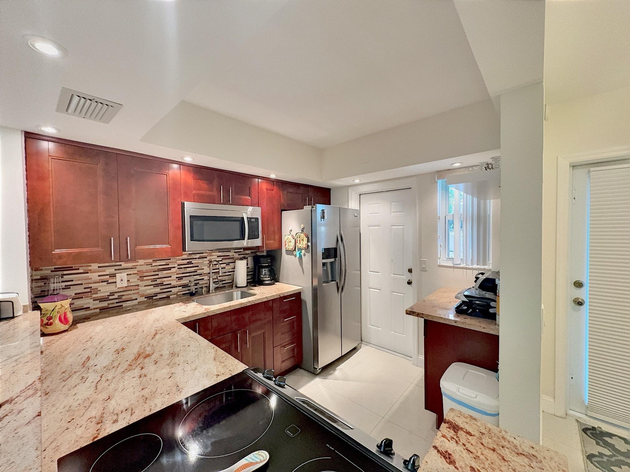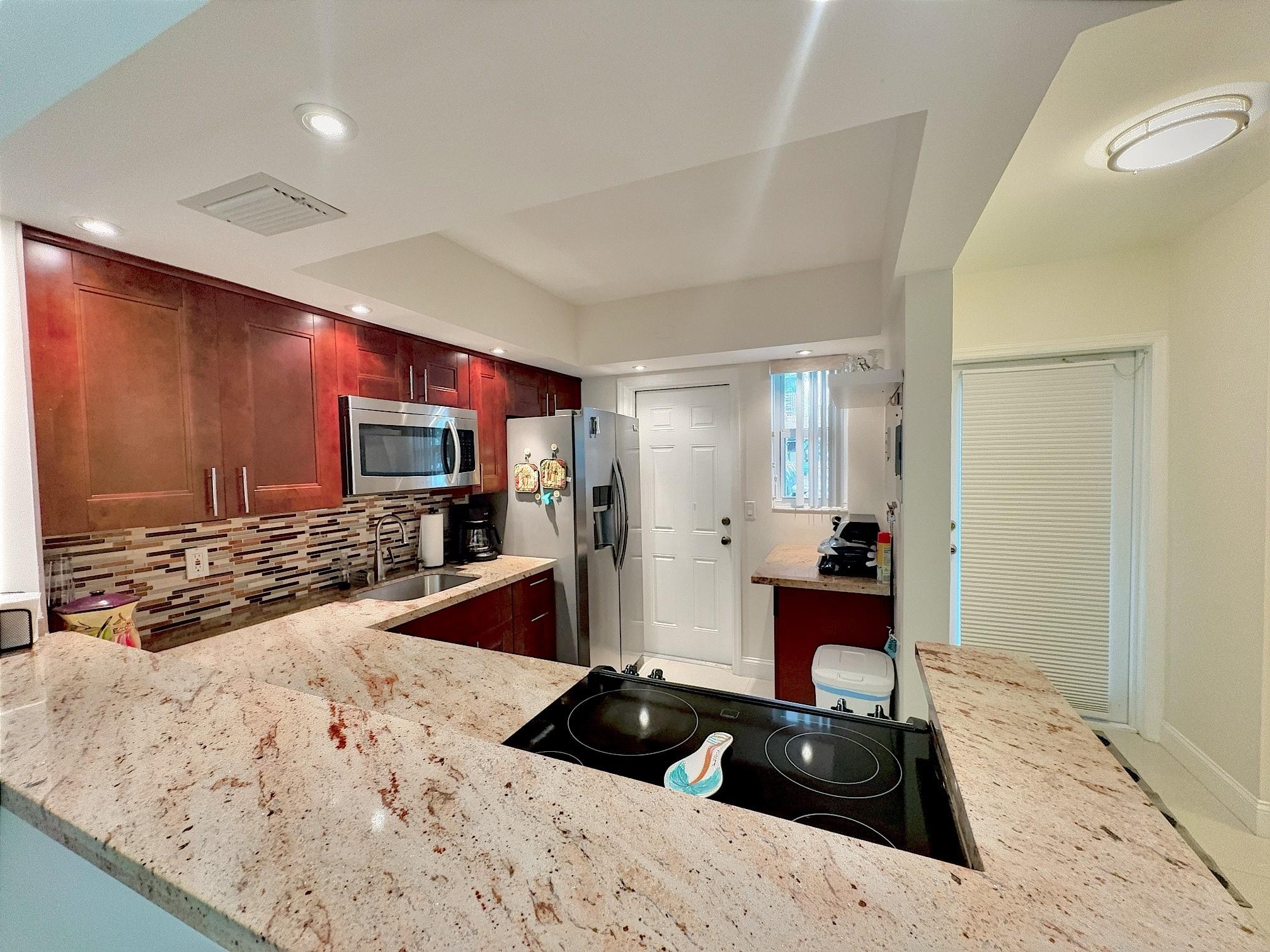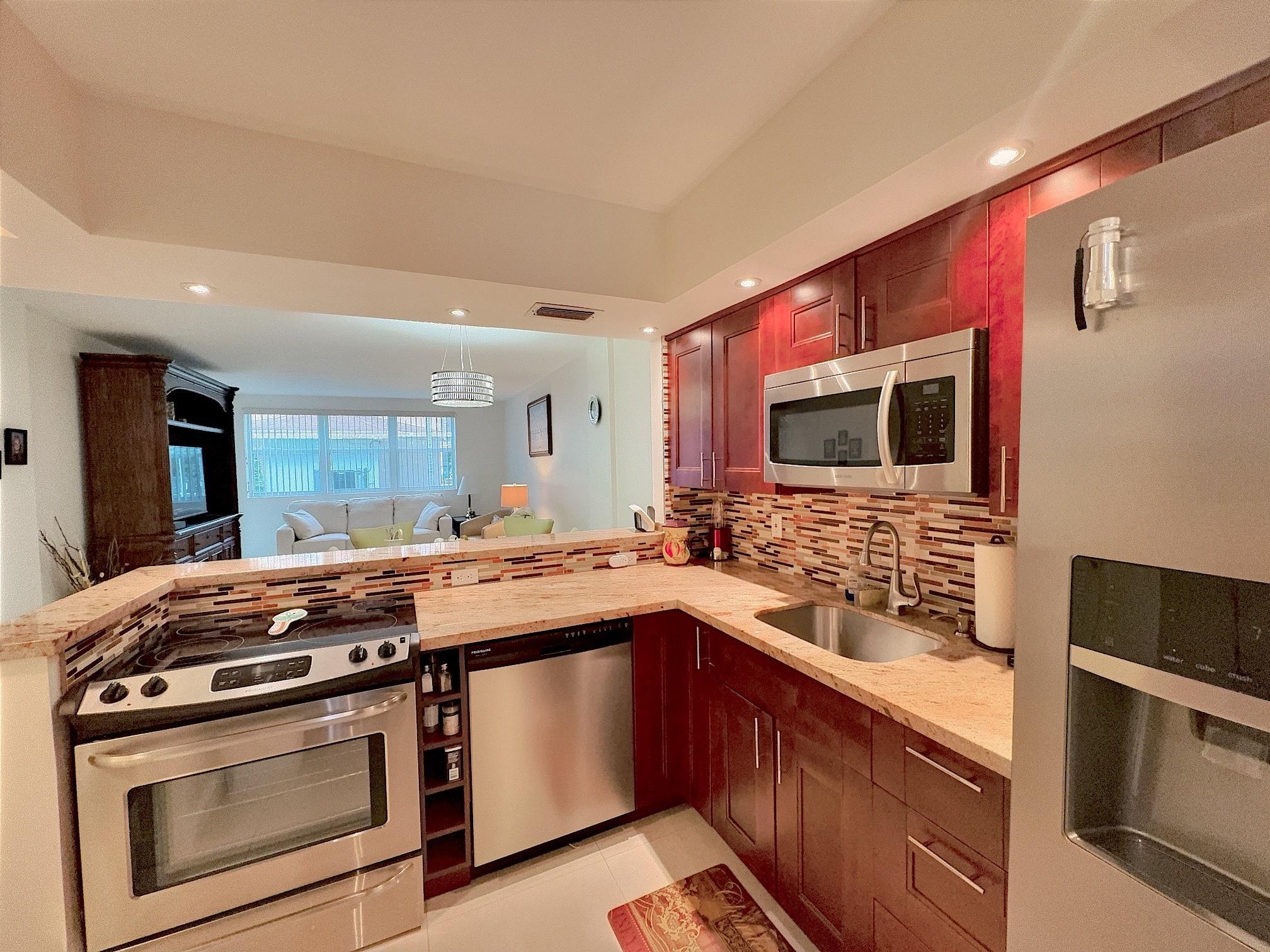 Beautifully updated 1-bedroom, 1-bathroom condo in the highly sought-after April Breeze community in Hallandale Beach! This unit features sleek porcelain tile throughout and an open floor plan with the kitchen wall removed for a modern feel. Step outside your back patio and enjoy being just steps from the sparkling community pool. Located less than 5 minutes from the beach, this home offers true coastal living. Across the street, you’ll find a Publix and a variety of restaurants. Upgrades include a tankless water heater and new AC. A must-see gem! Renting first year is ok!! Don't wait.