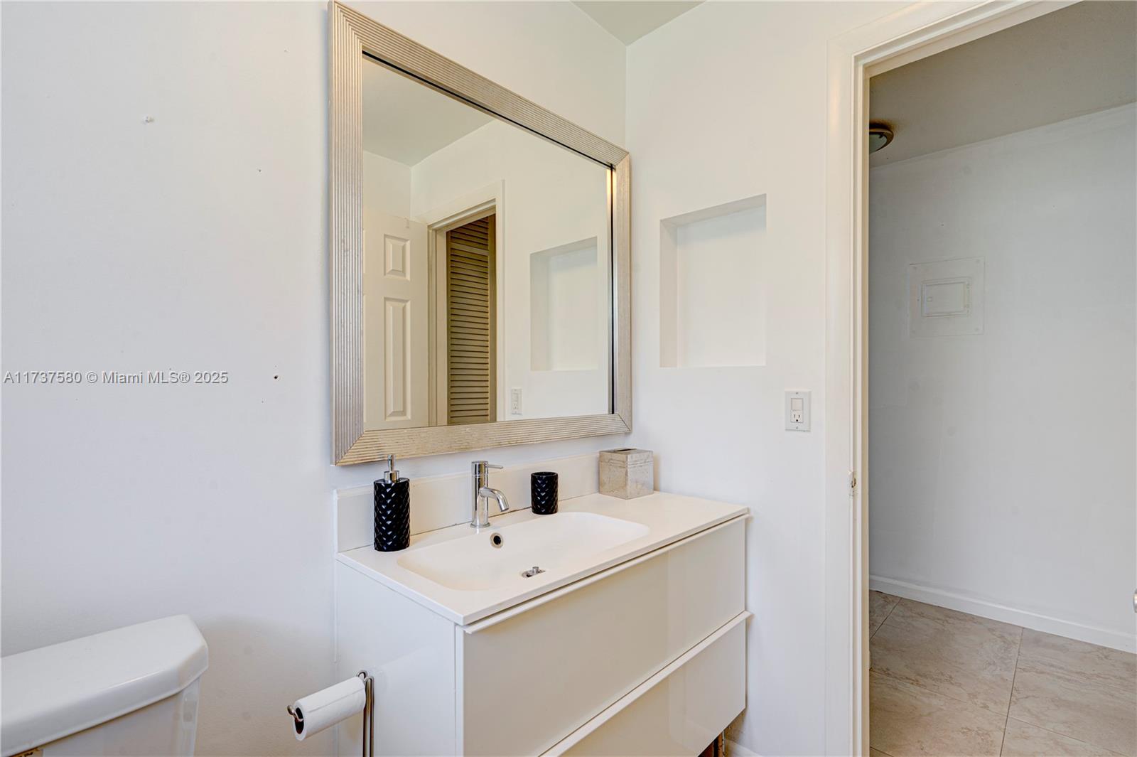 Spacious and bright 1BD/1BA first-floor unit in a prestigious gated community within a multi-million-dollar neighborhood. Ideally located just blocks from the beach, fine dining, shopping, and Gulfstream Park Racing & Casino. This well-appointed residence features a modern kitchen with quartz countertops, a stylish turquoise subway glass backsplash, a stainless steel sink with a grid insert, and stainless steel appliances. The generous bedroom offers ample space, while the updated bathroom boasts a sleek shower/tub combo with a glass door. Enjoy formal dining, a covered patio with retractable privacy shades, and direct pool access. Highlights include central AC, a tankless water heater, extra storage, and a nearby laundry facility. Approx. 720 sq. ft. with a private balcony and pool views.