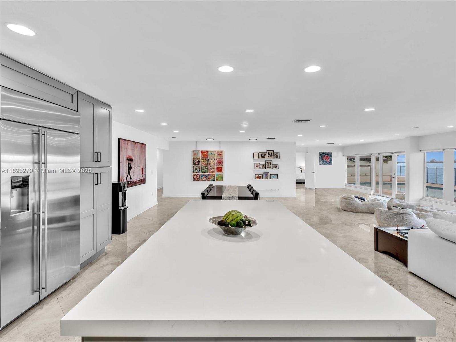 A BOATER'S DREAM LOCATION | SINGLE FAMILY HOME WITH NO HOA'S | UNOBSTRUCTED DIRECT BAY + OCEAN VIEWS | LOCATED @ THE END OF A CUL-DE-SAC | PRIVATE DOCK SPANS 100 FT WITH 40K LB CONCRETE LIFT. This inviting 4-bedroom, 3-bathroom residence boasts a spacious open floor plan flooded with natural light. The modern kitchen features stainless steel appliances and ample counter space, perfect for entertaining. Relax in the beautifully landscaped backyard, capture the views from your heated Salt-Water pool, ideal for outdoor gatherings and weekend barbecues. Conveniently situated in a vibrant neighborhood, this property is close to shops, dining, and parks, offering the best of Miami living. Don’t miss this opportunity to make this your MOVE-IN ready dream home!
