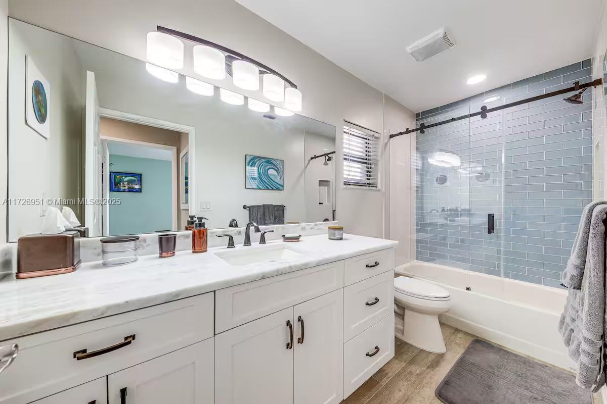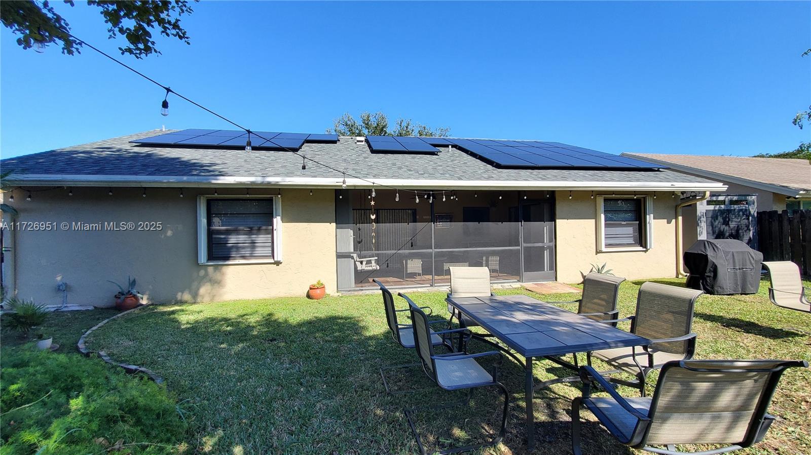 Beautifully remodeled baths and kitchen, complete with top-of-the-line appliances, make this home truly exceptional! The kitchen features elegant wood cabinets. This 3-bedroom, 2-bathroom home is move-in ready and boasts a split-bedroom plan with a spacious master suite and a stunning master bath. Enjoy the tiled screened porch with serene canal views. There’s a separate dining area and a spacious family room. New roof and solar panels with 3 backup batteries have been installed, offering energy efficiency and sustainability. Equipped with electric car charger. Accordion shutters throughout along with an impact rated garage door for full insurance credits, you’ll have peace of mind during hurricane season. From the moment you park and approach the welcoming front door, you’ll feel at home!