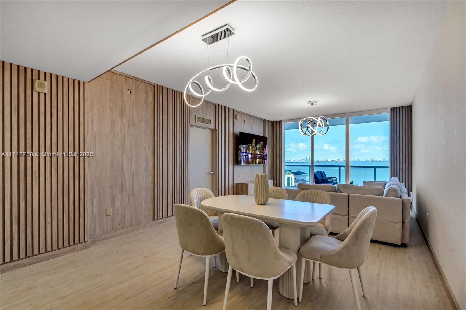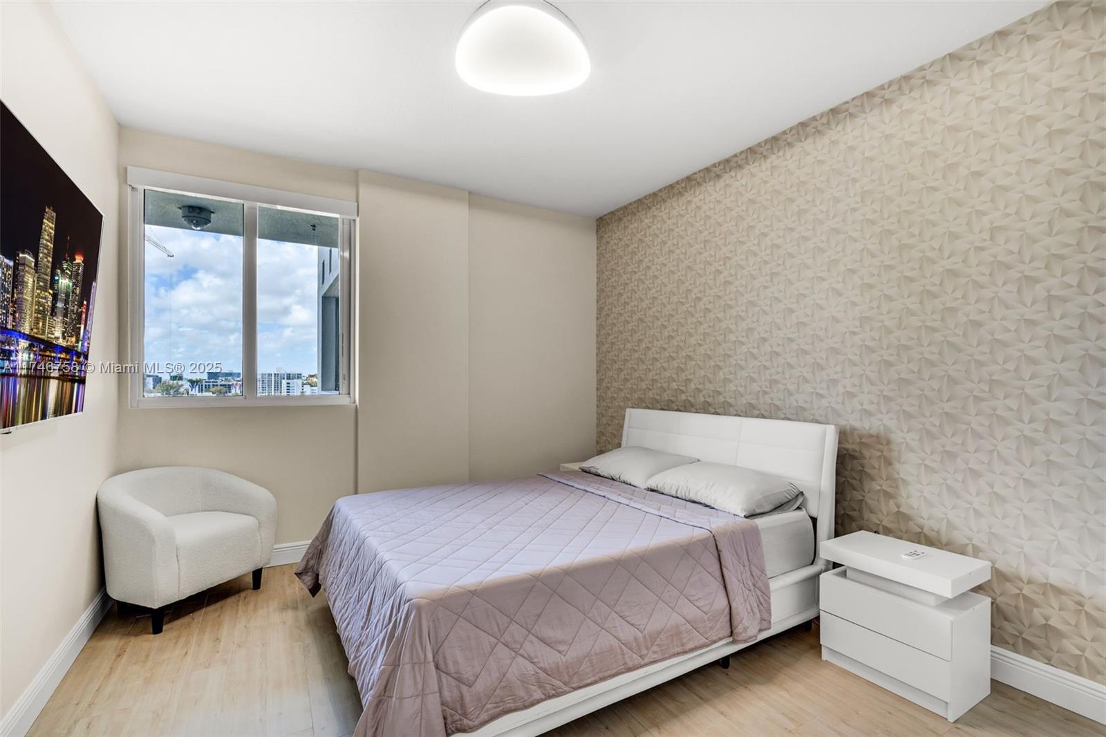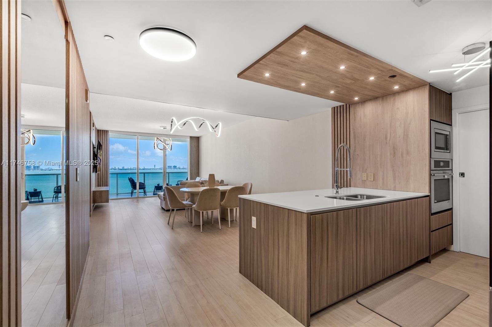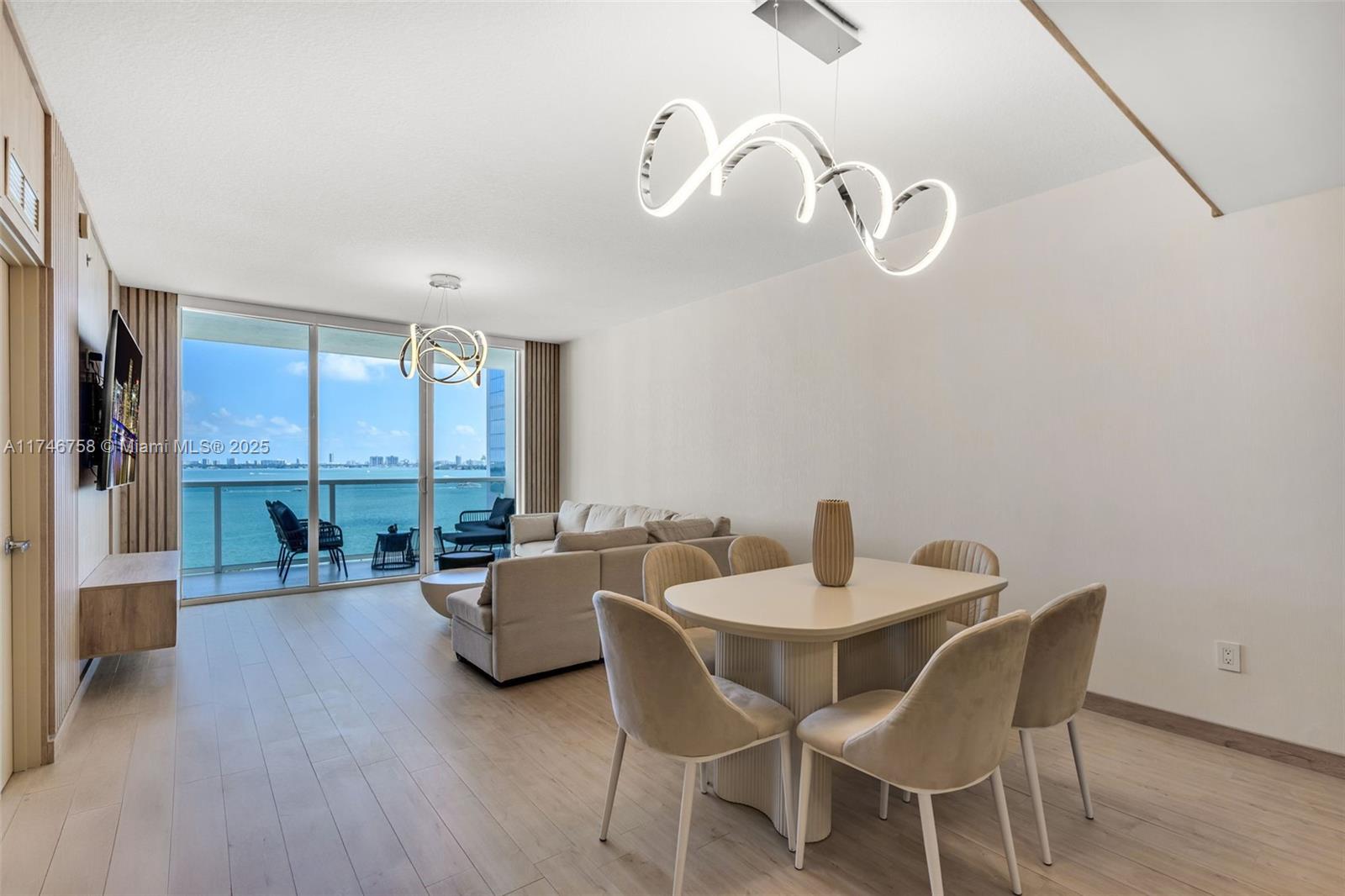 Live in the heart of Edgewater! FULLY FURNISHED. This stunning 3 bed/3 bath residence features a panoramic bay & city views. Modern wooden panels and luxury wallpaper throughout create a sophisticated ambiance. Spacious open-concept layout with high ceilings, Italian cabinetry, custom closets & designer lighting. Expansive balcony perfect for enjoying Miami sunrises & sunsets. Full-service building with resort-style amenities--pool, state-of-the-art gym, business center & more. 2 assigned parking spaces. Minutes to Wynwood, Midtown, Design District, Brickell & Miami Beach. Don't miss this opportunity!