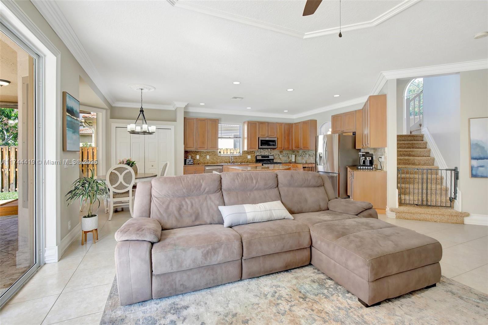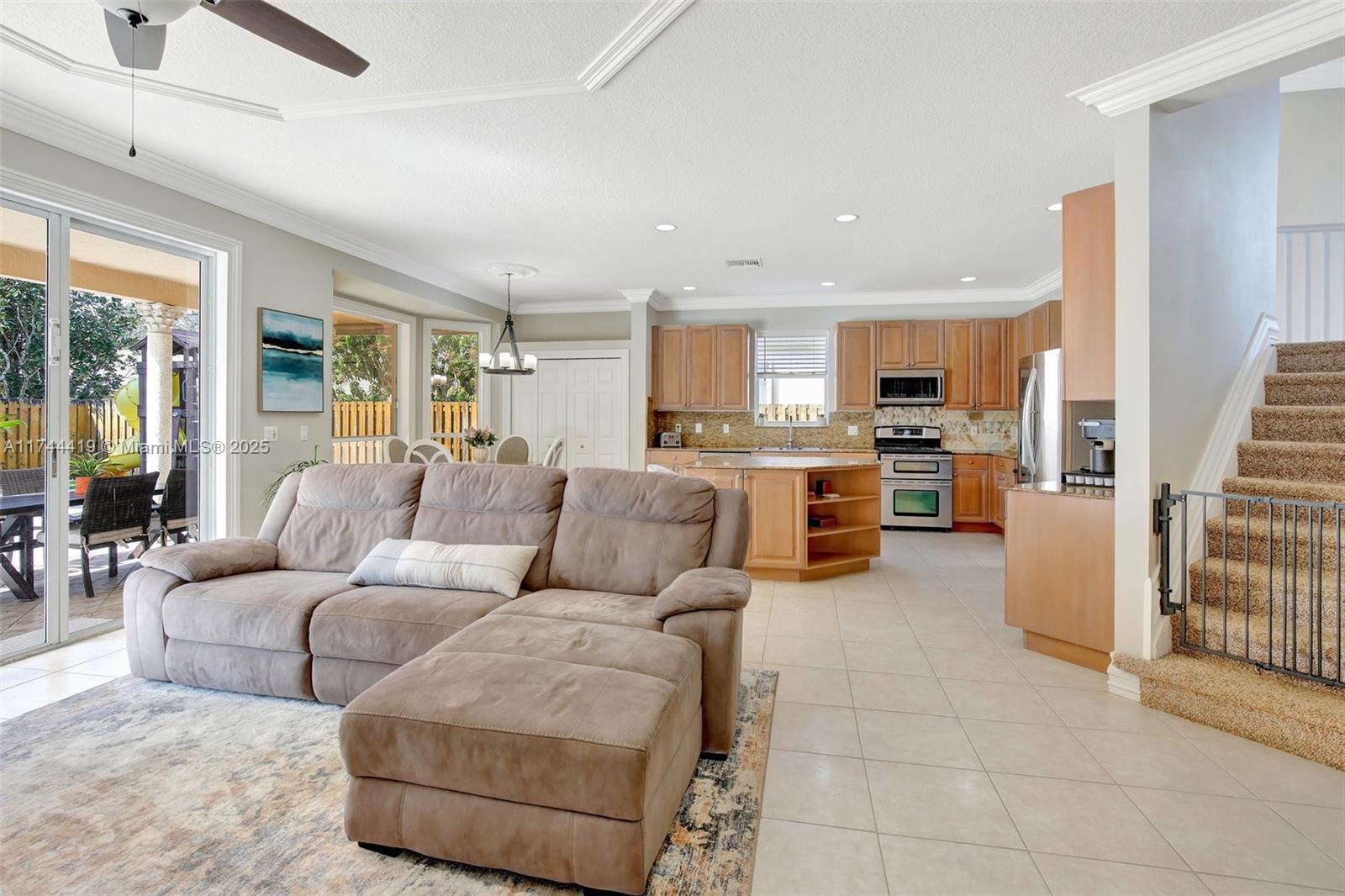 STUNNING KINGSTON MODEL IN PEMBROKE FALLS! This Home Features VOLUME CEILINGS, PORCELAIN TILE, 3-CAR GARAGE, & A 500+ SQ. FT. LOFT ?Perfect For A Game Room, Or Media Space. The Kitchen Boasts Granite Countertops, Custom Wood Cabinetry, Stainless Steel Appliances, & Gas Stove! The Spacious Owner's Suite Offers A Sitting Area, Plus 2 Walk-In Closets! Upstairs, BIG Bedrooms Provide Comfort For Family And Guests! Enjoy Your Private, Fenced Backyard, w/ A Pool, Spa, & Extended Covered Patio! Amenities Include A Heated Olympic Sized Pool, Spa, Gym, Tennis, Pickleball, Basketball, Ballroom, & Playgrounds! HOA Covers Cable, Fiber Optic Internet, and 4?24hr Guard Secured Entrances. Centrally located Near Great Schools, and 5 Star Dining, Shopping, & Entertainment Options! Schedule Your Tour Today!