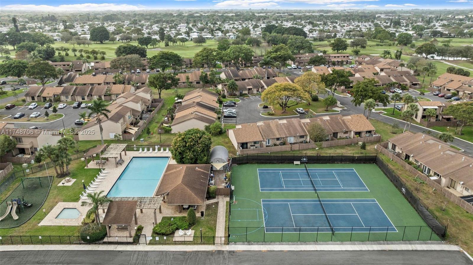 Immaculate 3/2 townhouse villa on a corner lot with lake/canal frontage and spectacular views, including the Town of Davie Golf Course. Enjoy an open, fenced patio, impact windows, high-volume vaulted ceilings, newer appliances, granite countertops, and tiled first floor. Meticulously maintained with a 4-year-old roof and central AC. Community amenities include 2 tennis courts, a half basketball court, pickleball space, a resort-style heated pool, kiddy pool, playground, community grills, picnic tables, and a Little Library. Located across from The Tower Shops and minutes from major highways (I-595, I-95, I-75, FL Turnpike) with easy access to NSU, FIU, Broward College, and a soon-to-open HCA Hospital. The Town of Davie Municipal Golf Course is just a short walk away!