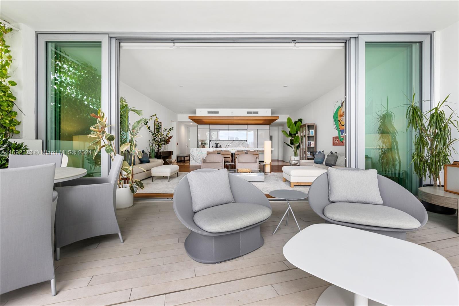 Experience the elegance of Monad Terrace, Unit 8D--a stunning waterfront residence designed by Pritzker Prize-winning architect Jean Nouvel, part of an exclusive collection of 59 homes along Biscayne Bay. Upon entering, you'll find natural light flooding the spacious interiors, featuring opulent marble bathrooms, custom cabinetry, exquisite designer fixtures, and warm teak wood flooring. Each residence offers a private elevator for added convenience. Enjoy luxury living where nature and design meet in the heart of Miami Beach. Picture sipping your morning coffee on the expansive wraparound balcony at sunrise and unwinding with stunning sunsets from your private terrace. This is not just a home; it's a lifestyle of sophistication and beauty.