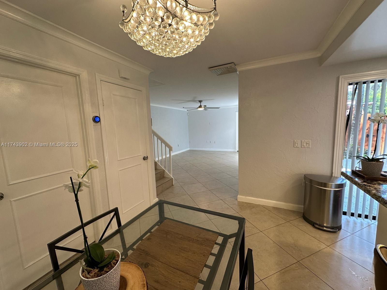 3 bedroom townhouse in the city of Davie, unit has a remodeled kitchen with new garbage disposal, new Microwave with air fryer, new water filter. New A/C replaced in 2023, new fans, and remodeled bathrooms with new extractors. No popcorn ceiling. The indoor patio has a fenced backyard with a pergola with roof, large storage area, and floor tiles with epoxy paint. Accordion hurricane shutters. 2 assigned parking spaces at the front of the property, and plenty of guest parking. Access to the club featuring two restaurants, bar, gym, pool, golf course, and more. Conveniently located next to I-595, universities, and shopping centers.