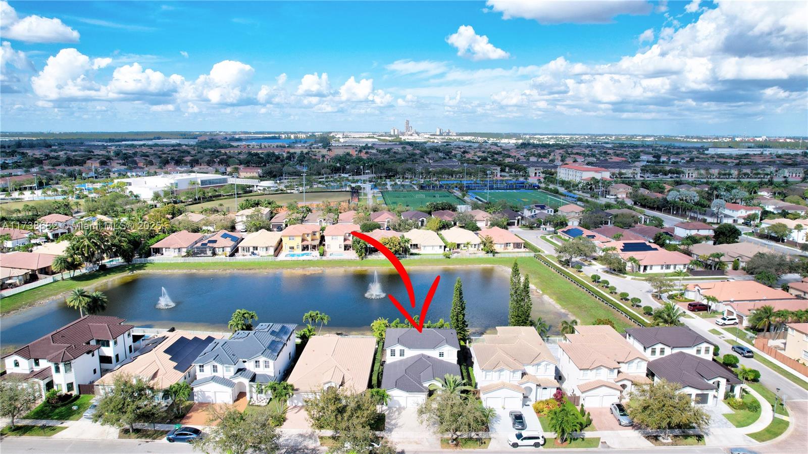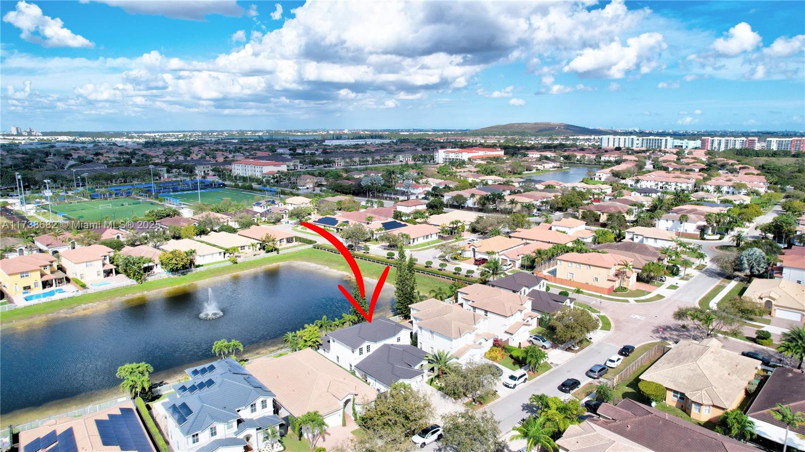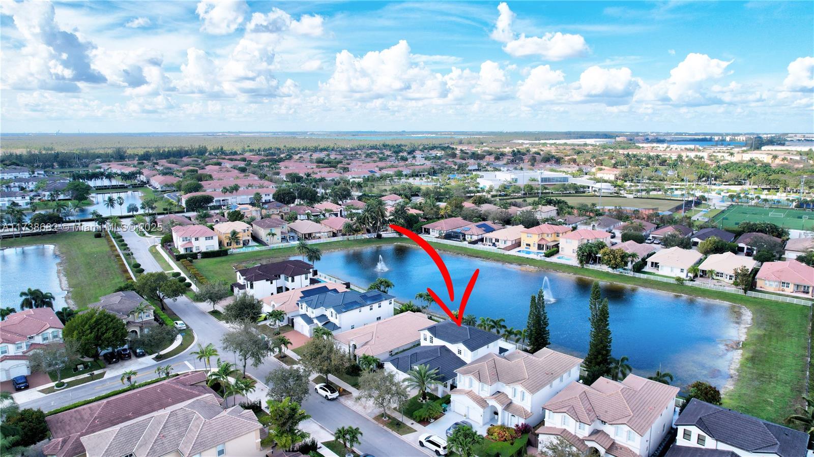This stunning 5-bedroom, 4-bathroom home features a bright, open floor plan with 3,130 sq ft of living space, families or entertaining. The first floor includes a spacious master suite with a walk-in closet, a guest bedroom, and a gourmet kitchen with stainless steel appliances. Expansive family room Full of natural light. Upstairs, you'll find three additional well-sized bedrooms and two full bathrooms. Step outside to your private paved patio with a pergola, with plenty of room to build your dream pool. Include a 2-car garage, ample storage, and access to a family-friendly community with top-rated schools, clubhouse, pool, tennis courts, and playgrounds. Conveniently located near major highways and shopping centers. Don't miss this rare opportunity to own a lakefront gem in Doral!