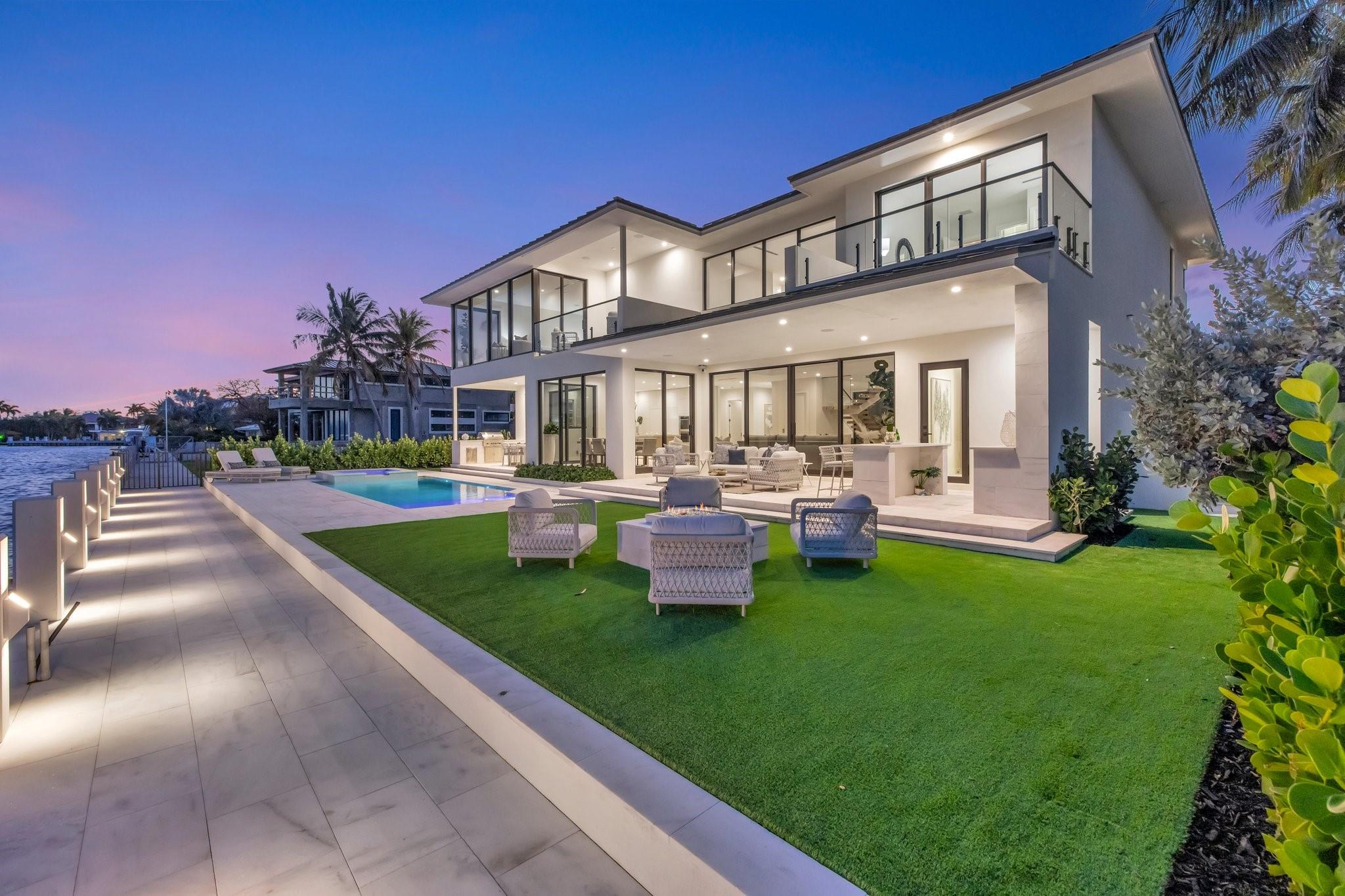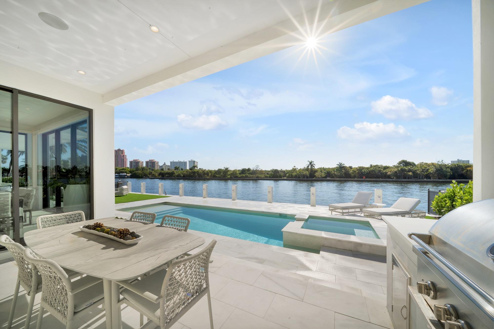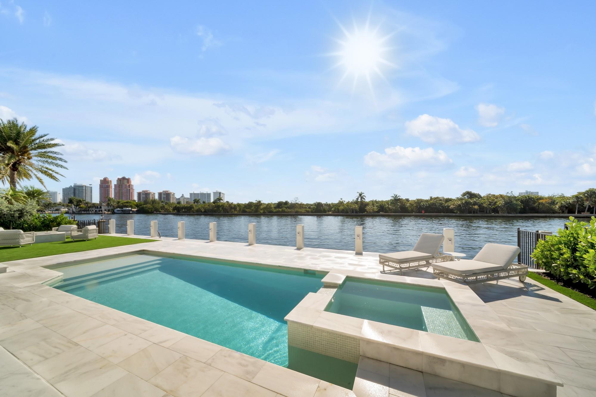 This newly built 6-bed, 6.5-baths waterfront masterpiece boasts 85 feet of prime Intracoastal frontage and unobstructed views of Birch State Park. A floating glass staircase serves as a striking centerpiece, while floor-to-ceiling windows frame breathtaking water views. The chef’s kitchen boasts custom millwork, Wolf appliances, SubZero refrigerators, Miele coffee station, walk-in pantry, and a cooled wine room. The primary suite features a private terrace, spa bath and lively intracoastal action. Outside, a resort-style pool with iridescent pearl tile glistens, while a fire pit and wet bar overlook a dockside paradise, creating the ultimate entertaining space. Built by renowned builder Glenn Wright and pre-wired by Illusive Automation, this estate blends innovation with timeless elegance
