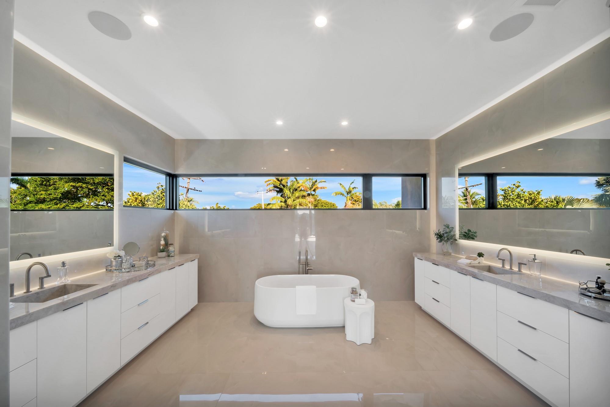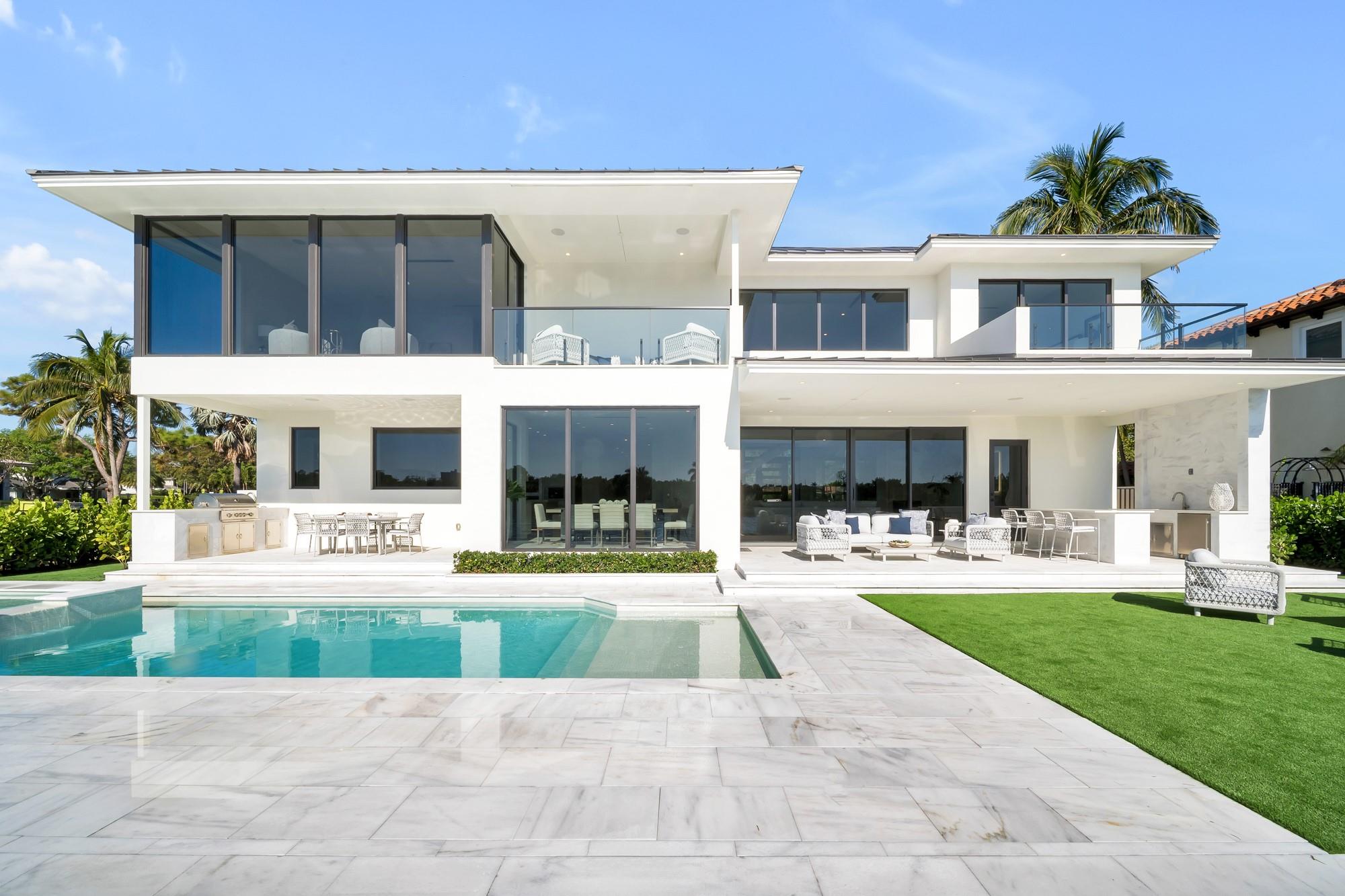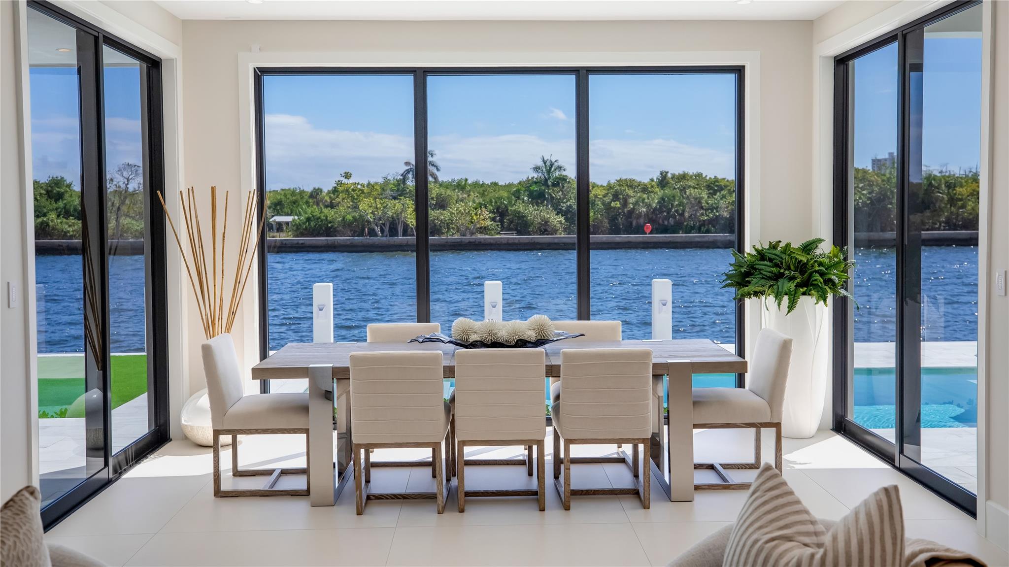 This newly built 6-bed, 6.5-baths waterfront masterpiece boasts 85 feet of prime Intracoastal frontage and unobstructed views of Birch State Park. A floating glass staircase serves as a striking centerpiece, while floor-to-ceiling windows frame breathtaking water views. The chef’s kitchen boasts custom millwork, Wolf appliances, SubZero refrigerators, Miele coffee station, walk-in pantry, and a cooled wine room. The primary suite features a private terrace, spa bath and lively intracoastal action. Outside, a resort-style pool with iridescent pearl tile glistens, while a fire pit and wet bar overlook a dockside paradise, creating the ultimate entertaining space. Built by renowned builder Glenn Wright and pre-wired by Illusive Automation, this estate blends innovation with timeless elegance