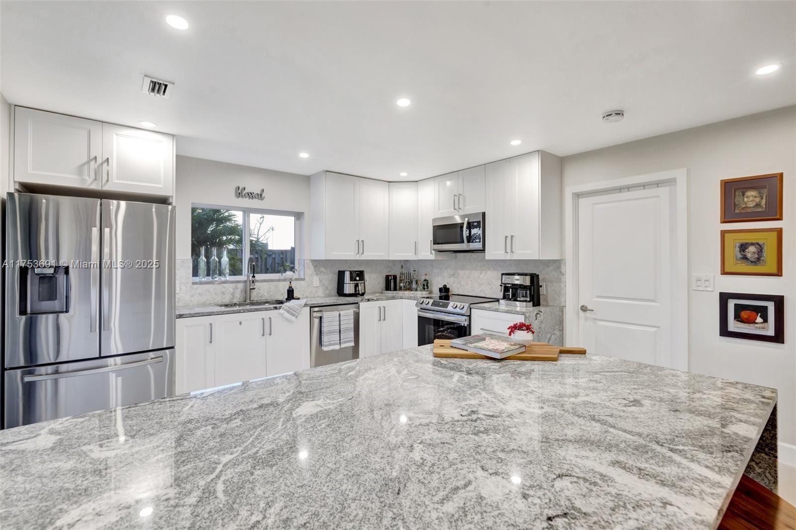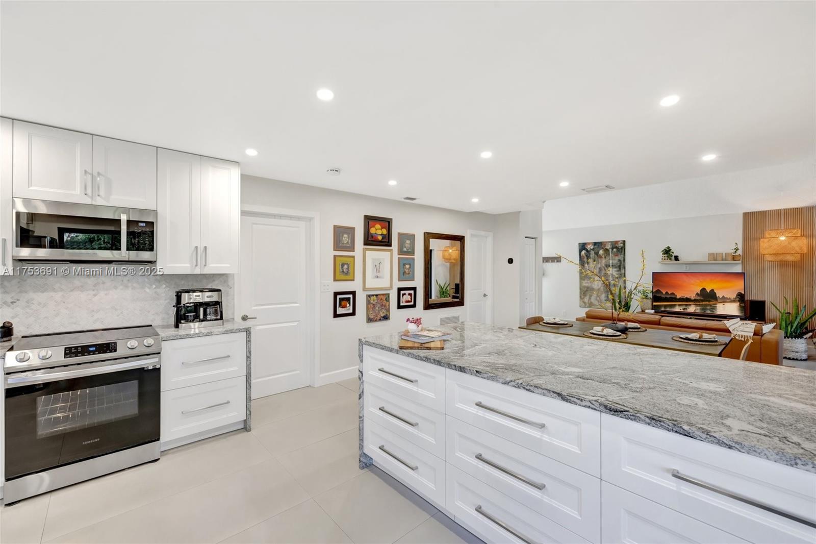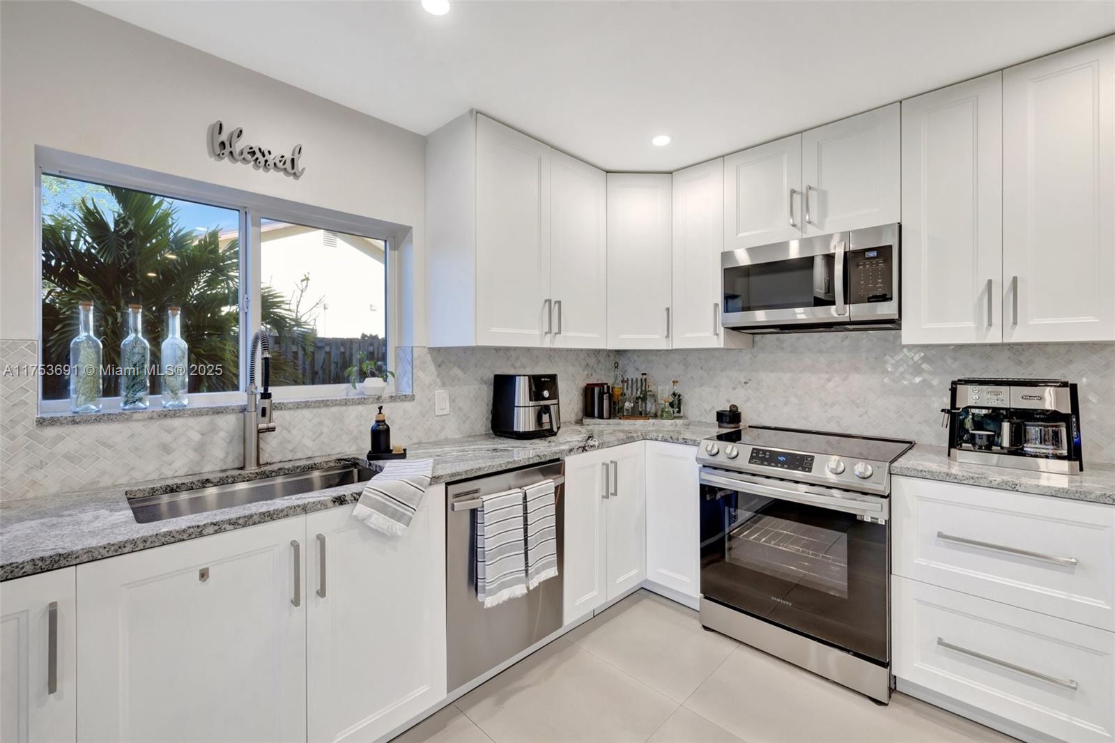 Stunningly updated peaceful lakefront home in Cooper City's Countryside West w/ gorgeous views throughout. Large screened patio overlooks crystal-clear lake & opens to private fenced backyard. Beautiful open concept kitchen w/ white shaker cabinets, waterfall counters, marble backsplash, newer appliances, oversized tile, 2021 ROOF & ext paint, partial impact windows/doors, upgraded irrigation, AC ducts, remodeled interior, spa-like baths, & updated H2o heater. 2023 W/D, HVAC, solar attic fan, upgraded insulation & epoxy garage. Turf & tiled patio, custom landscaping, upgraded stucco, LED lighting, smart thermostat, Ring & WiFi garage door. Expansive side yard w/ double gate to store boat/RV. Cul-d-sac street, close to Houses of Worship, Sports Complex, A-rated schools & shopping/dining.