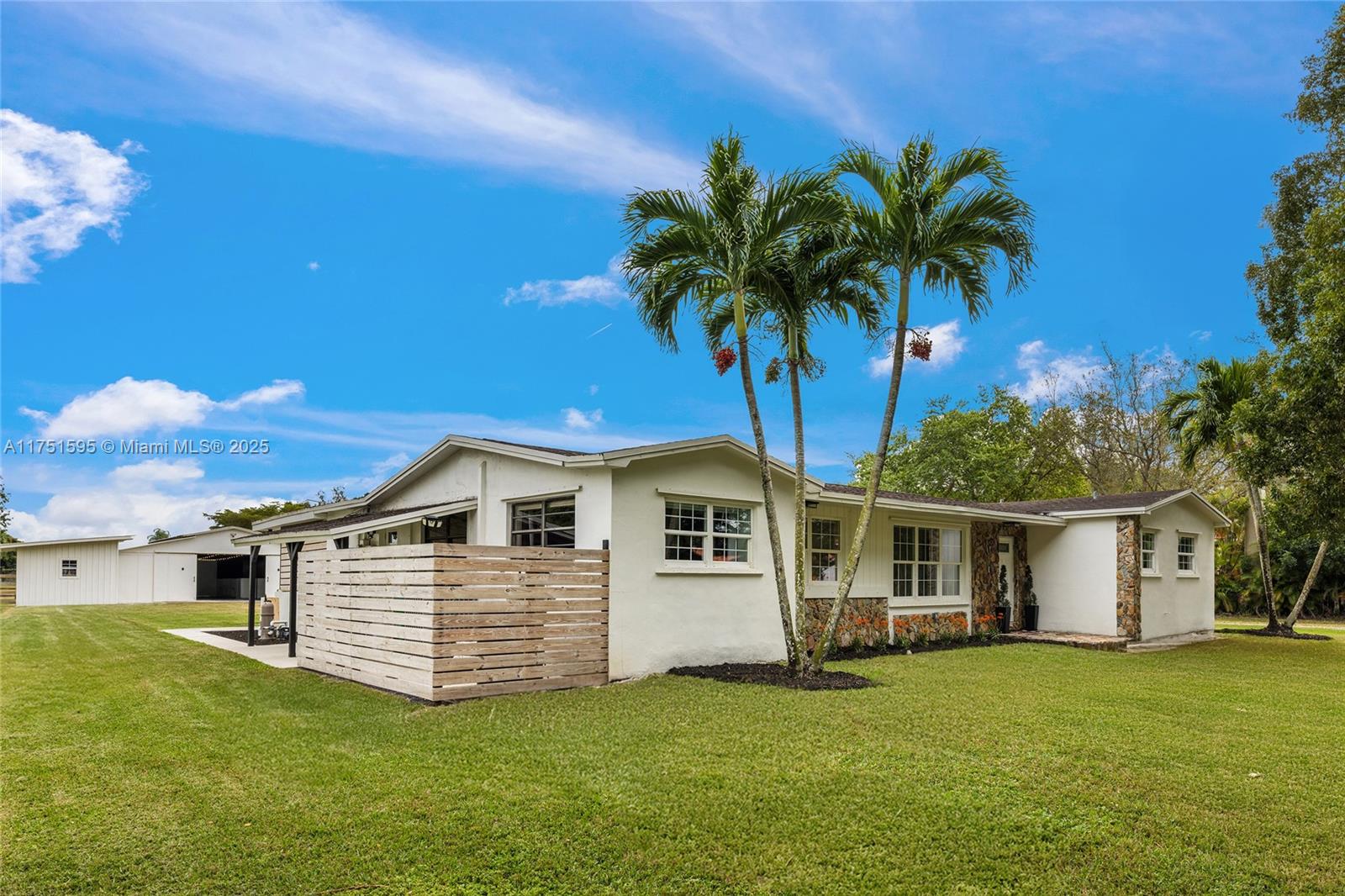 Equestrian Living in Davie -- The Perfect Blend of Country Charm & Modern Comfort! Experience Davie's renowned horseback riding trails and open spaces while enjoying city conveniences. This charming farmhouse sits on 2 acres of serene grasslands, offering a warm, light-filled atmosphere with an updated living space, renovated kitchen, and new flooring throughout. Step outside to a large saltwater pool, ideal for relaxation or entertaining. Perfect for animal lovers, the property includes a 40x50 barn with 6 stalls, a tack room, and a separate feed shed - great for personal use or a business venture. Benefit from agricultural property tax savings while enjoying your private retreat!