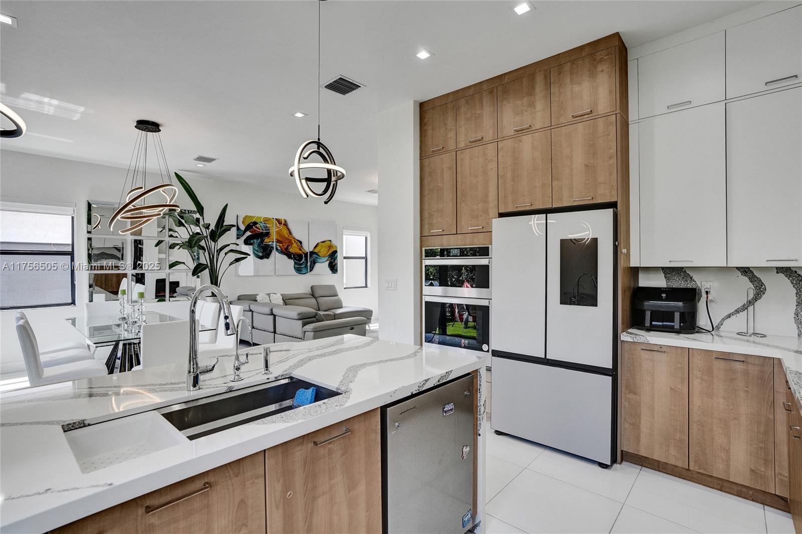Own this spectacular house and make it your ideal home. This house is located in the CANARIAS Condominium in the heart of Downtown Doral, the most vibrant new town center. This house is sitting in a overside lot with a open floor plan and boasts three spacious bedrooms and two and a half bathrooms completely upgraded. The kitchen features elegant quartz countertops, gourmet island, high-end stainless steel appliances, Wolf kitchen and Italian cabinets perfect for cooking and entertaining. The house also includes a two-car garage Enjoy the resort-style clubhouse, game and fitness room.