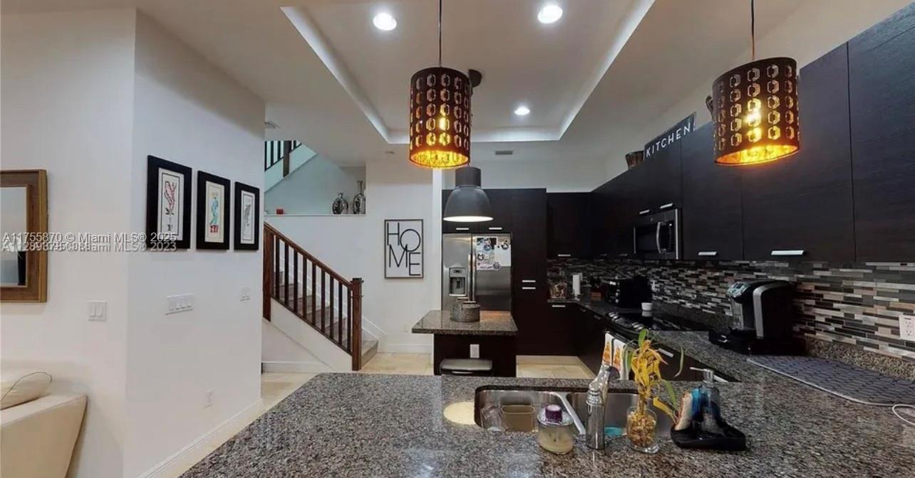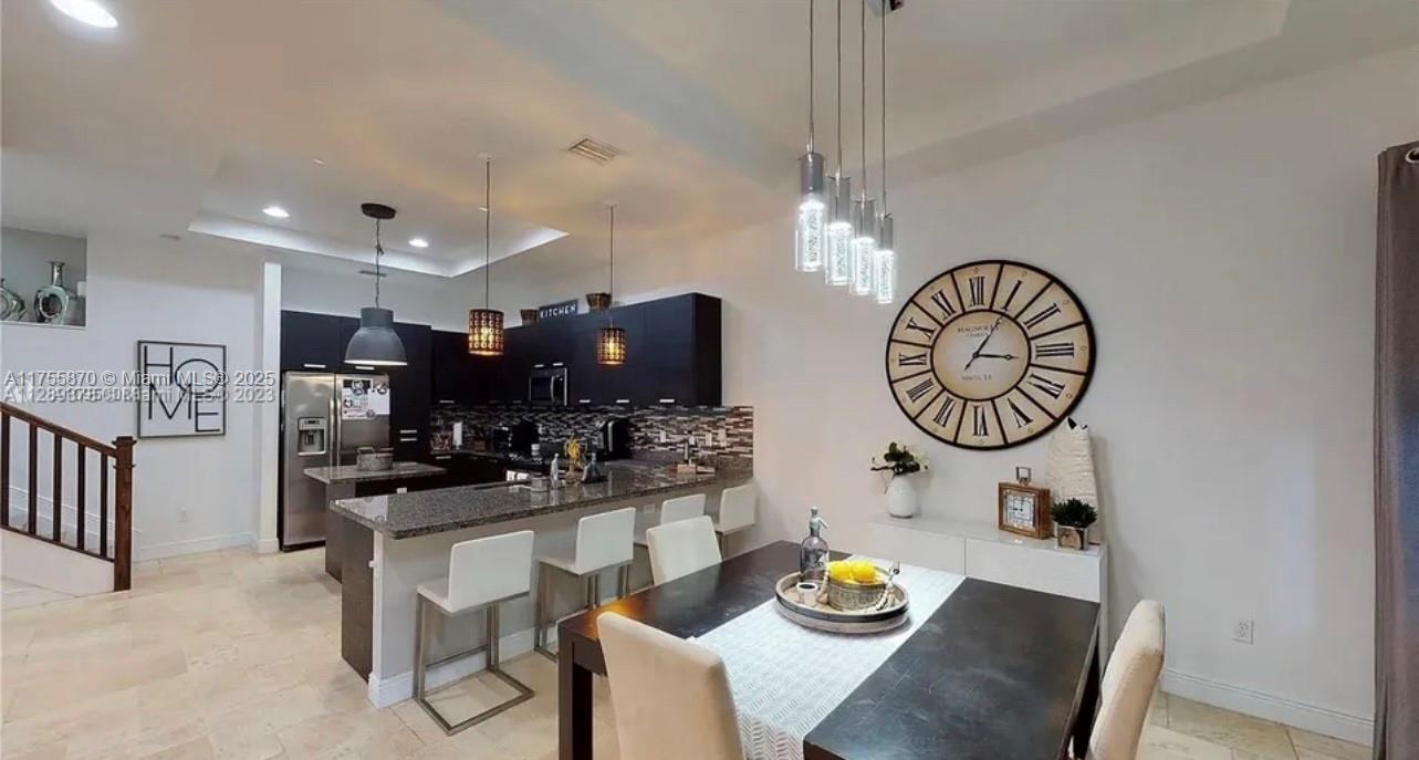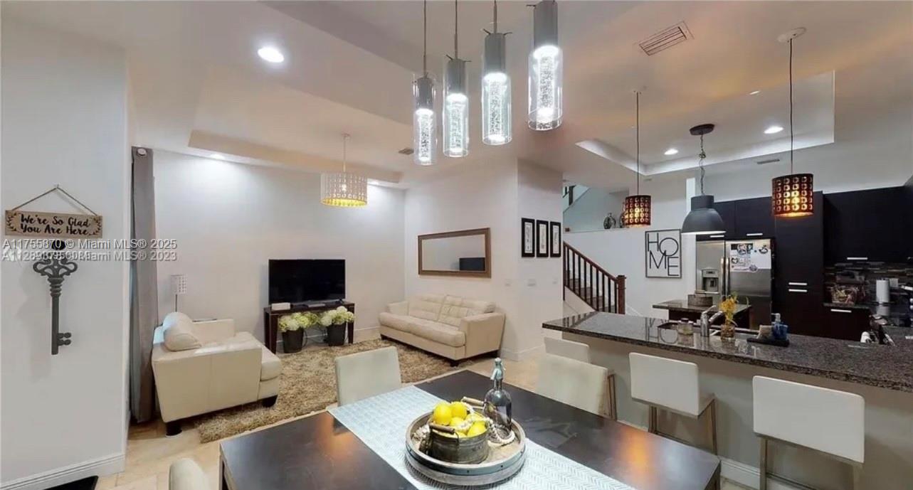Luxurious and beautiful 3 Story Townhome has four bedrooms, three and a half baths, and a 2-car garage. 4/3/1. Three bedrooms on the second floor, one bedroom on the top, and a third-floor private bathroom with a large living room that you can easily convert into a 4th Bedroom or a Penthouse Guest room or office! Rooftop terrace with outdoor built-in grill (BBQ). The first floor has an amazing open kitchen with upgrades, European cabinets, top-of-the-line stainless steel appliances, and high ceilings. Enjoy the views from the open balcony. Conveniently located within walking distance of Downtown Doral restaurants, Shops, schools, Miami International Airport, and more. It won't last; it's the best price in the market!!