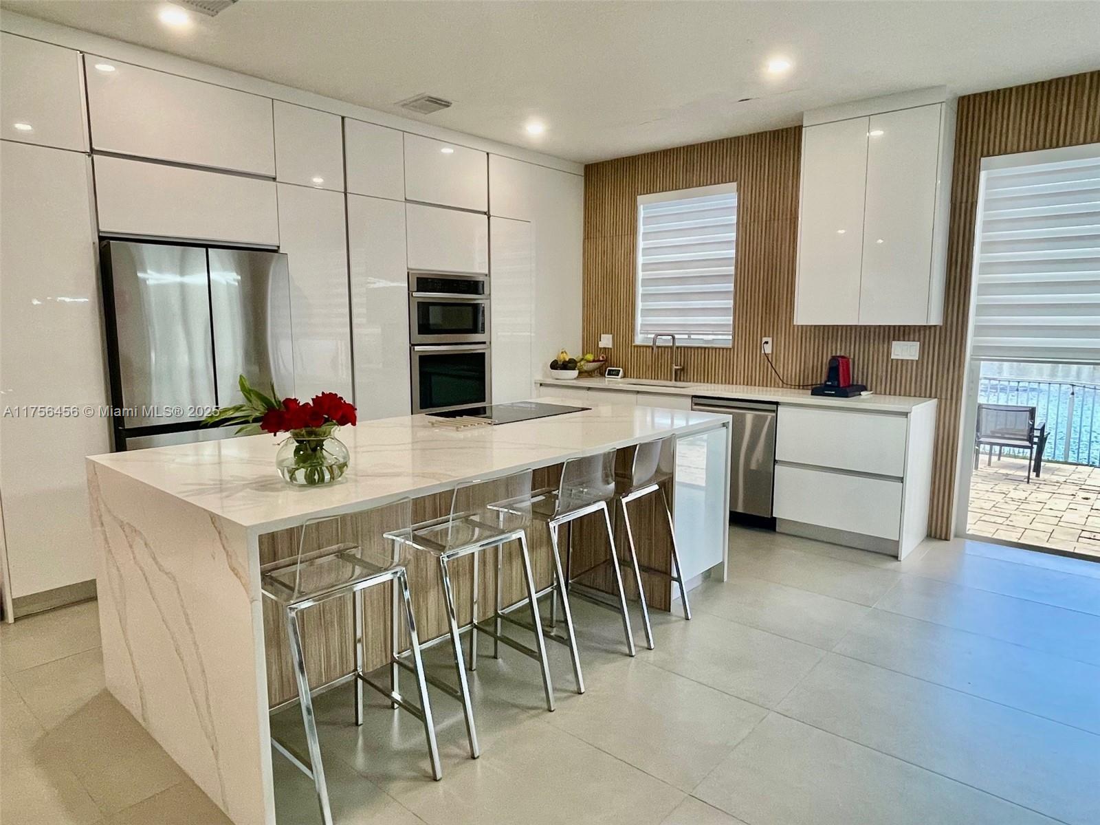 This stunning 3-bedroom, 2.5-bathroom home boasts 1,520 sq. ft. of modern, stylish living space. Designed with an open-concept layout, the living room, kitchen, and dining area flow seamlessly together, creating a bright and inviting atmosphere filled with natural light. The recently updated gourmet kitchen is a chef's dream, featuring sleek quartz countertops, stainless steel appliances, and a spacious center island?ideal for meal prep and entertaining guests. The home's interior exudes sophistication, with matte gray ceramic tile flooring throughout the downstairs. Each bathroom has been beautifully updated. This home effortlessly combines modern elegance with practical comfort, making it the perfect choice for contemporary living