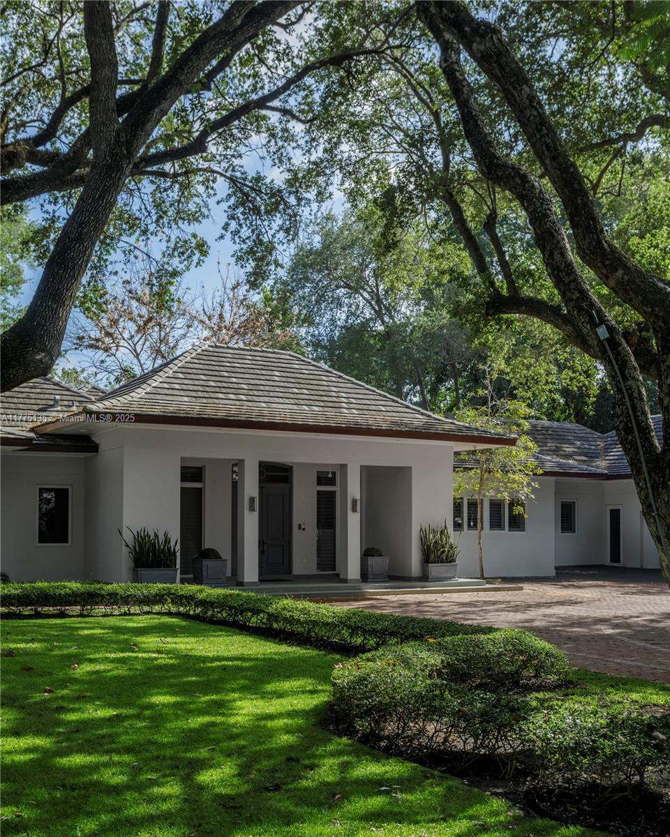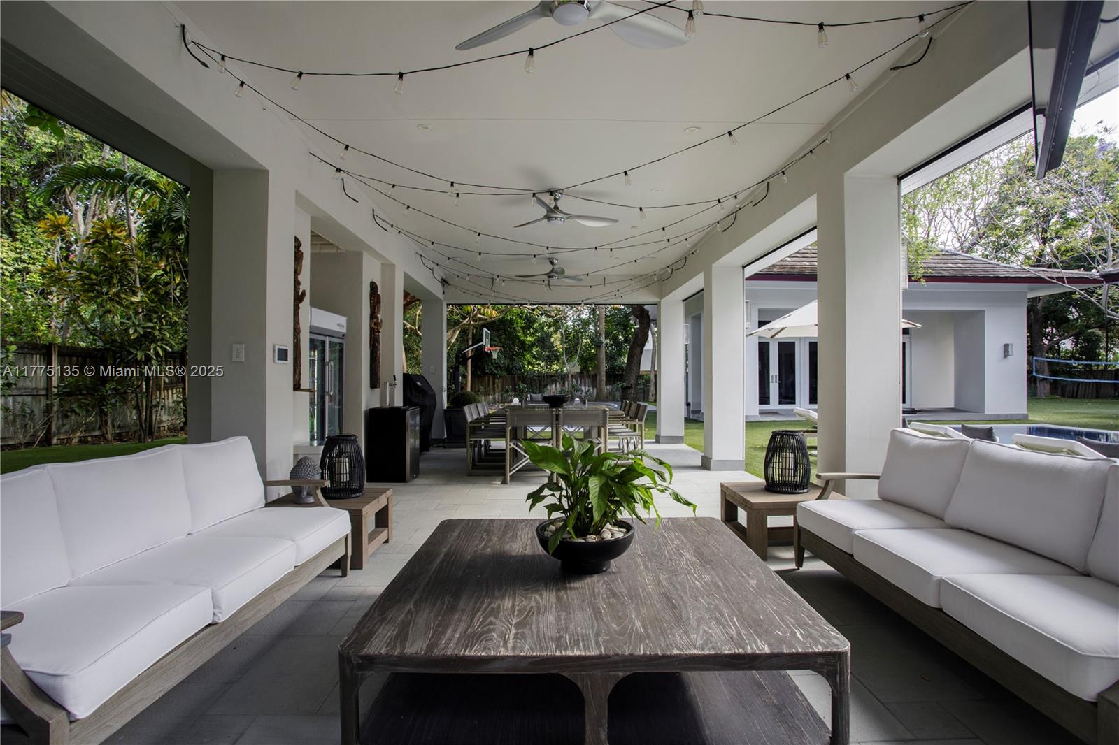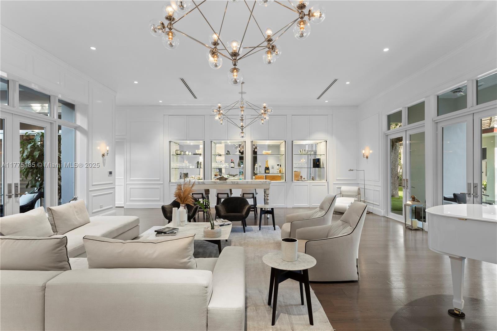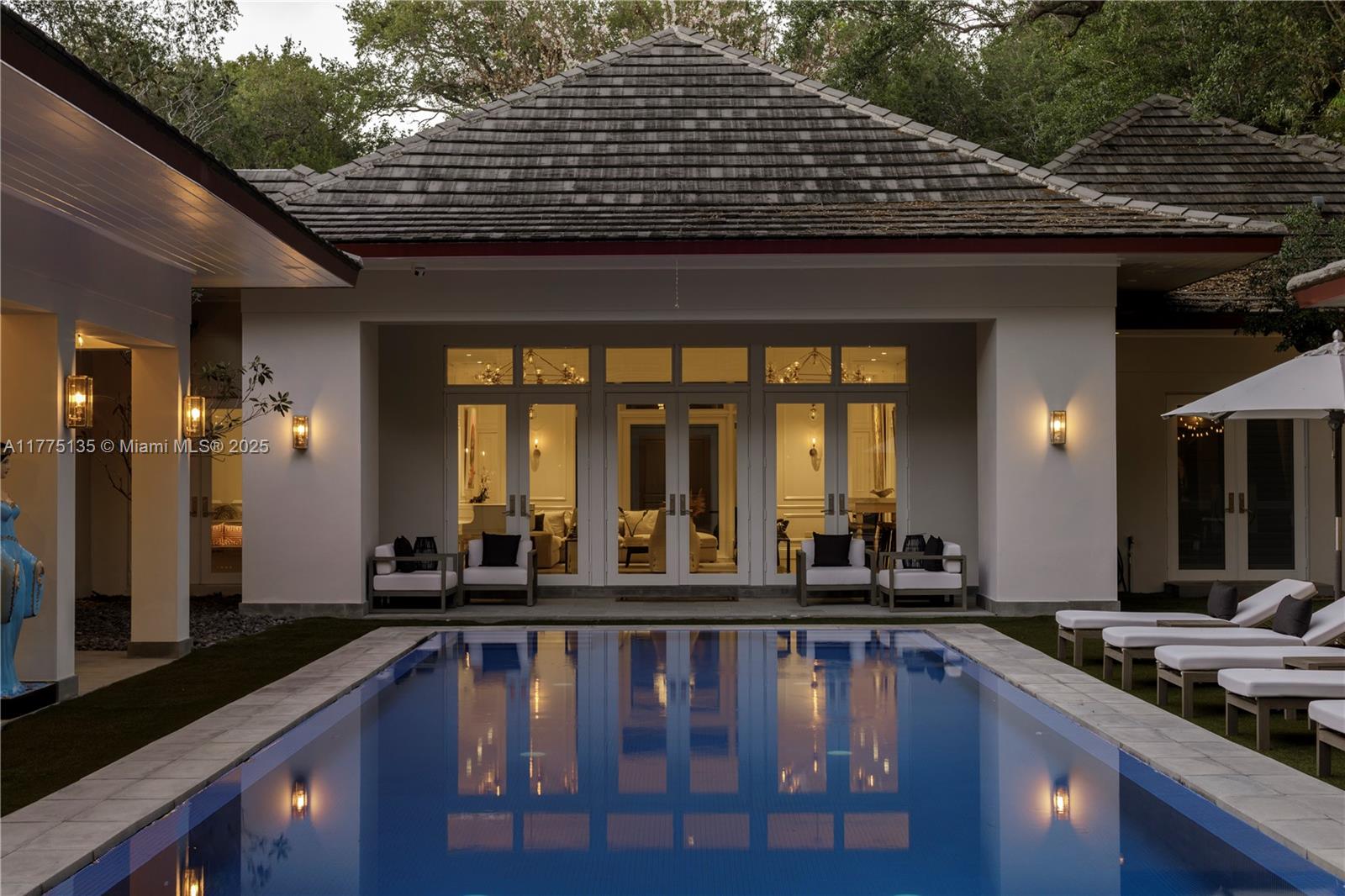 Thoughtfully designed one-story estate spanning 9,323 SF of refined interior living space, gracefully set on 1.1 acres in the prestigious enclave of South Coconut Grove. Residence blends elegance with cutting-edge technology, including a Smart Home Automation System, whole-home generator, custom lighting, wood flooring, and a comprehensive security system. Boasting soaring 12' ceilings, dual primary suites complete with a private living room and office. Living and entertaining areas include a formal dining room, great room, and stunning Poliform chef’s kitchen with gas cooking, Miele, Wolf & Sub-Zero appliances. The outdoor oasis offers an infinity-edge pool, Jacuzzi, volleyball court, covered dining terrace, a separate guest house currently used as a gym, and a 4-car garage.