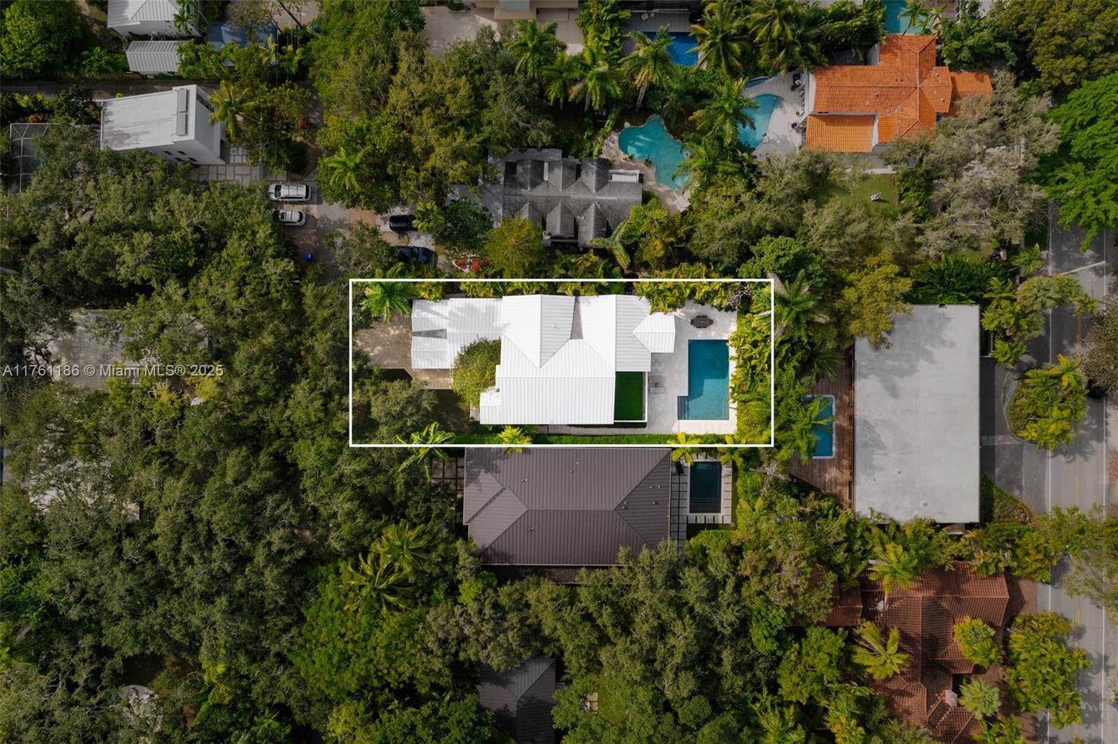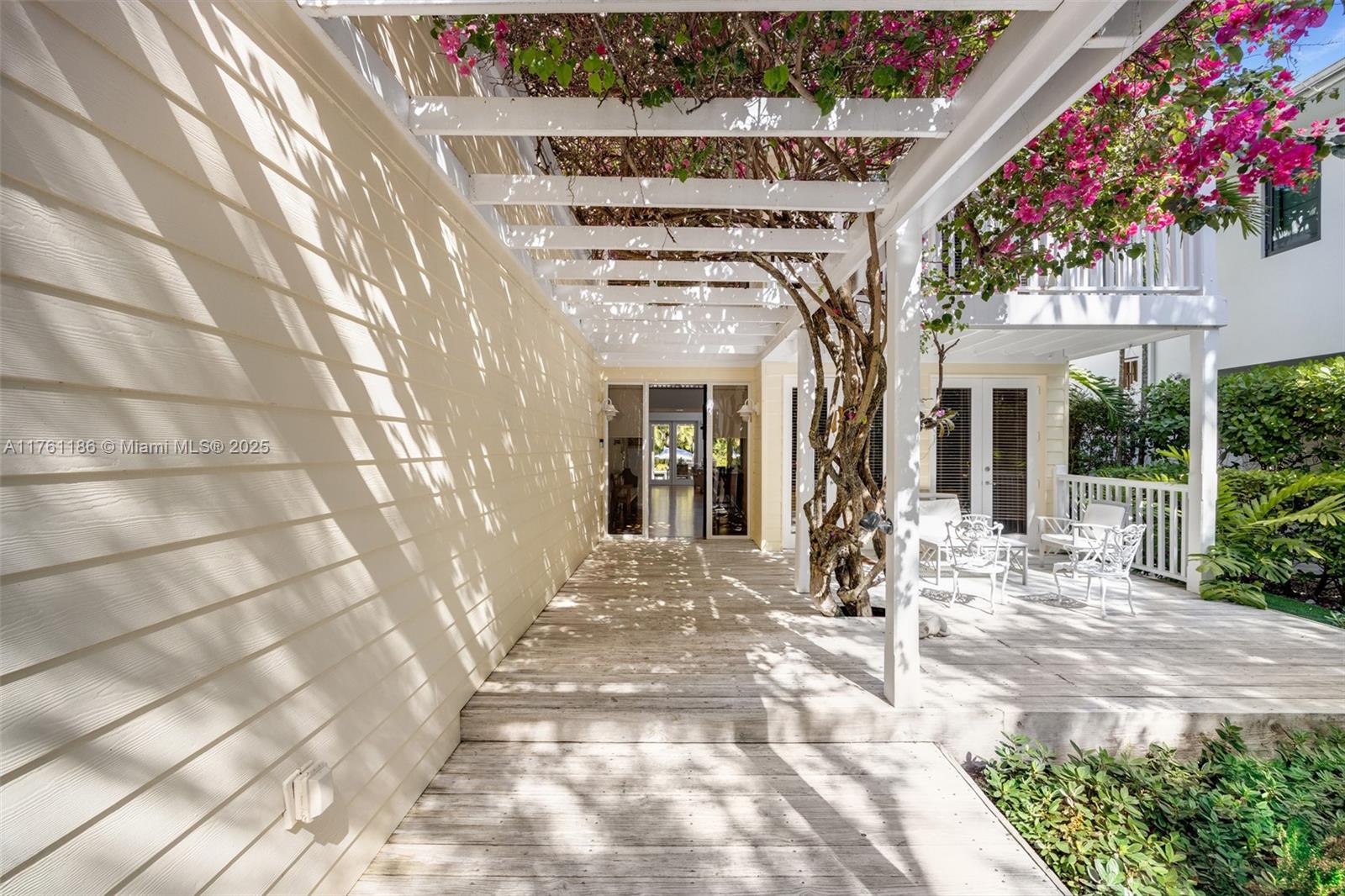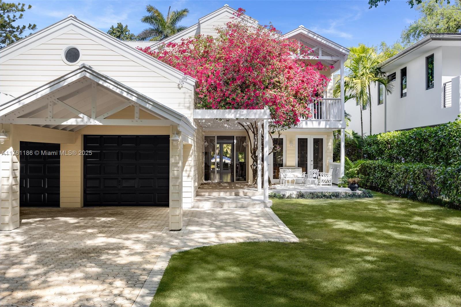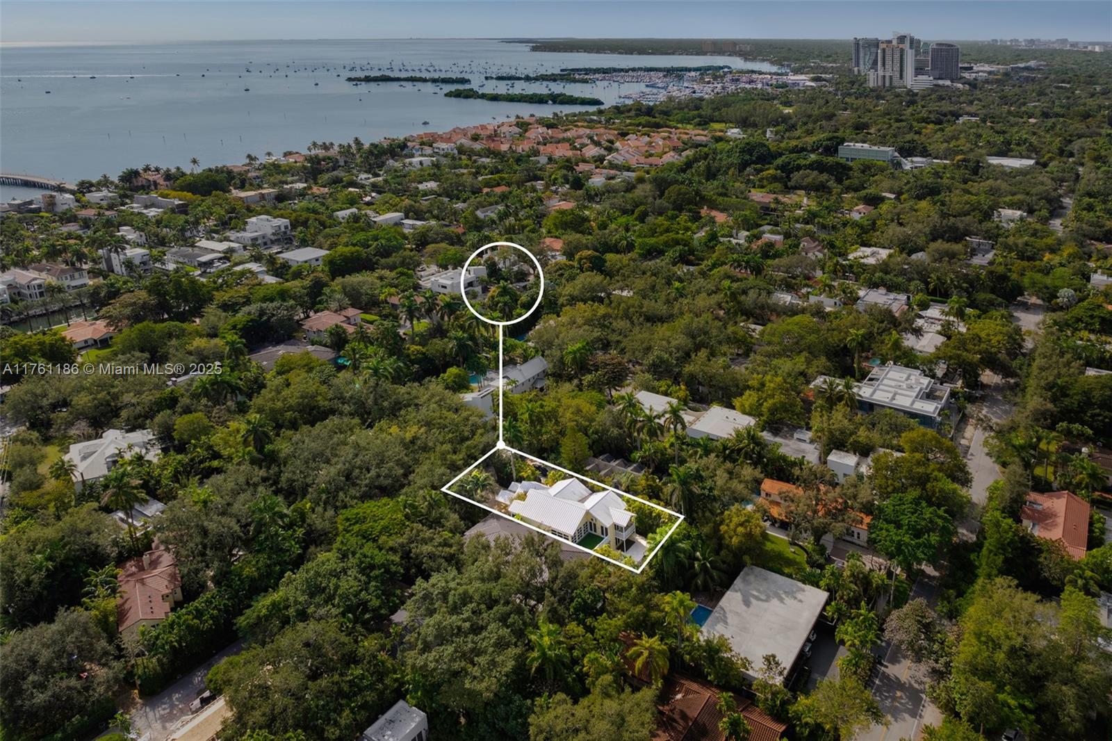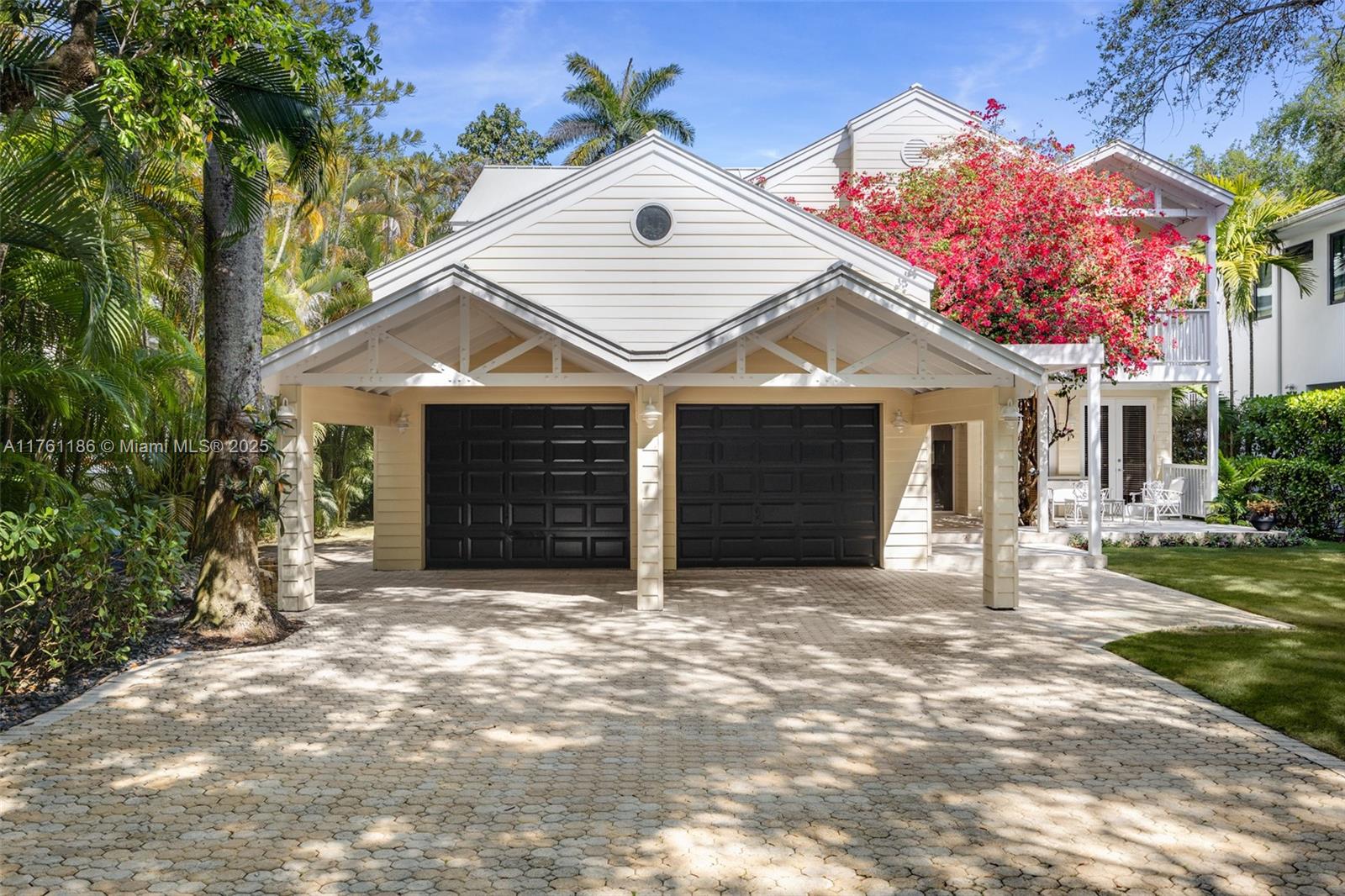 Captivating Key West style home on a coveted tree-canopied street in prestigious North Coconut Grove. Custom built w/ attention to detail and luxury fixtures & finishes throughout. Breathtaking, light-filled living spaces feature soaring, 29-foot+ vaulted, wood-beamed ceilings. Expansive eat-in kitchen & adjacent family room w/ banks of French doors opening to a deep covered terrace. Oversized primary suite is the ultimate retreat & offers private balcony with tree-top views. Experience year-round outdoor living & entertaining around the heated Saltwater pool & sundeck surrounded by lush tropical landscaping. Situated high on a coastal coral rock ridge, one of the highest sea-level elevations in South Florida.