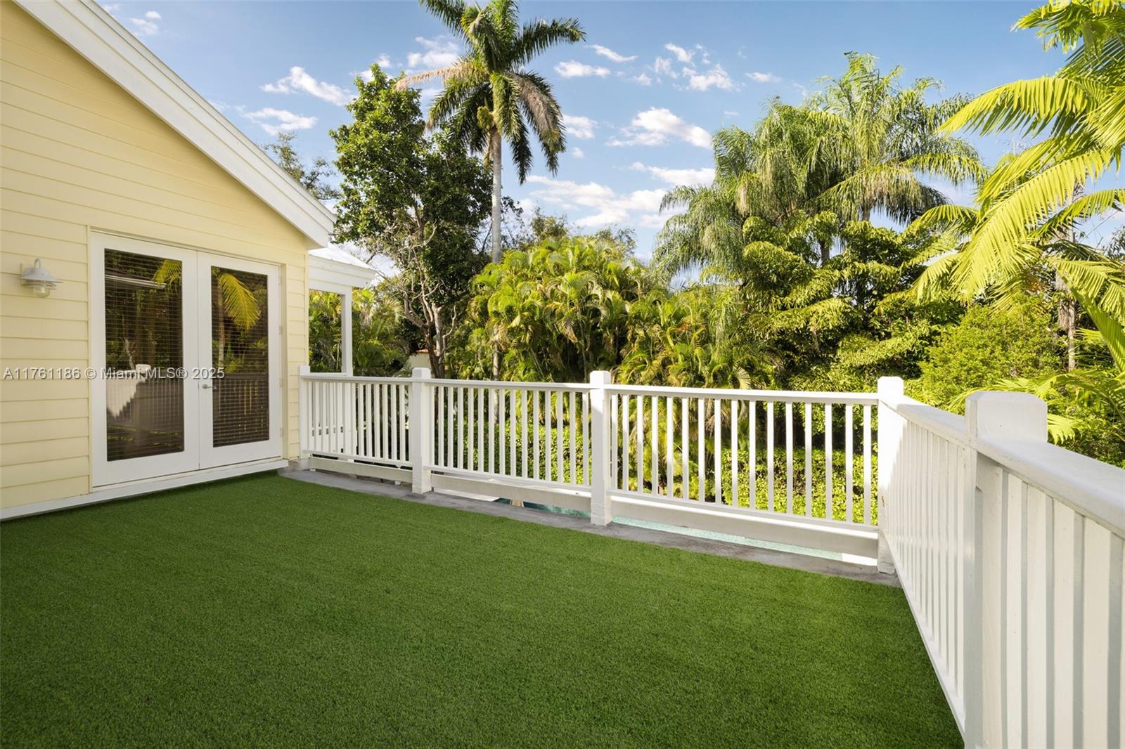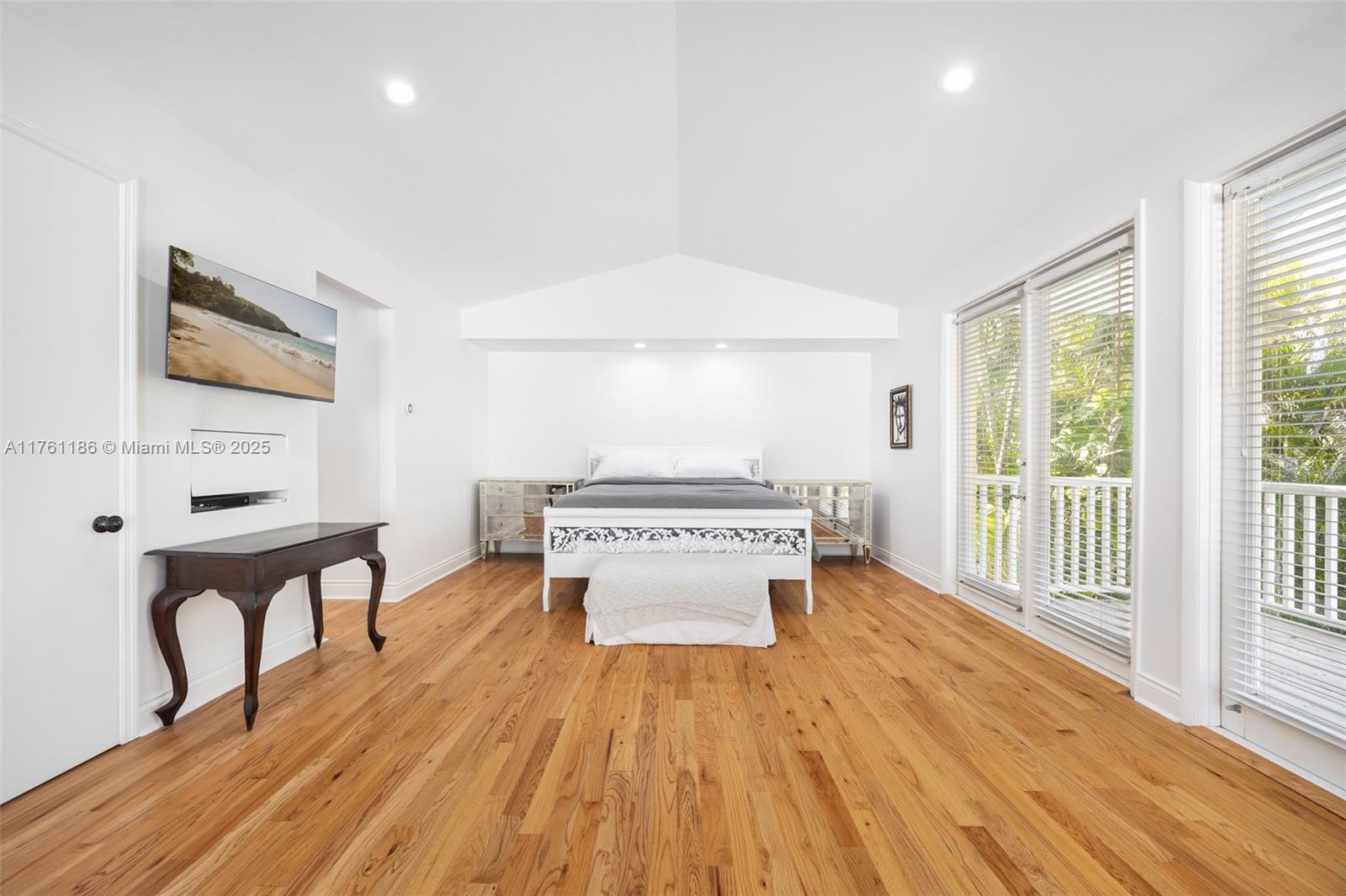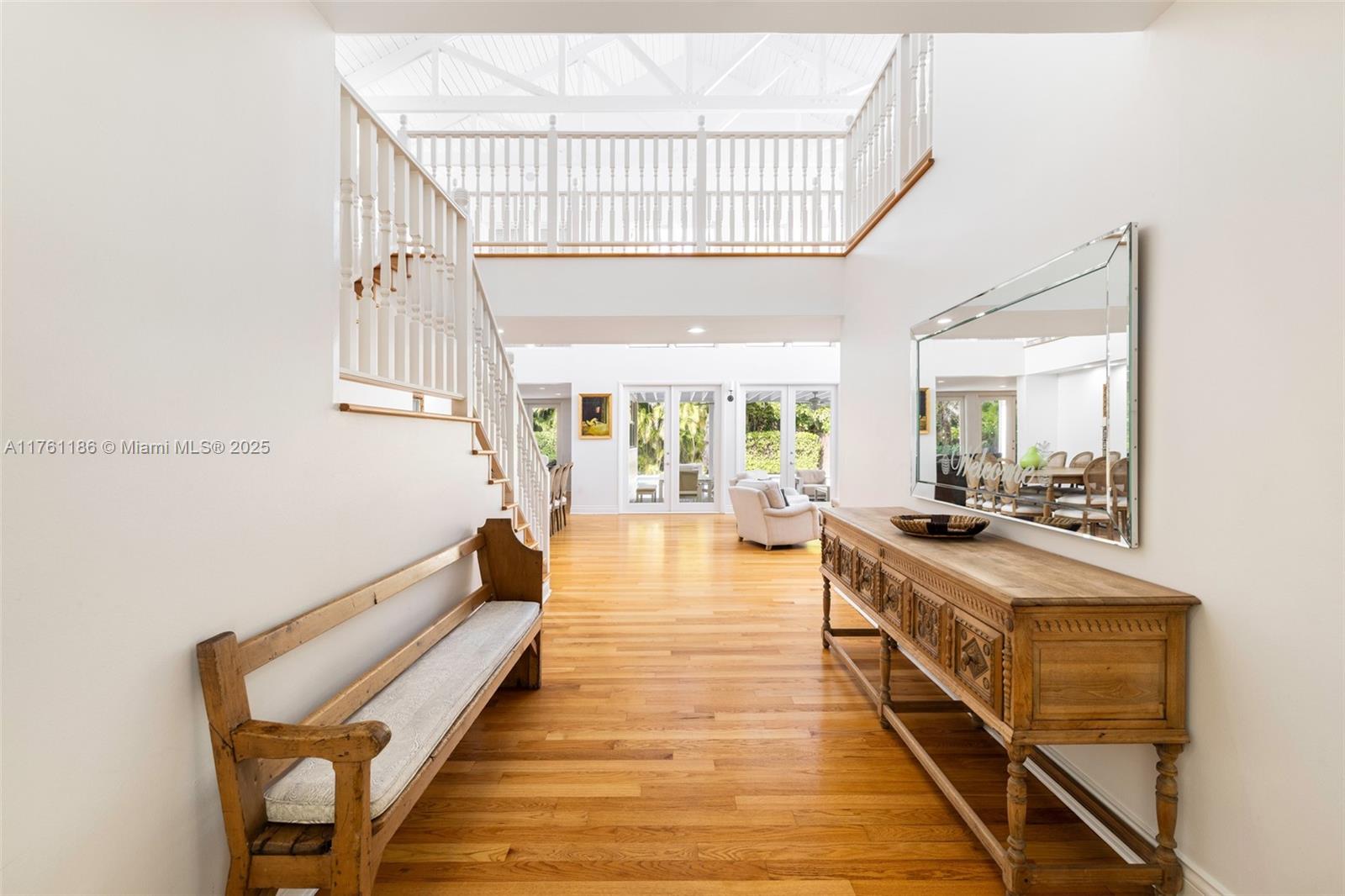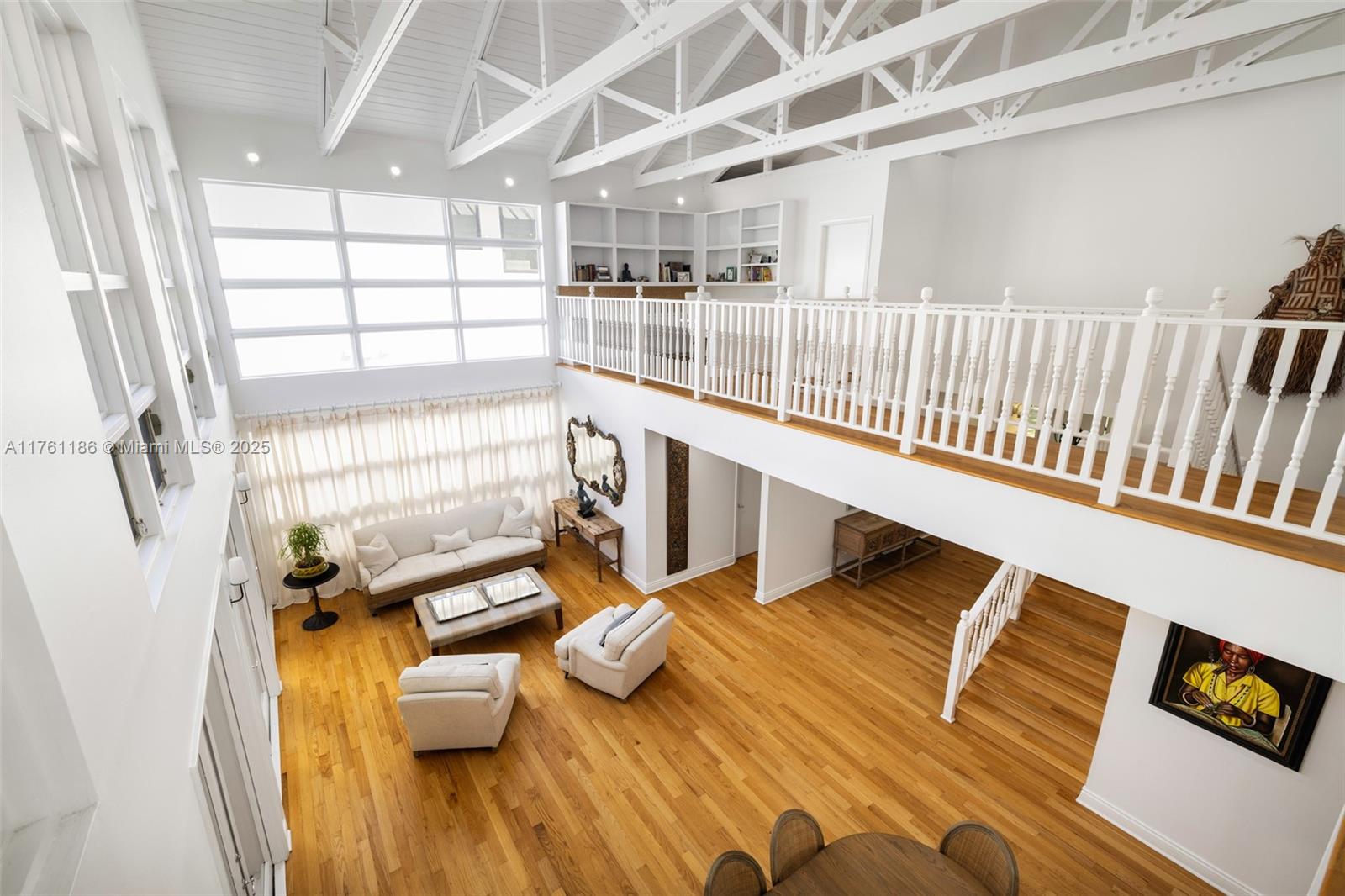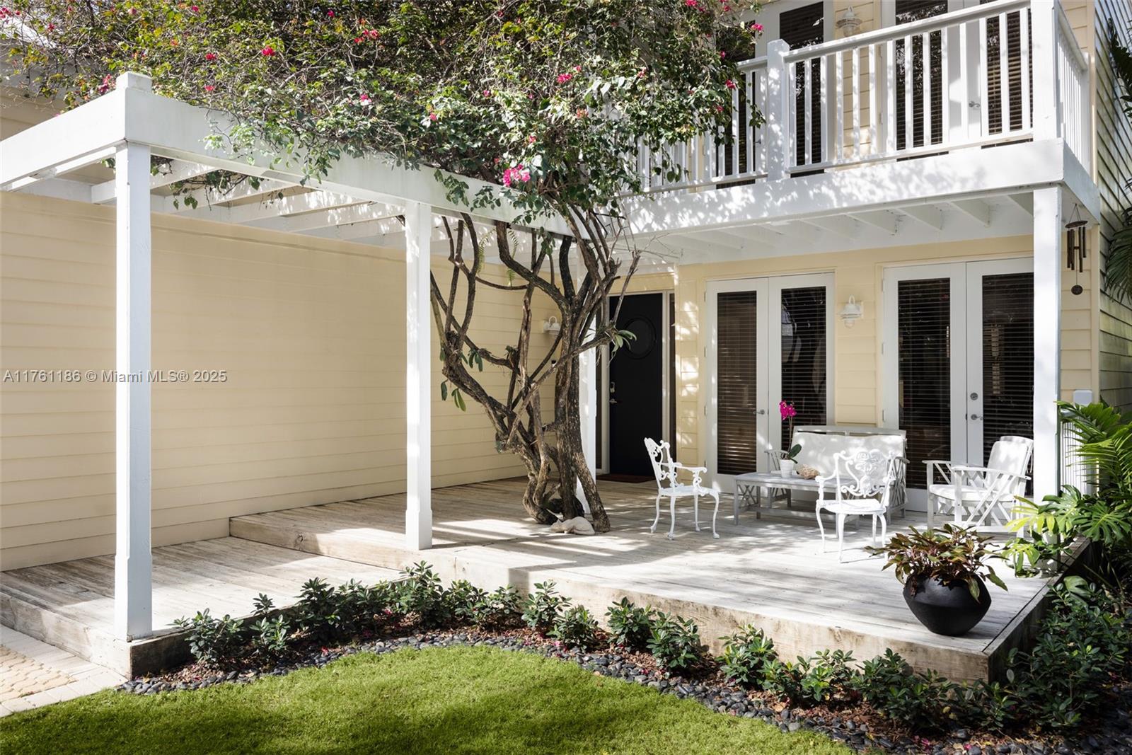 Captivating Key West style home on a coveted tree-canopied street in prestigious North Coconut Grove. Custom built w/ attention to detail and luxury fixtures & finishes throughout. Breathtaking, light-filled living spaces feature soaring, 29-foot+ vaulted, wood-beamed ceilings. Expansive eat-in kitchen & adjacent family room w/ banks of French doors opening to a deep covered terrace. Oversized primary suite is the ultimate retreat & offers private balcony with tree-top views. Experience year-round outdoor living & entertaining around the heated Saltwater pool & sundeck surrounded by lush tropical landscaping. Situated high on a coastal coral rock ridge, one of the highest sea-level elevations in South Florida.