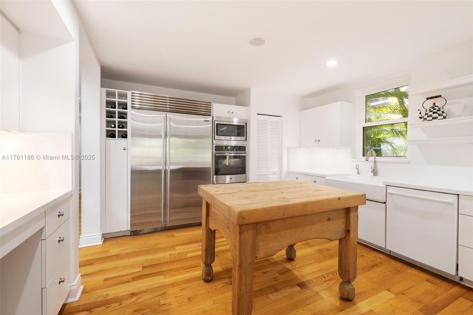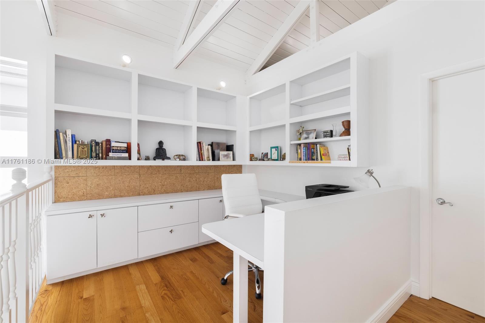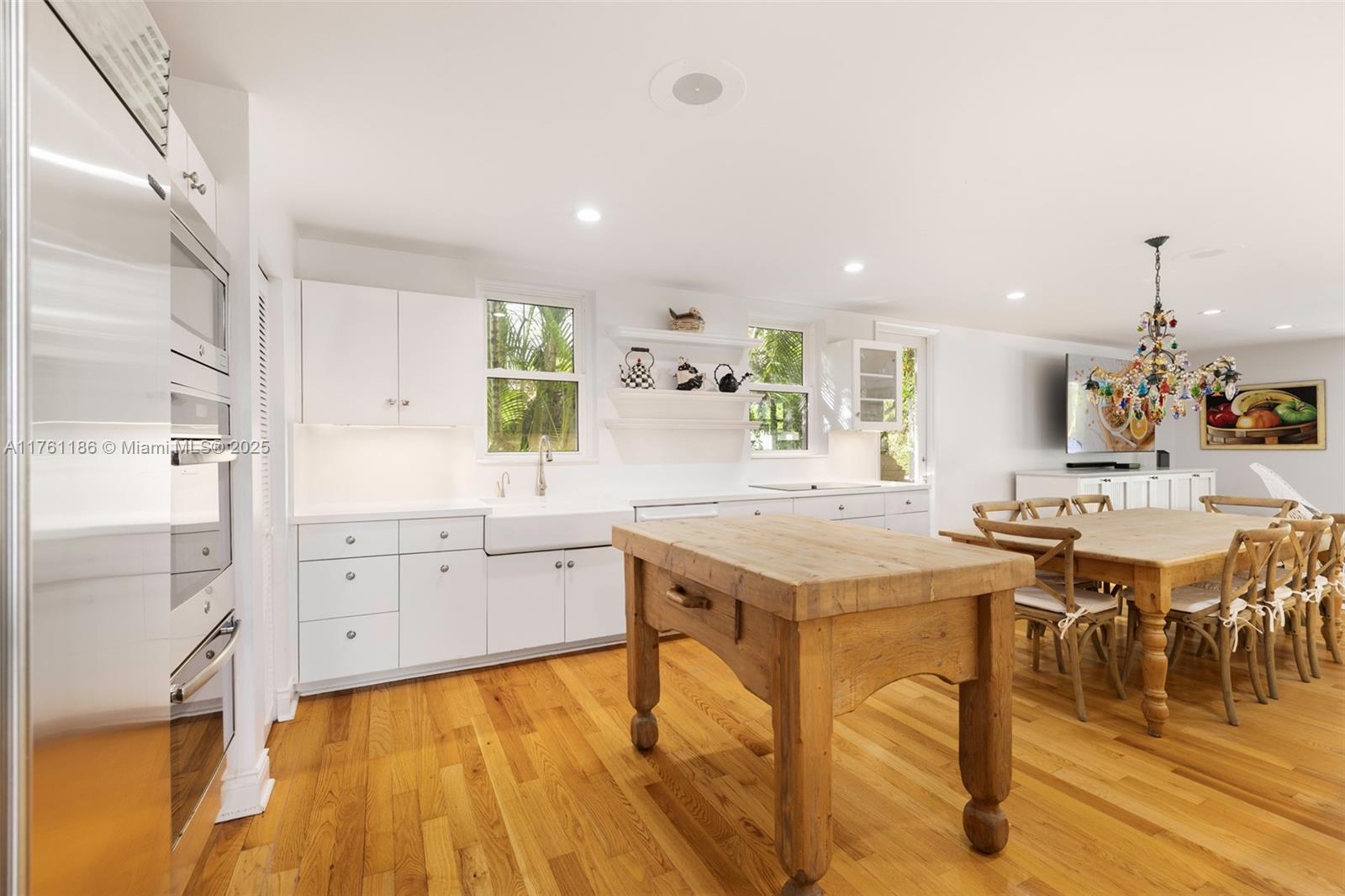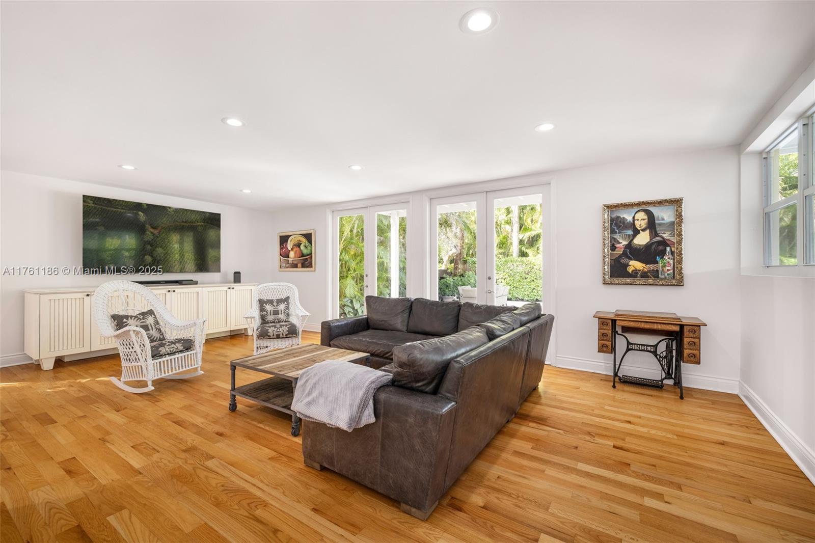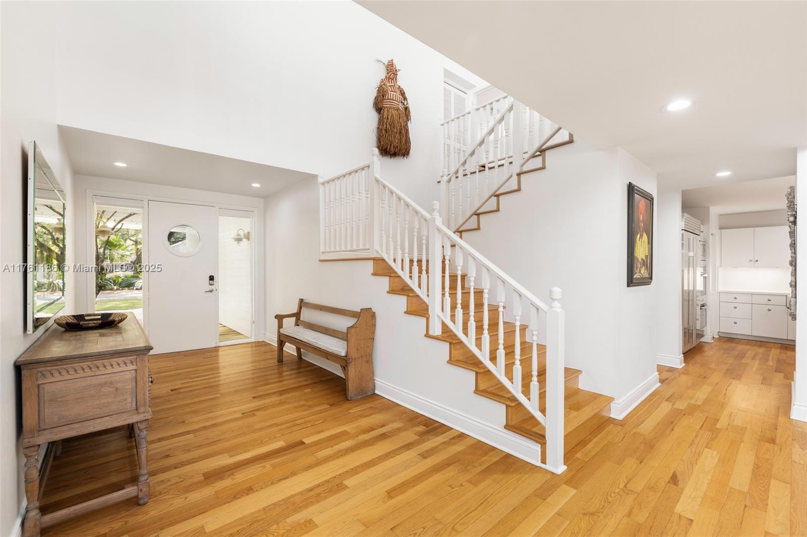 Captivating Key West style home on a coveted tree-canopied street in prestigious North Coconut Grove. Custom built w/ attention to detail and luxury fixtures & finishes throughout. Breathtaking, light-filled living spaces feature soaring, 29-foot+ vaulted, wood-beamed ceilings. Expansive eat-in kitchen & adjacent family room w/ banks of French doors opening to a deep covered terrace. Oversized primary suite is the ultimate retreat & offers private balcony with tree-top views. Experience year-round outdoor living & entertaining around the heated Saltwater pool & sundeck surrounded by lush tropical landscaping. Situated high on a coastal coral rock ridge, one of the highest sea-level elevations in South Florida.