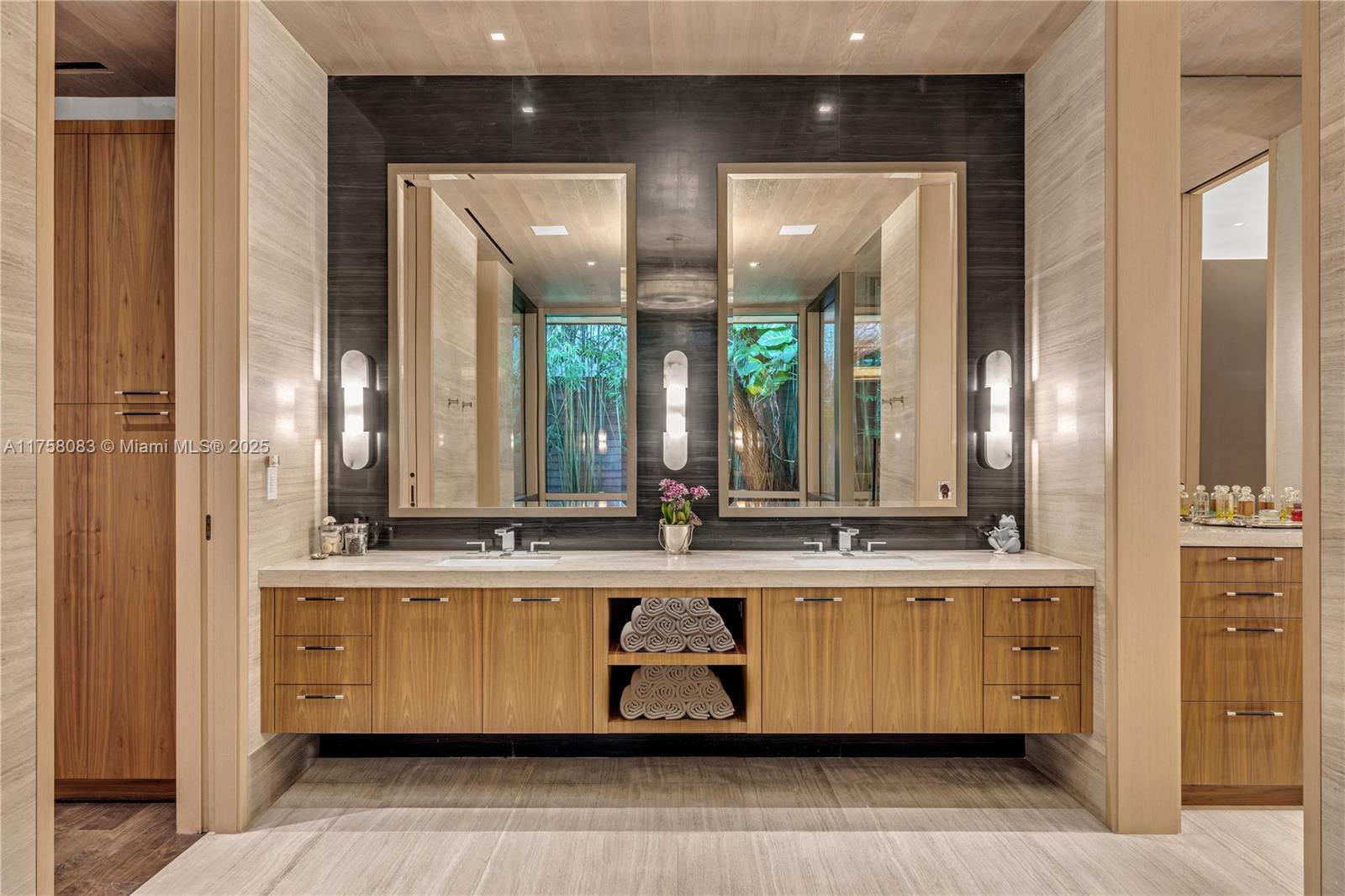Reminiscent of the work of Richard Neutra, this Mid-Century Modern estate, designed by Taylor & Taylor & built by Coastal Construction, is located in coveted Hammock Lakes. Tucked away in a gated community, & extremely private & secure, the home is situated among countless Mature Oak trees on a full acre of land. This recently updated 2-story, 8-bedroom home features natural stone & wood floors. Elegantly & stylishly appointed by a top-flight designer, this estate is perfect for the buyer who wants to move in tomorrow. Features include a Ground Floor Primary; large living room with fireplace; oversized dining room; gourmet kitchen; spacious pool, open lawns and cabana/guest house; Smart House; an abundance of natural light throughout the day both indoors and outdoors. NO expense spared.