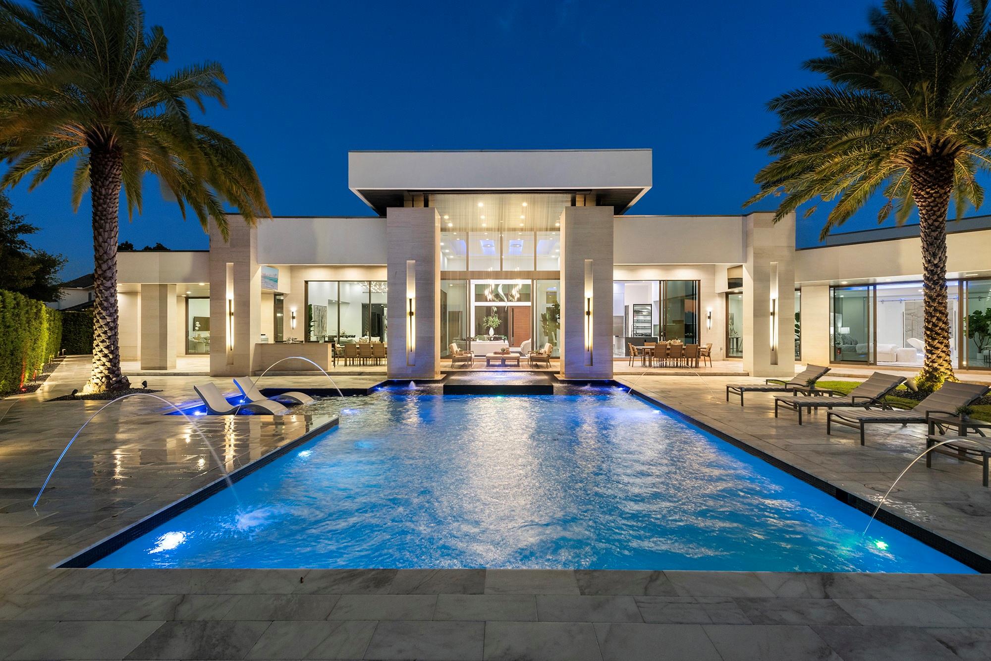 State-of-the-art custom estate, located within the prestigious Enclave at Coral Ridge Country Club in East Ft Lauderdale. This exclusive, guard-gated community of 32 homes with 24/7 manned security, ensuring ultimate seclusion & privacy while being a short distance to fine dining, shopping, 2 golf courses, the beach & private executive airport. Situated on an oversized corner 26,580SF lot, the home guarantees complete privacy and serenity. This one-of-a-kind single-story residence is a masterpiece of design with soaring ceilings & walls of glass provide expansive golf course views & multiple doorways blend indoor & outdoor living spaces. The grandeur of this custom-built home features 5BR, 6.5BA, office, media/club room, 5 Car A/C Garage with a glass wall will inspire the car enthusiasts.