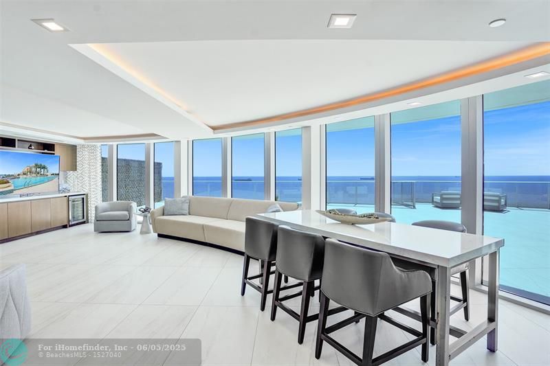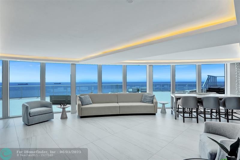 Experience luxury in the sky with this one-of-a-kind, fully furnished two-story PENTHOUSE offering unparalleled panoramic views of the Atlantic Ocean. Spanning 5,525 sq ft of interior living space and an expansive 5,360 sq ft of outdoor terraces. The 2nd floor offers a private office and a sophisticated lounge area. Dramatic nearly 11-foot ceilings paired with floor-to-ceiling glass walls capturing sunrises, sunsets, and endless blue waters. Enjoy 3 private elevator entrances, a wrap around balcony, a rooftop terrace complete with a private pool and a built-in summer kitchen. Designed for both grand entertaining and private relaxation. This spectacular penthouse offers a private cabana, three premium private parking spaces, and an AC storage unit.
