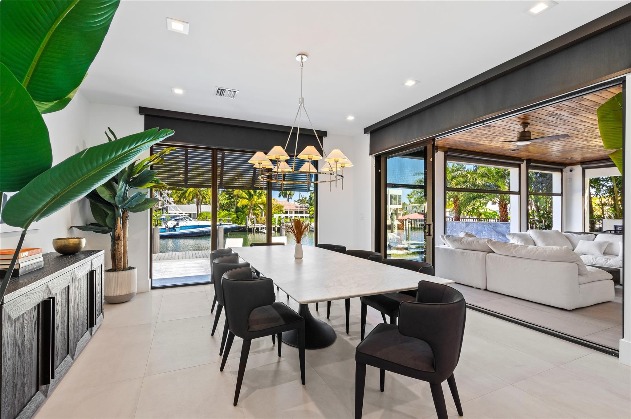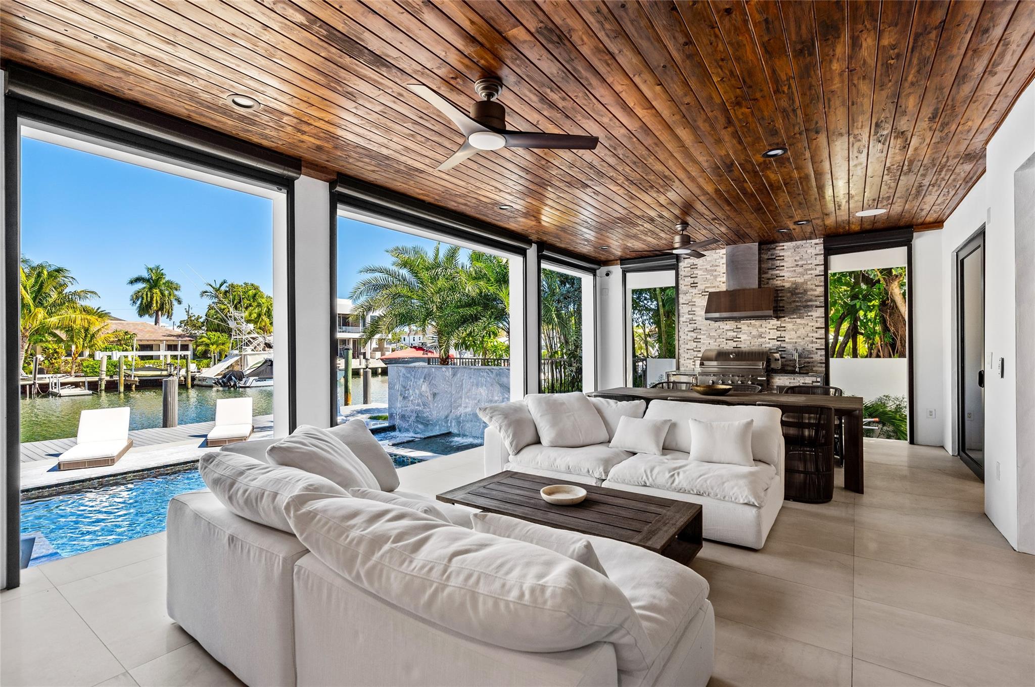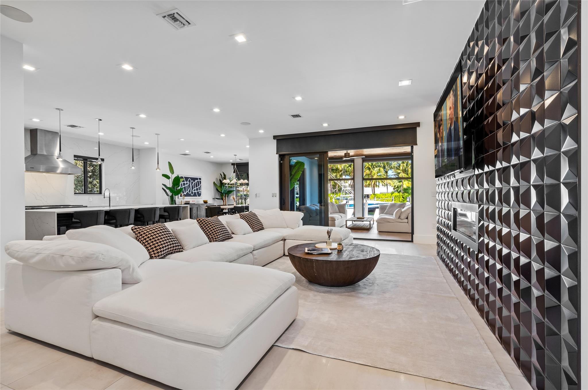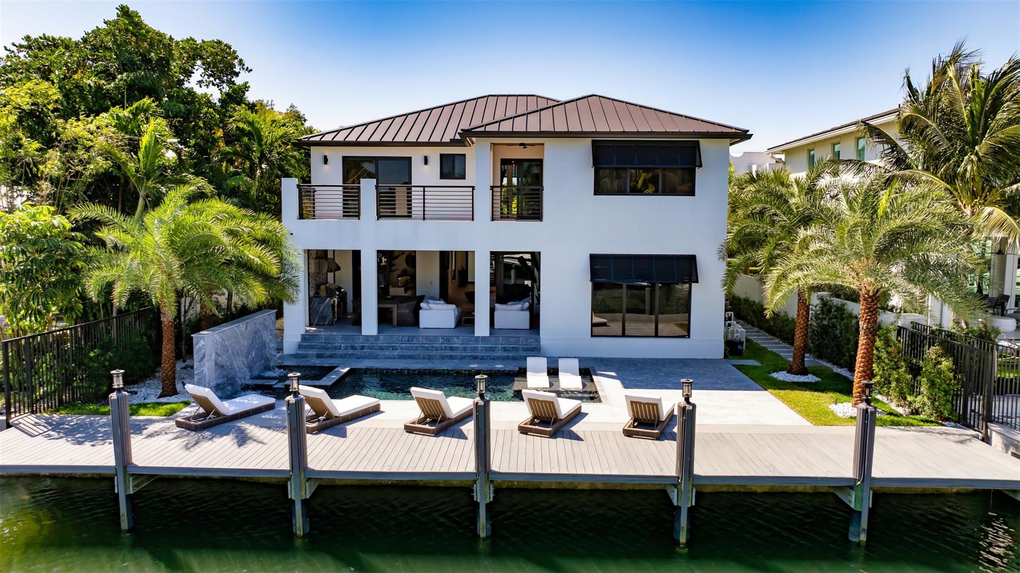 Stunning New Construction Estate sited on 65' of deepwater in Rio Vista Isles. This 5 bed/5.5 bath gated residence boasts 5,122 total sqft of seamless indoor-outdoor living. Chefs kitchen fit with a 6 burner Viking gas stove/griddle, Viking double refrigerator/freezer, 2 Viking dishwashers, Bosch built-in coffee/espresso maker, European cabinetry, & 24" Thermador wine column & ice maker. Smart-house tech featuring electronic shades, double-sided linear electric fireplace, and programmable hot steam shower! Enhanced closet design and expansive covered summer kitchen & loggia complete with gas grill, refrigeration, & impressive electric phantom screens. A heated salt-water pool/spa with cascading waterfall features, set within marble decking, leads to the new composite dock & raised seawall.