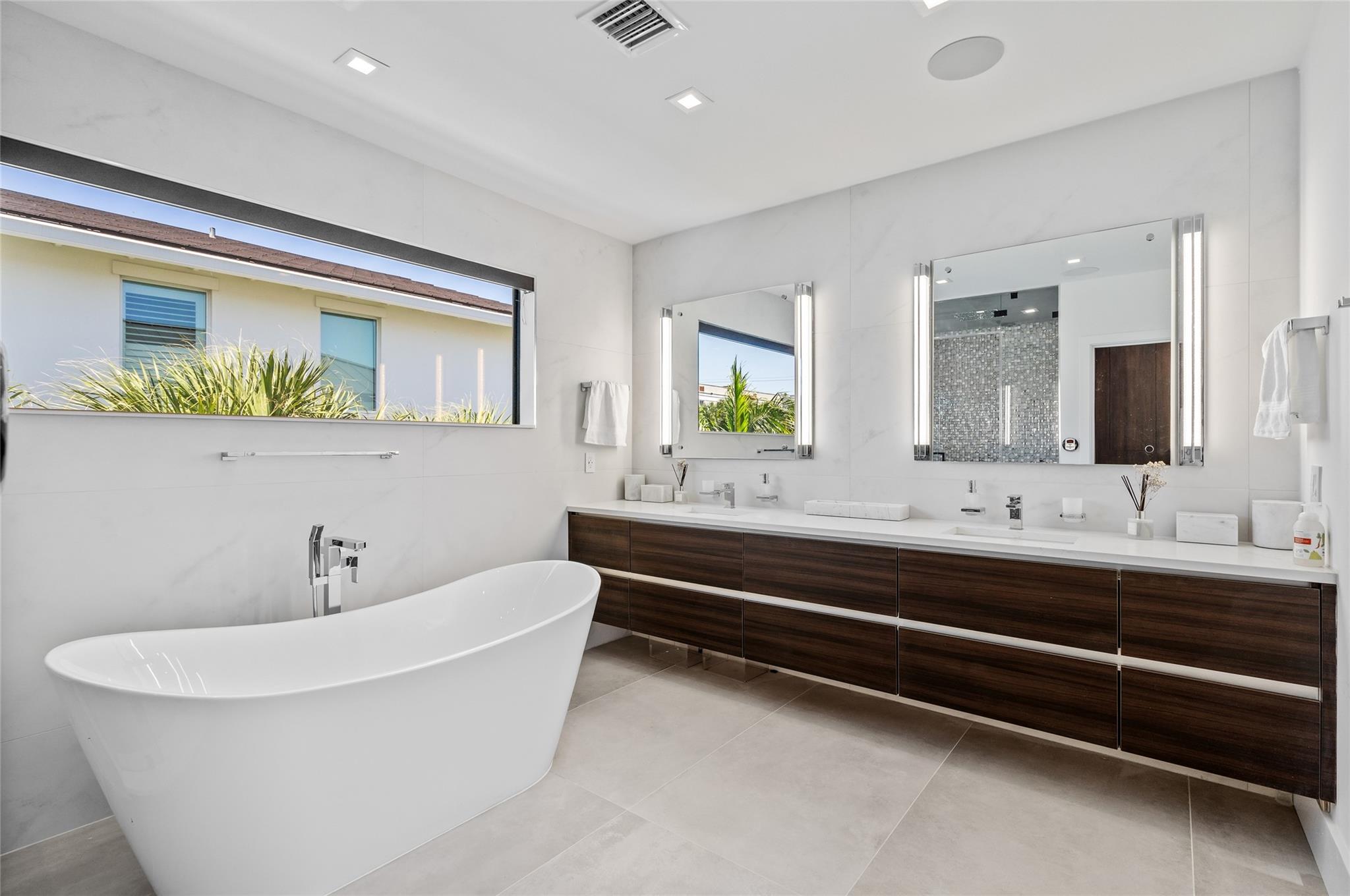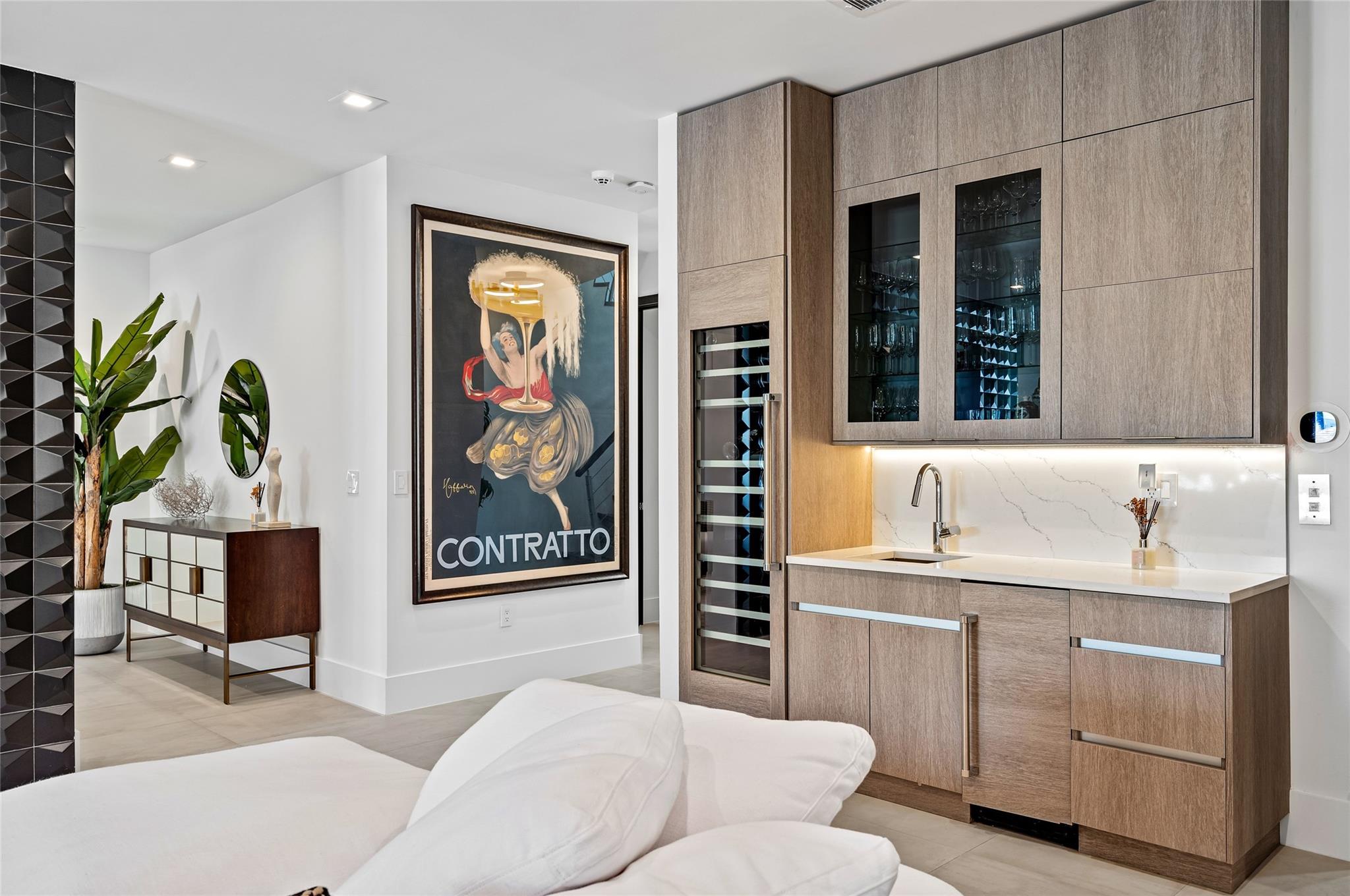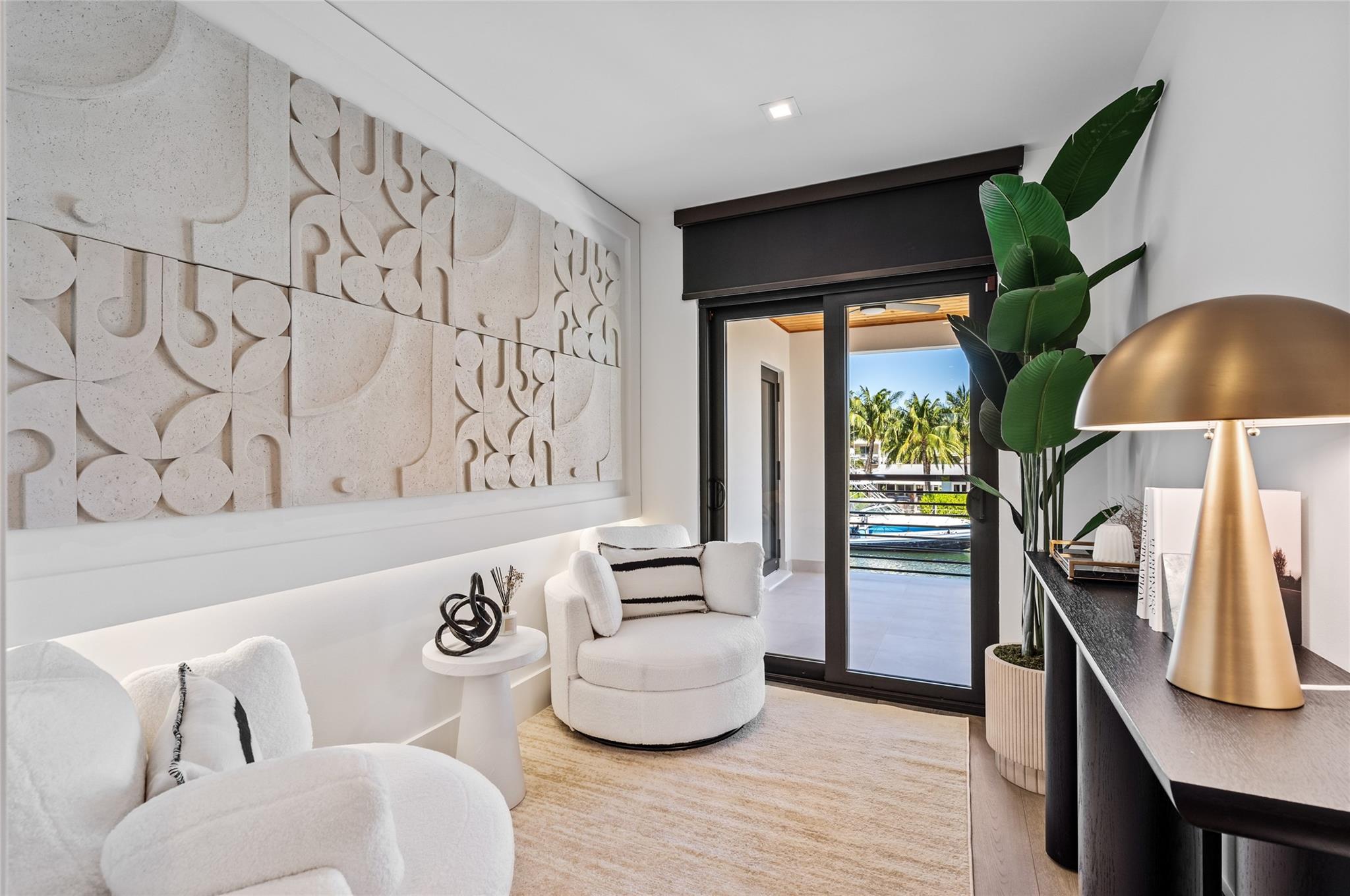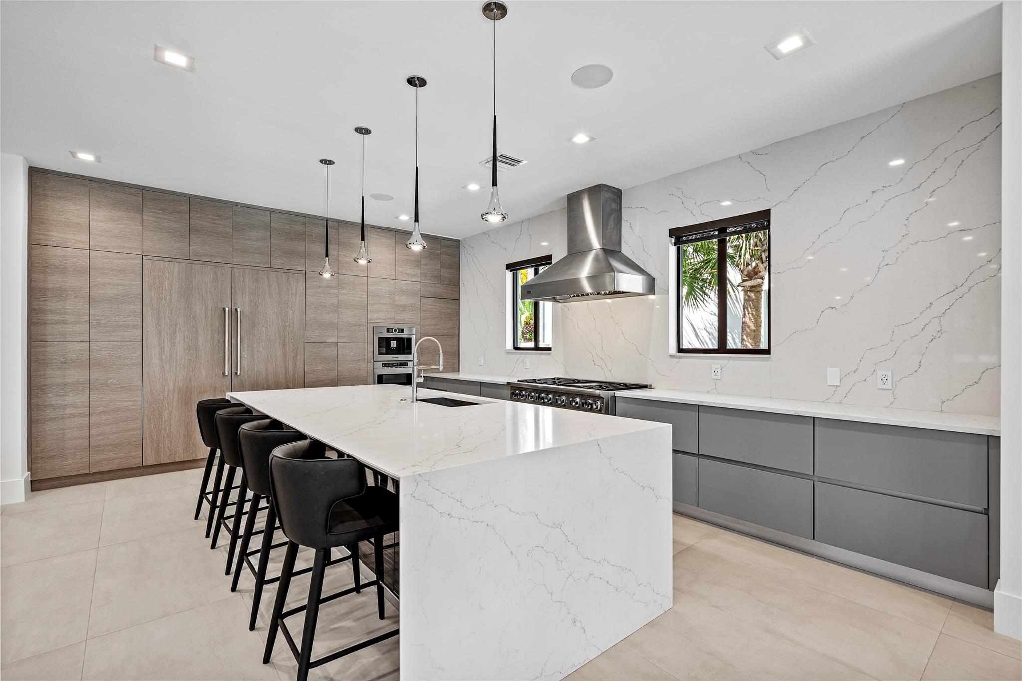 Stunning New Construction Estate sited on 65' of deepwater in Rio Vista Isles. This 5 bed/5.5 bath gated residence boasts 5,122 total sqft of seamless indoor-outdoor living. Chefs kitchen fit with a 6 burner Viking gas stove/griddle, Viking double refrigerator/freezer, 2 Viking dishwashers, Bosch built-in coffee/espresso maker, European cabinetry, & 24" Thermador wine column & ice maker. Smart-house tech featuring electronic shades, double-sided linear electric fireplace, and programmable hot steam shower! Enhanced closet design and expansive covered summer kitchen & loggia complete with gas grill, refrigeration, & impressive electric phantom screens. A heated salt-water pool/spa with cascading waterfall features, set within marble decking, leads to the new composite dock & raised seawall.