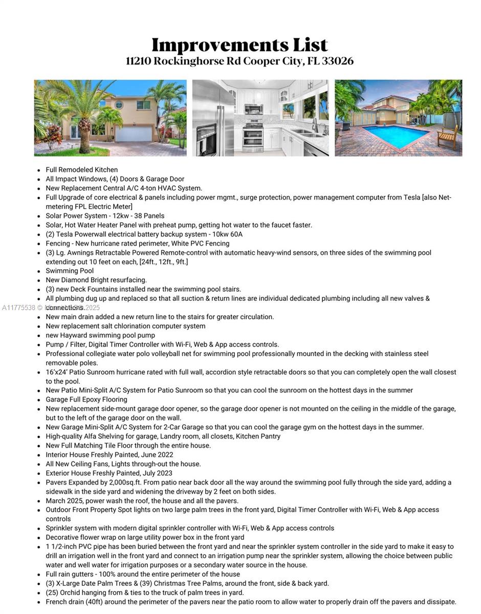 SPECTACULAR 3-BED 2.5-BATH TASTEFULLY RENOVATED POOL HOME IN GATED REFLECTIONS IN ROCK CREEK. BEAUTIFUL TILE FLOORS, VAULTED CEILINGS, ARCHED WINDOWS. KITCHEN & DINING AREA SEAMLESSLY CONNECT TO YOUR VERY OWN POOL OASIS THROUGH ACed ENCLOSED SUNROOM. PRIMARY SUITE W WALK-IN CLOSET, DUAL SINKS & LARGE TUB; WELL-SIZED BEDROOMS. 2 CAR GARAGE W EPOXY FLOOR & SPLIT AC; FULL IMPACT. PRIVATE HURRICANE RATED FENCED YARD W PALM TREES & BEAUTIFUL PATIO. 3 RETRACTABLE AWNINGS FOR SHADE, 38 SOLAR PANELS, NEW ELECTRICAL PANELS, 2 TESLA POWERWALL ELECTRICAL BATTERY BACKUP SYSTEMS. XFINITY/ATT AVAILABLE. ROCK CREEK PET FRIENDLY COMMUNITY W 2.75 MILE JOG/WALK PATH, PARKS, LAKES, SPORTS COURTS, TOT PLAYGROUNDS, TREE LINED STREETS. ACCESS TO POOL & TENNIS CENTER W SMALL FEE. ZONED FOR COOPER CITY SCHOOLS.