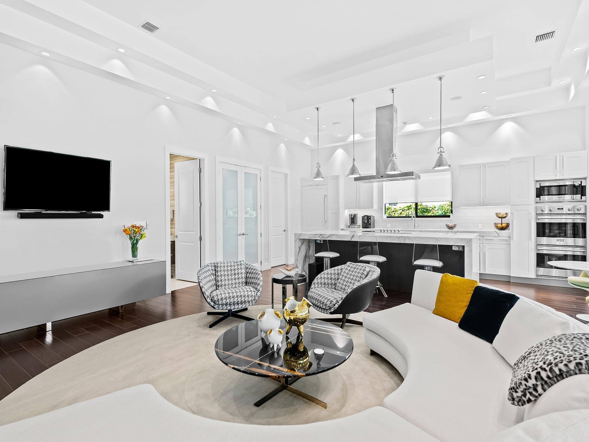 Unrivaled architecture & design defines this luxurious residence in East Fort Lauderdale's coveted subdivision of Coral Ridge. Every element has been created to cultivate today's modern lifestyle & open concept living with soaring ceilings & walls of glass doorways providing a luminous floor plan. Multiple doorways bridge indoor outdoor living spaces enhanced by an enormous covered lanai w/multiple seating areas, a summer kitchen & heated pool complete with a sun shelf & spa. The culinary kitchen is ideal for the avid chef with upgraded appliances, tremendous storage & oversized center island for entertaining. The primary suite boasts a custom walk-in closet & spa inspired bathrm. Details include: en-suite guest rooms, home office, home generator, gated entry & more. Sq ft from seller
