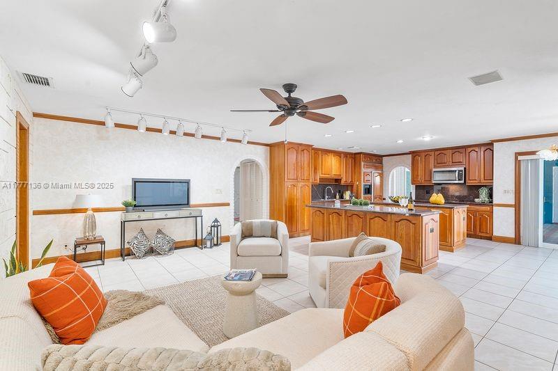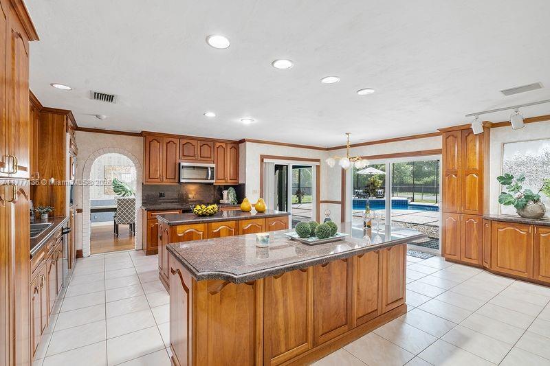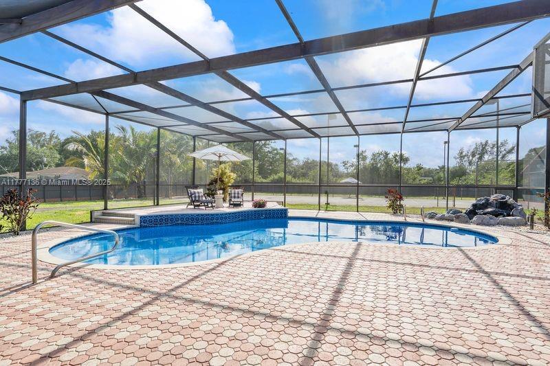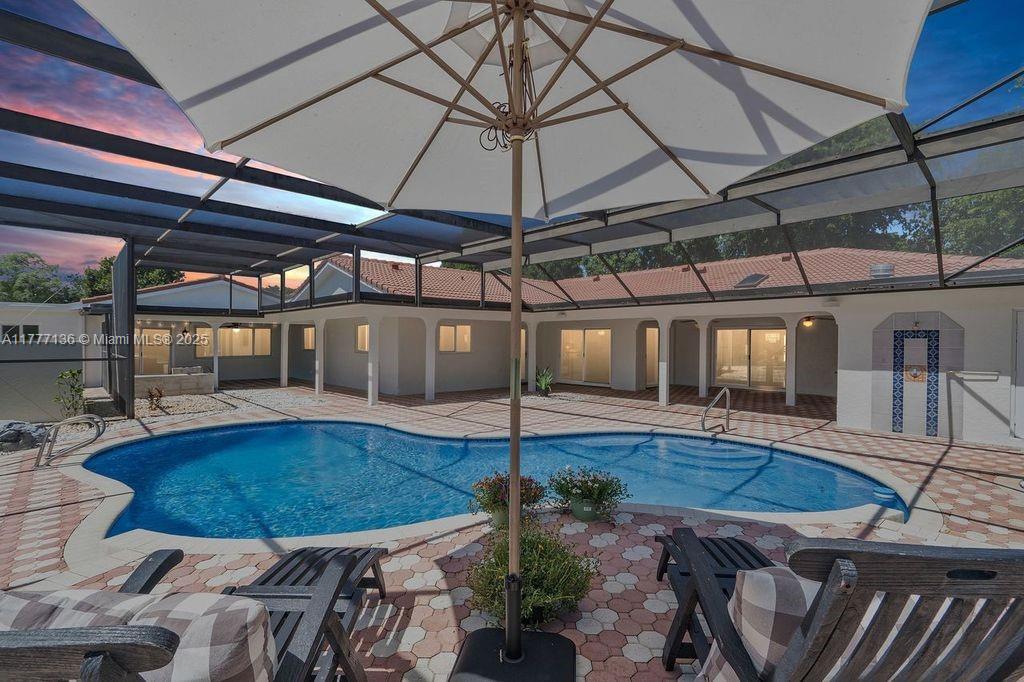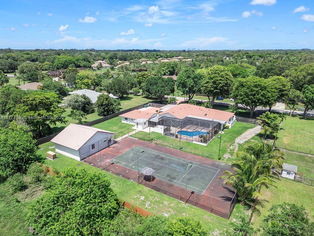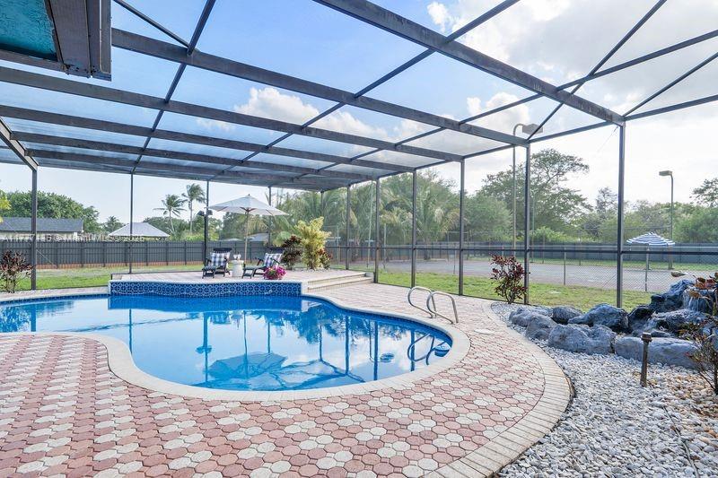 Price reduction and rare opportunity!'Endless possibilities await in this beautiful 6beds/ 2.5 bath poolhome includes a guest house situated on over an acre of beauty has so much to offer. Main house offers 5 beds/2.5 baths, impact windows, large living areas, gourmet kitchen, formal dining, high ceilings, theater room with surround sound, Guest house adjacent to main house offers 2 large beds/1 full bath, living/dining area, kitchen, large laundry room with water heater, a private entrance. Additionally there's a separate structure for entertainment/retreat offering a full bar area, full bathroom ,billiard/poker table, room for a wine room.Tennis court,Large screened resort style oversized pool,outdoor kitchen & shower,water softener, generator and so much more! Prime location,don't wait