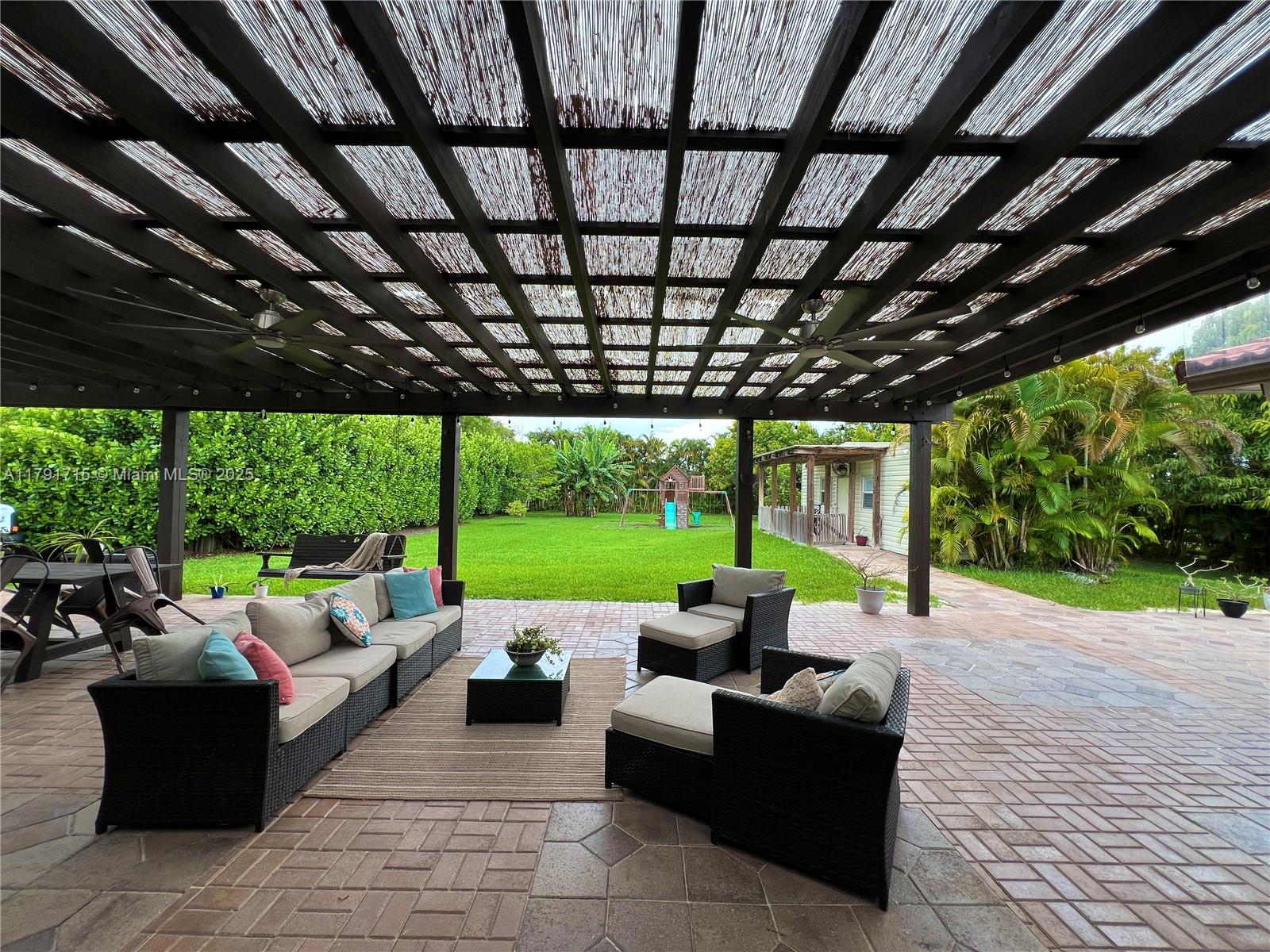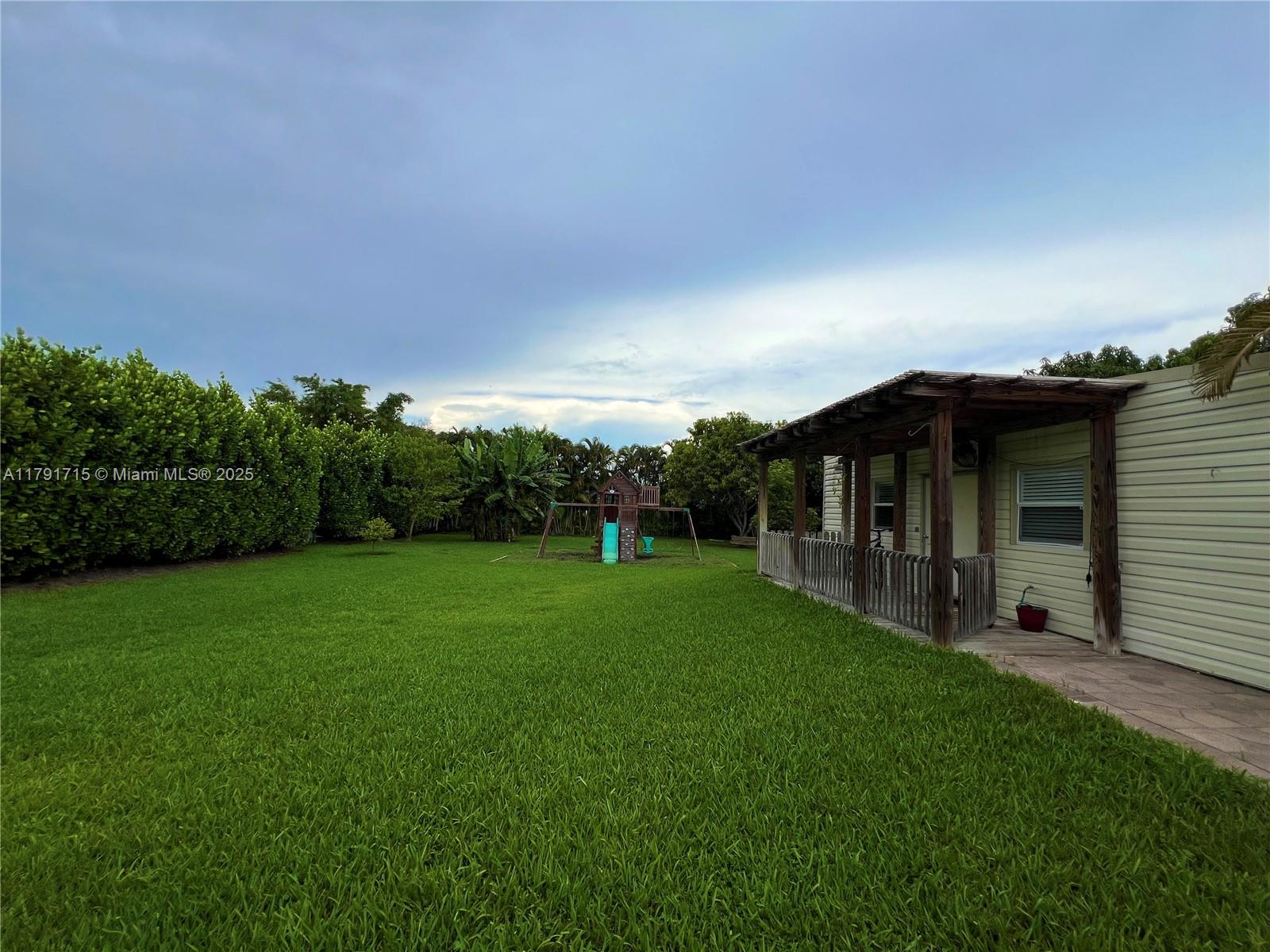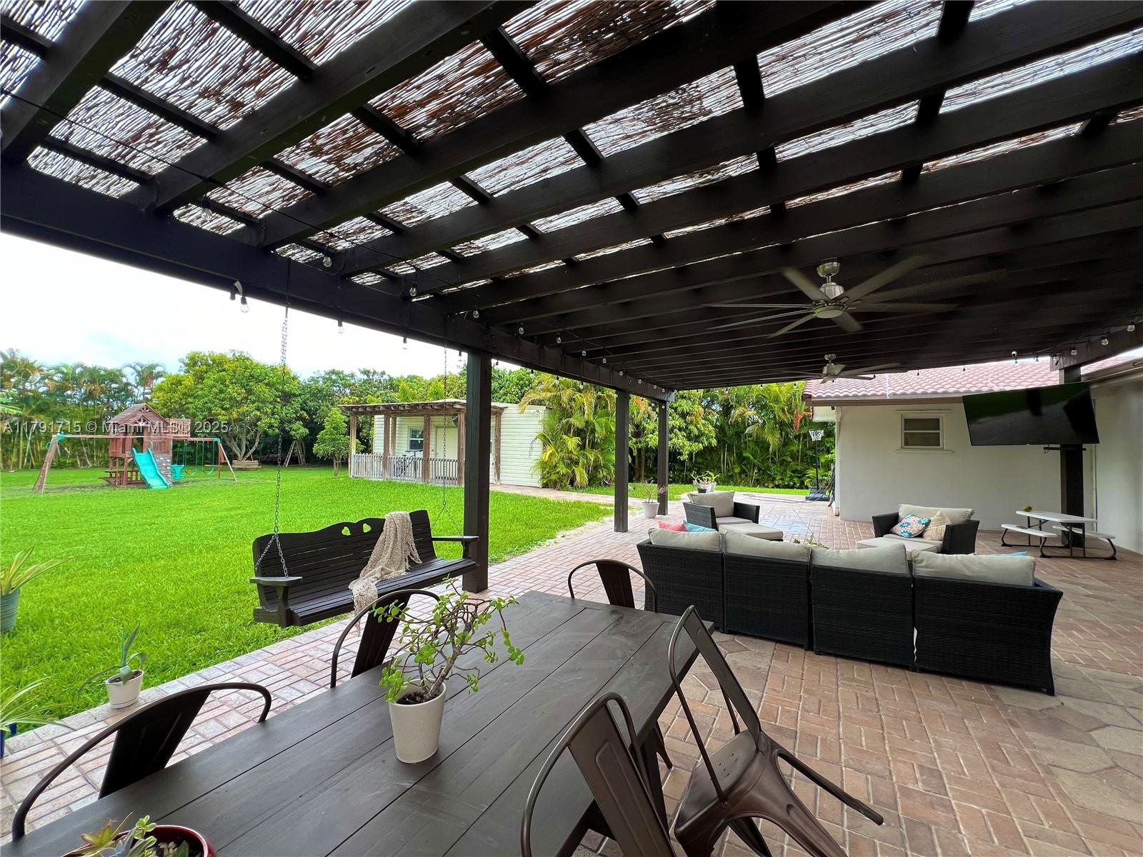 Welcome to your dream family home tucked away in an exclusive cul-de-sac! This beautifully updated residence features 3 spacious bedrooms, 2 modern bathrooms, and a dedicated office--perfect for working from home. The renovated kitchen boasts granite countertops, stainless steel appliances, and elegant tile flooring throughout. Enjoy added peace of mind with impact windows, plus a backyard shed for storage and a separate guest house offering extra space or income potential. The expansive patio includes a stylish pergola, a private playground, and plenty of room to add a pool. Located in a top-rated A+ school district, this property also offers equestrian-friendly zoning, making it ideal for horse enthusiasts. Owner Motivated!!!