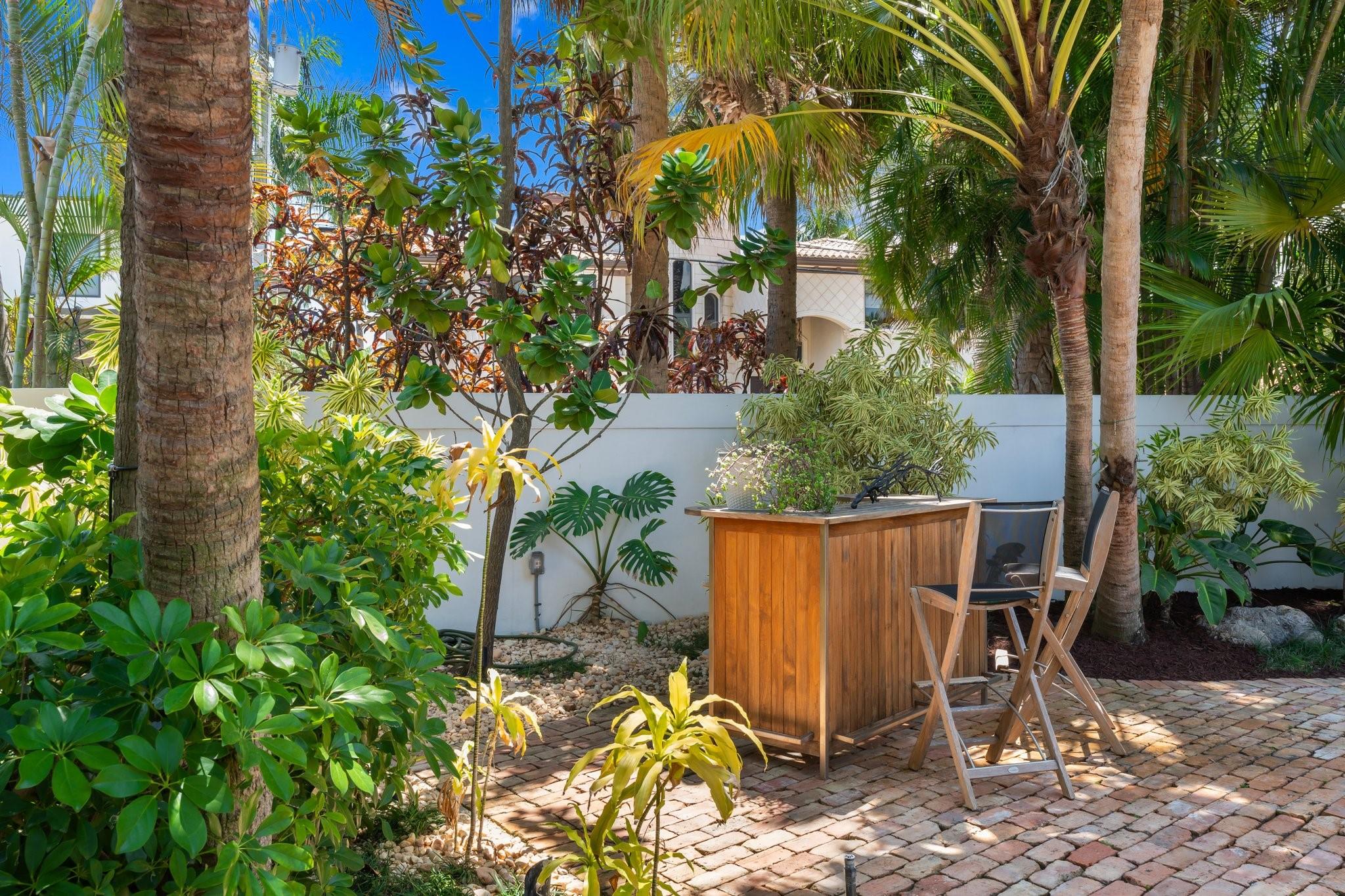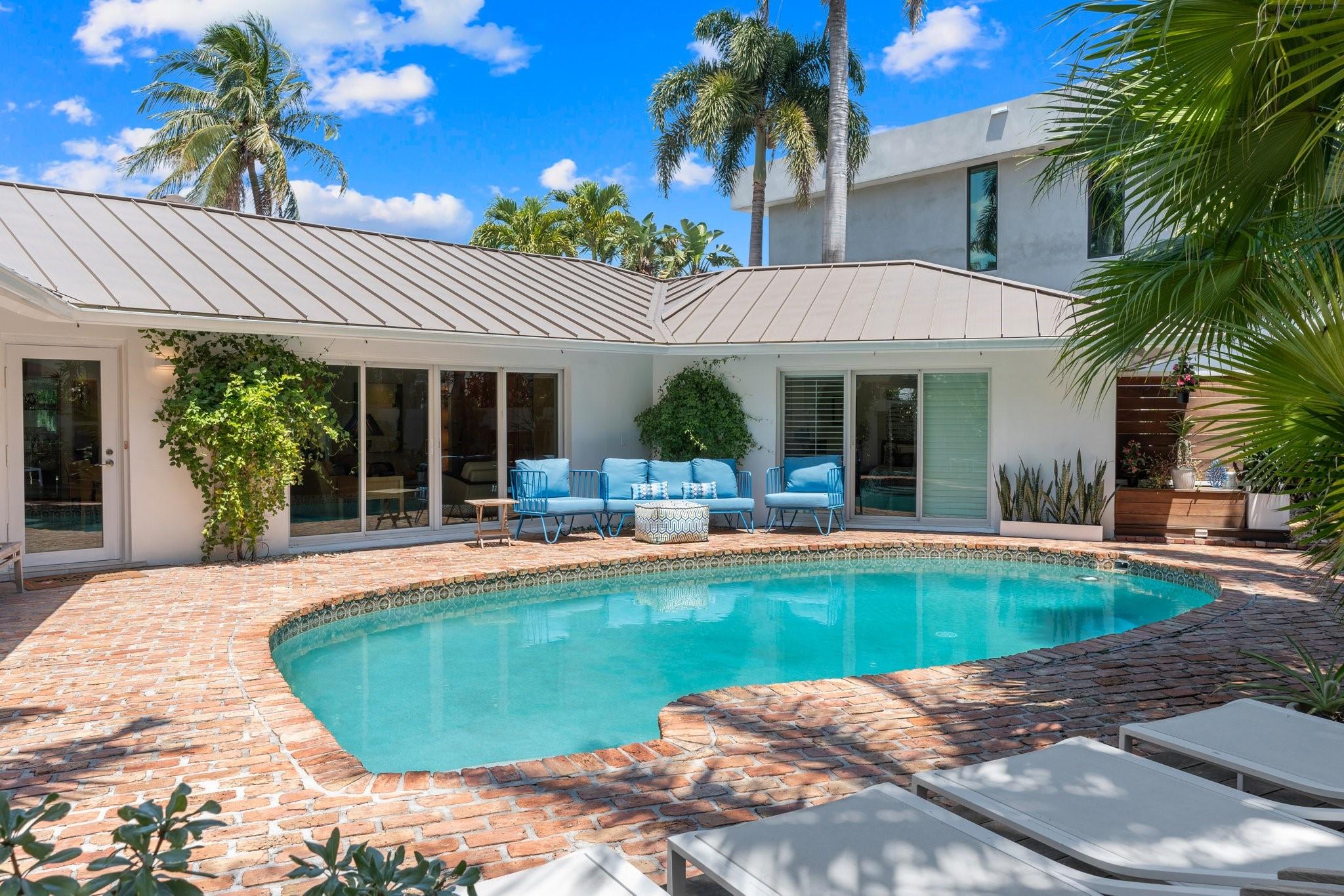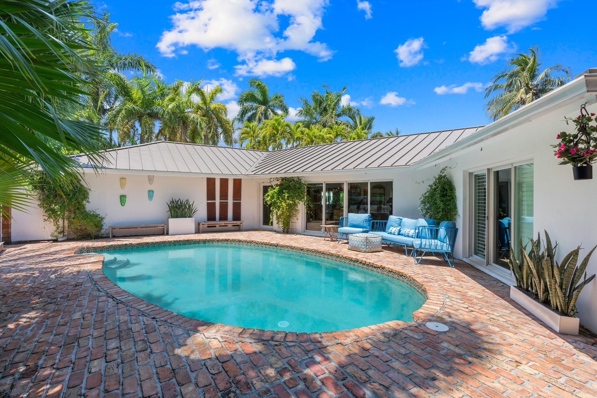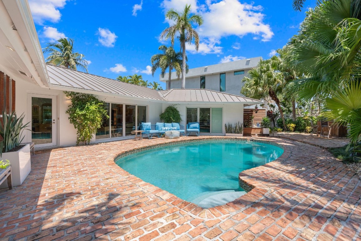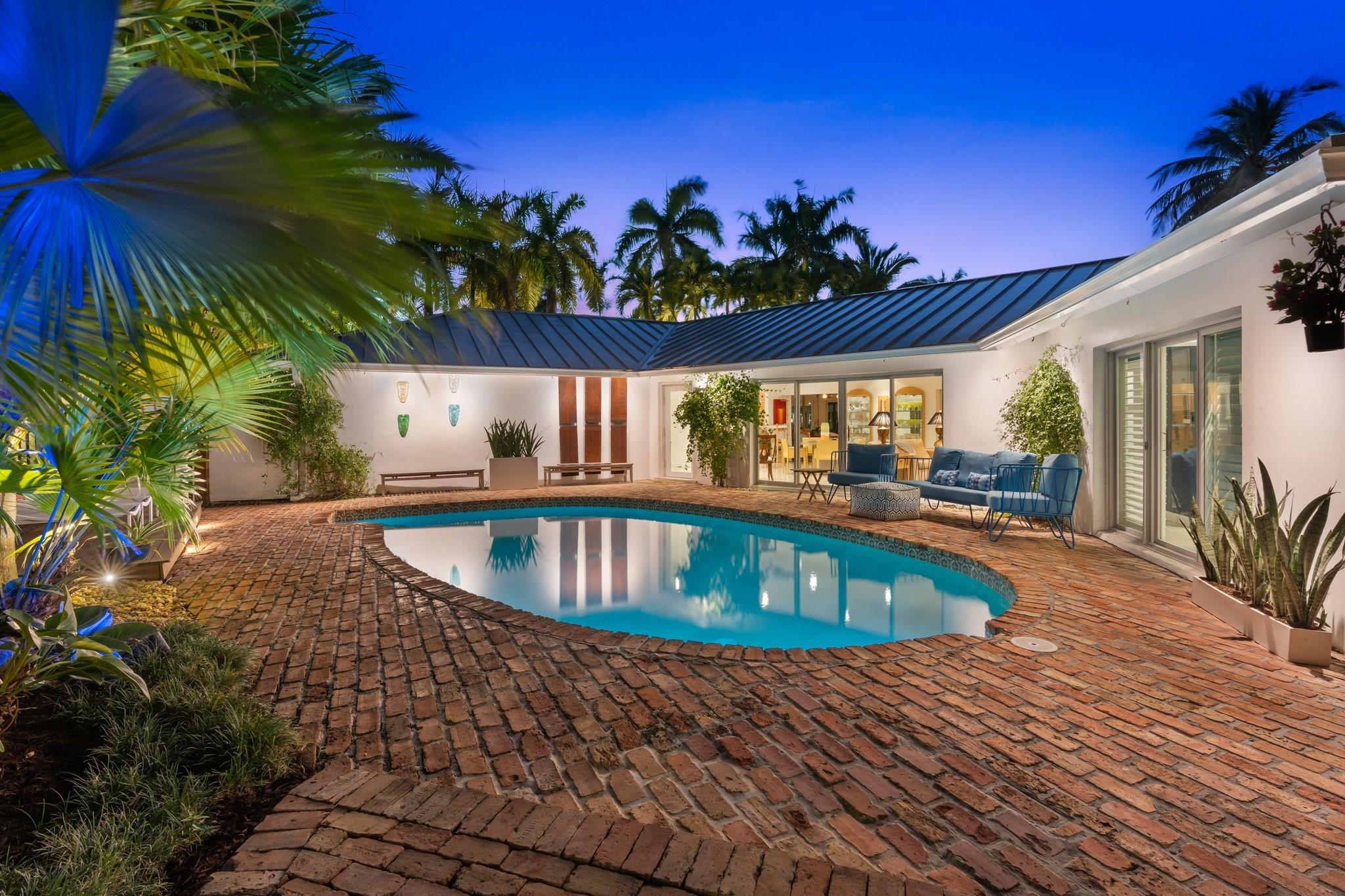 This Hidden Gem Combines A Very Private Pool w/no Fixed Bridges To The Ocean In A Lush Tropical Setting. A 3 Bed, 2 1/2 Bath, 2-Car Garage Home w/ Gorgeous Restored Terrazzo Floors, Hi-End Appliances, Beautiful Countertops & Backsplashes Adorn The Very Cool Mid-Century Kitchen, w/ Coffee Station, Pantry & Lunch Bar. The Floor Plan Has The Flow Of A Modern, Open Plan w/ Defined Spaces For Dining, Entertaining, Home Office/Den, Wet Bar/Media Room w/ 2-Sided Fireplace, AND VAULTED CEILINGS! Plus 600sf Covered Outdoor Space. Dock w/ Power, Water, 12,000 lb Boat Lift. Separate Irrigation Meter, Separate Garage Mini-Split A/C, New Roof 2020, New A/C 2022, New Ducts In 2024. Tropical, Beautiful, Complete. This Home Is Move In Condition For Your Most Particular & Interesting Clients.