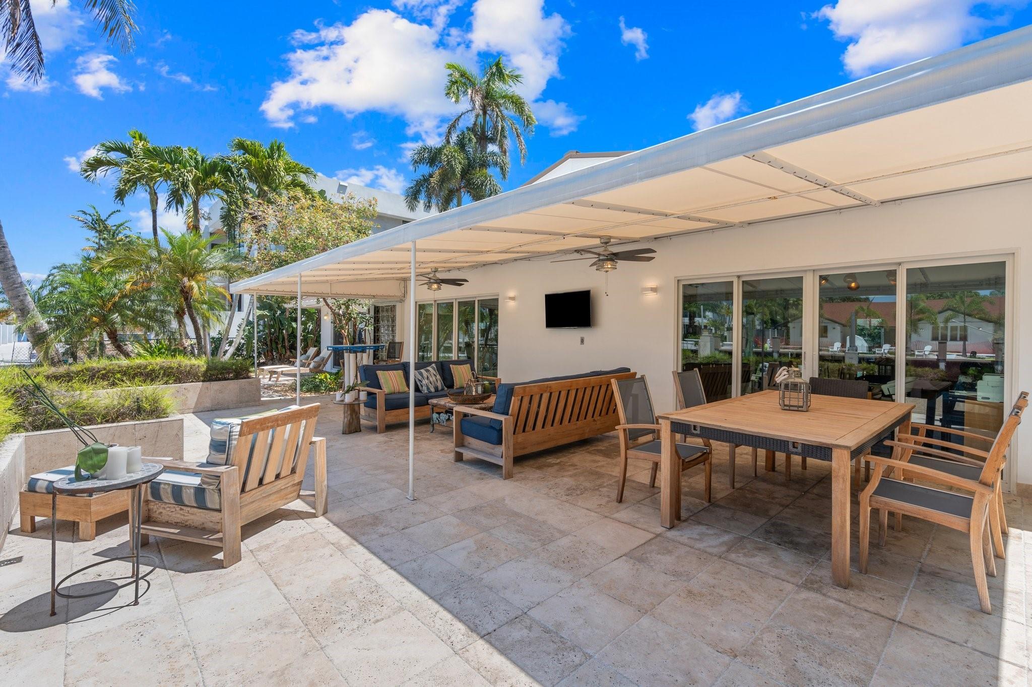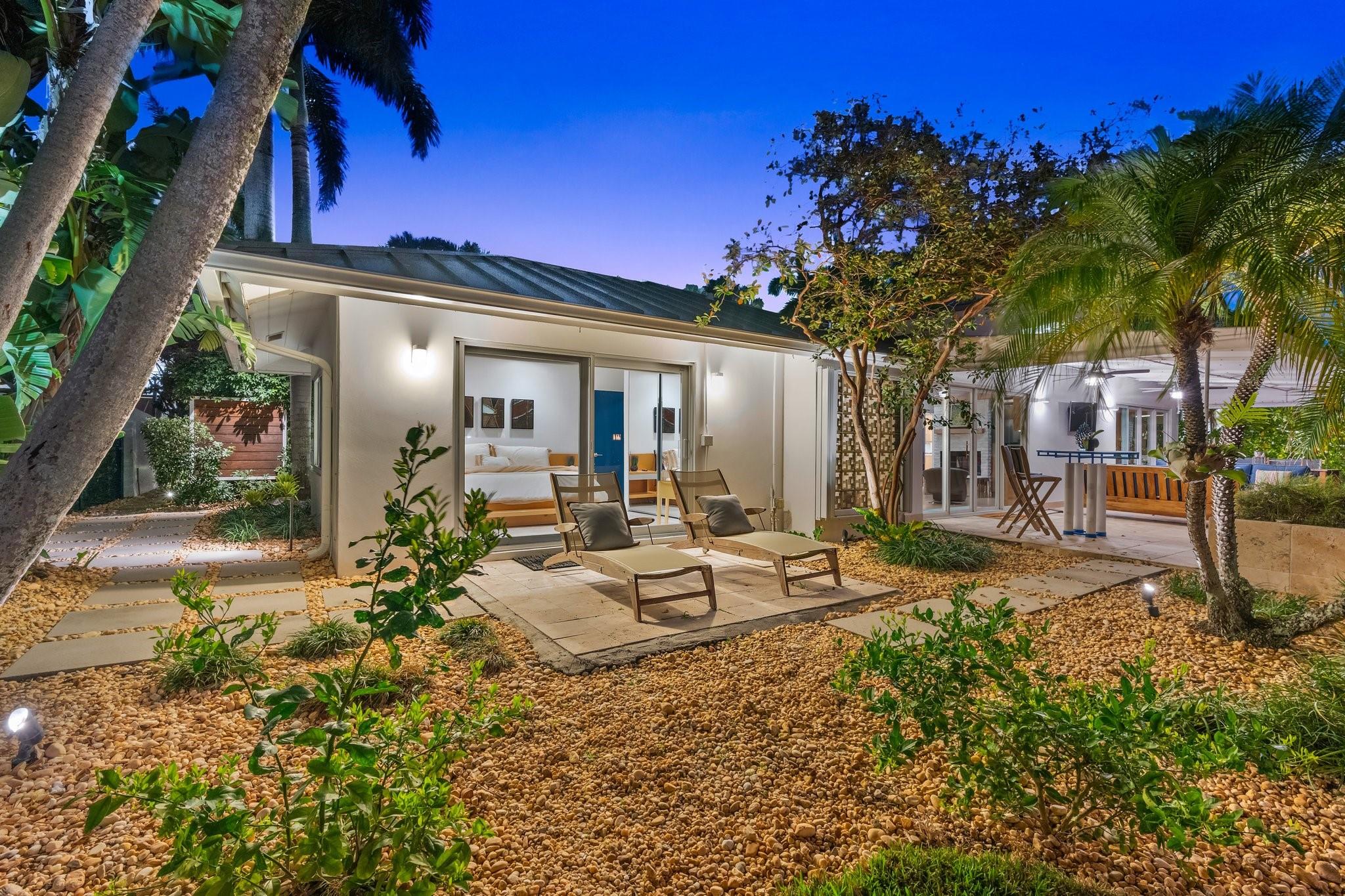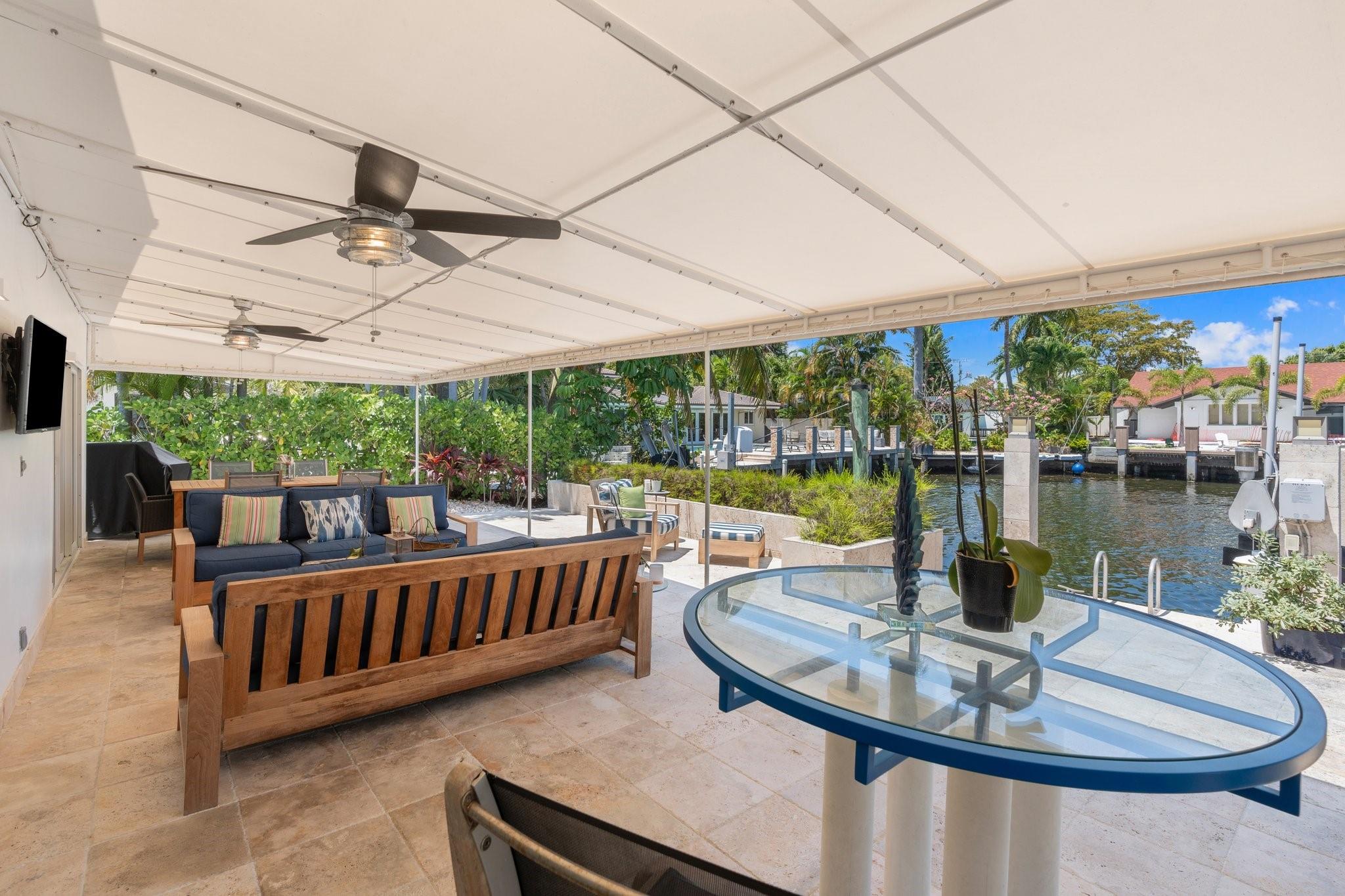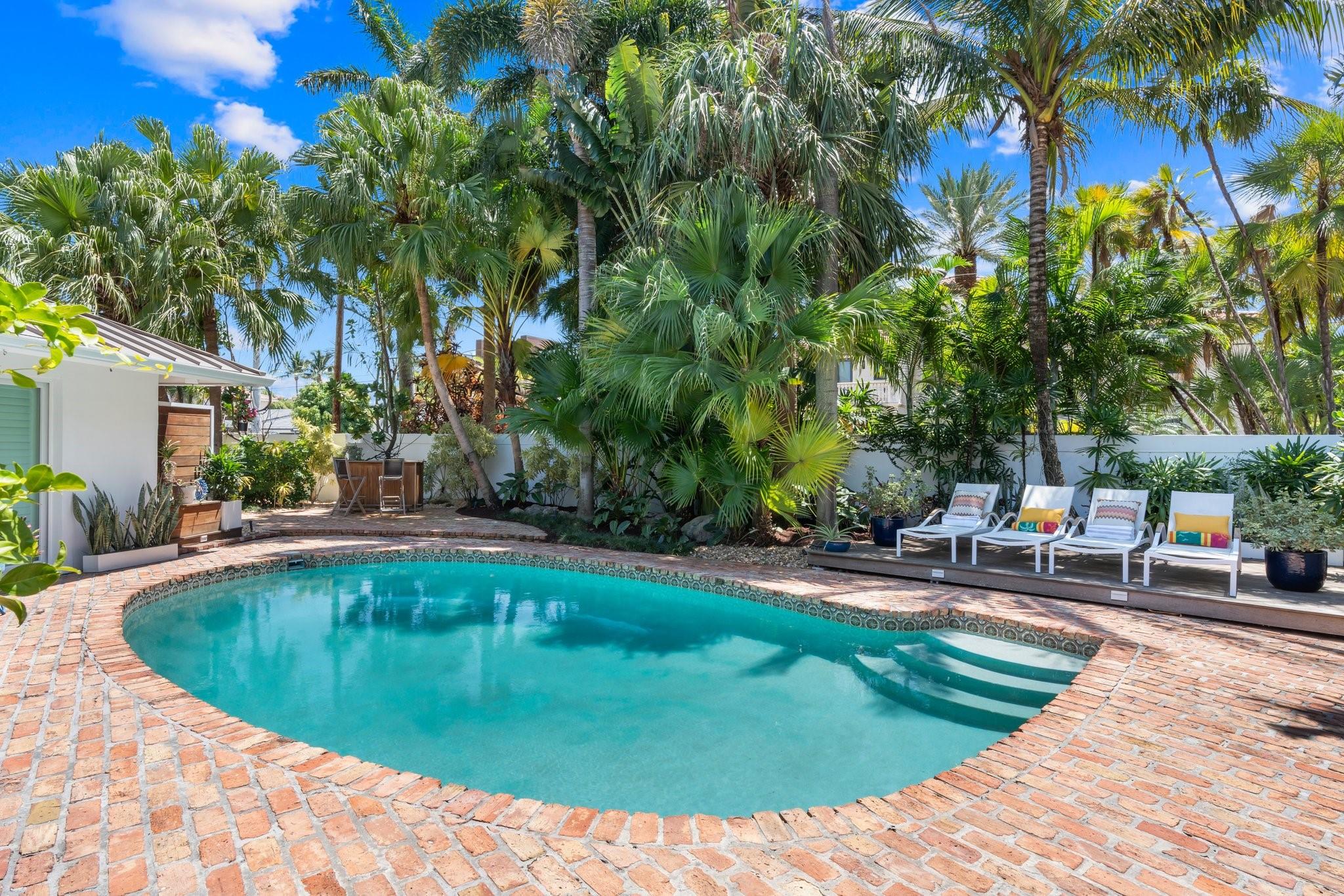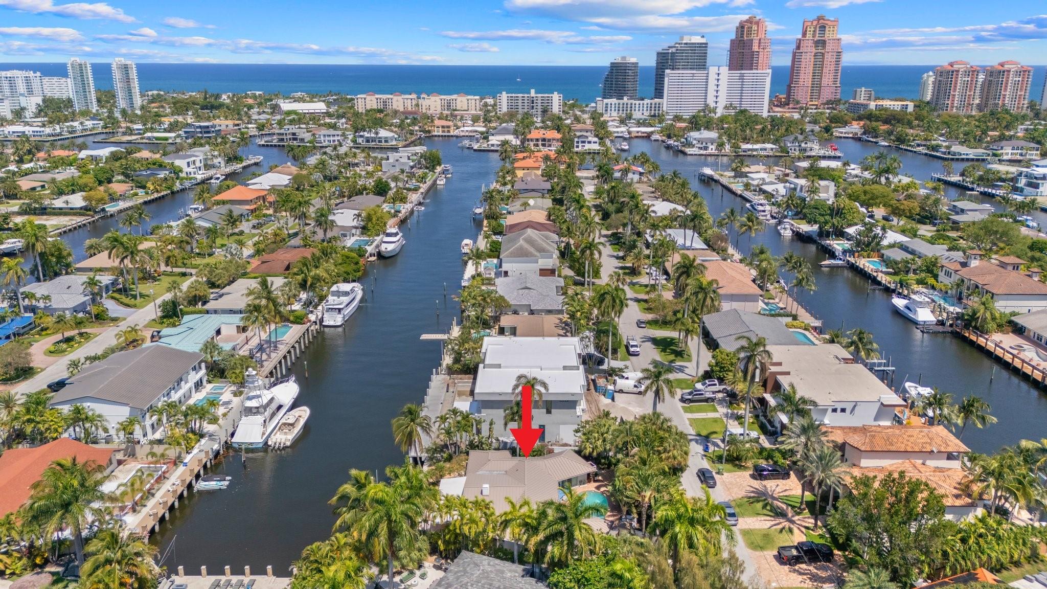 This Hidden Gem Combines A Very Private Pool w/no Fixed Bridges To The Ocean In A Lush Tropical Setting. A 3 Bed, 2 1/2 Bath, 2-Car Garage Home w/ Gorgeous Restored Terrazzo Floors, Hi-End Appliances, Beautiful Countertops & Backsplashes Adorn The Very Cool Mid-Century Kitchen, w/ Coffee Station, Pantry & Lunch Bar. The Floor Plan Has The Flow Of A Modern, Open Plan w/ Defined Spaces For Dining, Entertaining, Home Office/Den, Wet Bar/Media Room w/ 2-Sided Fireplace, AND VAULTED CEILINGS! Plus 600sf Covered Outdoor Space. Dock w/ Power, Water, 12,000 lb Boat Lift. Separate Irrigation Meter, Separate Garage Mini-Split A/C, New Roof 2020, New A/C 2022, New Ducts In 2024. Tropical, Beautiful, Complete. This Home Is Move In Condition For Your Most Particular & Interesting Clients.