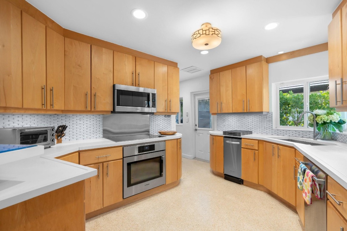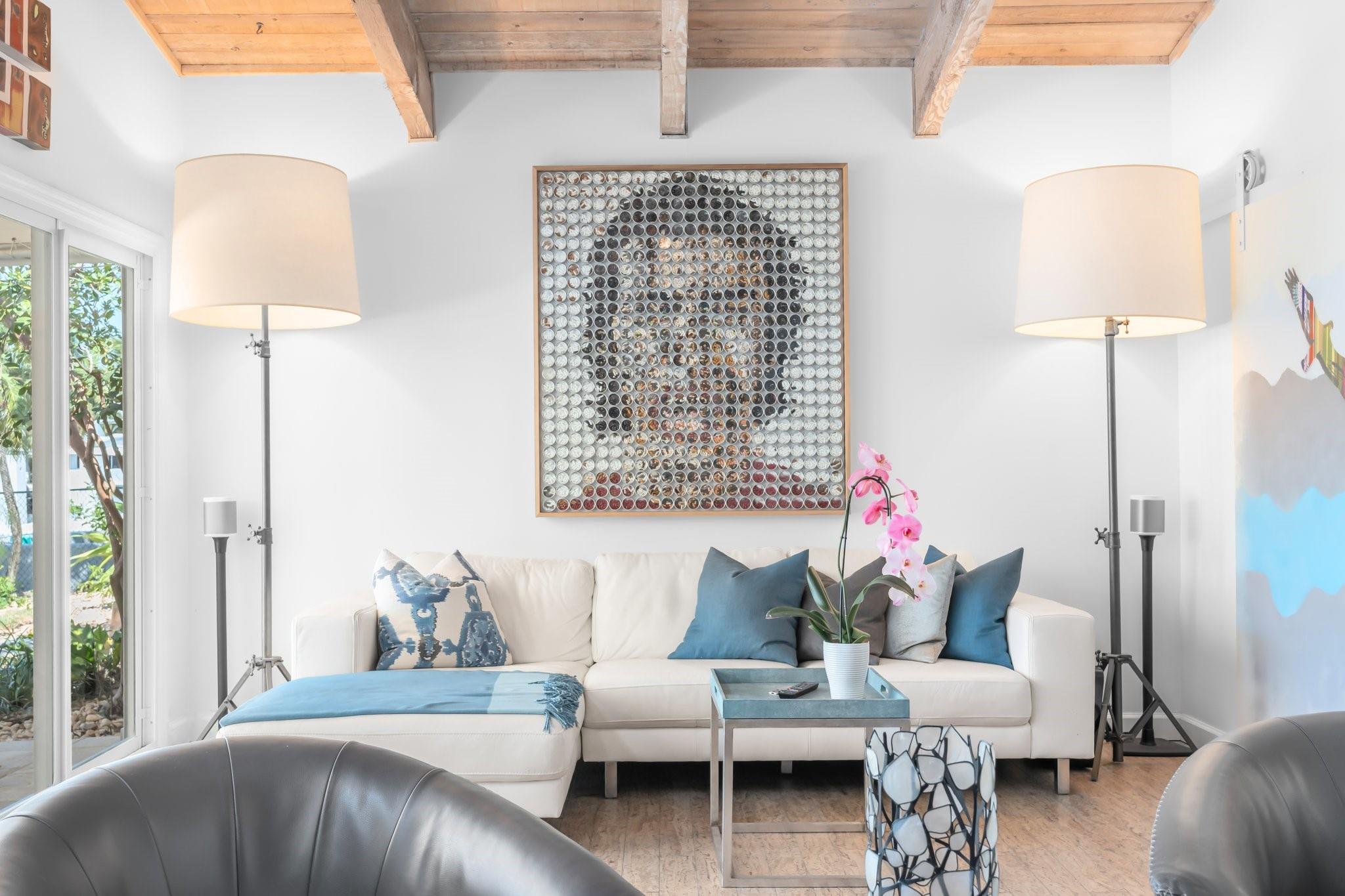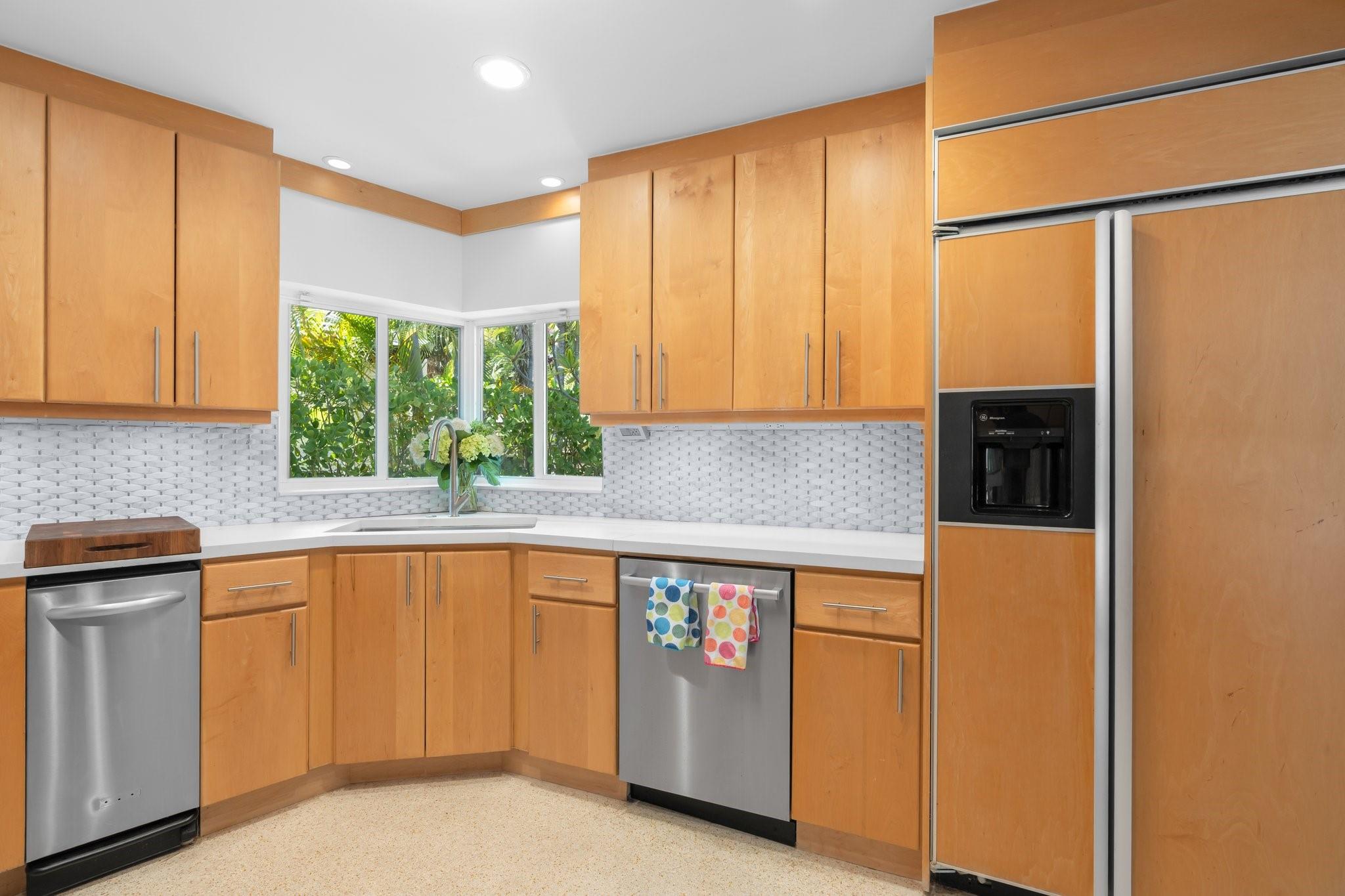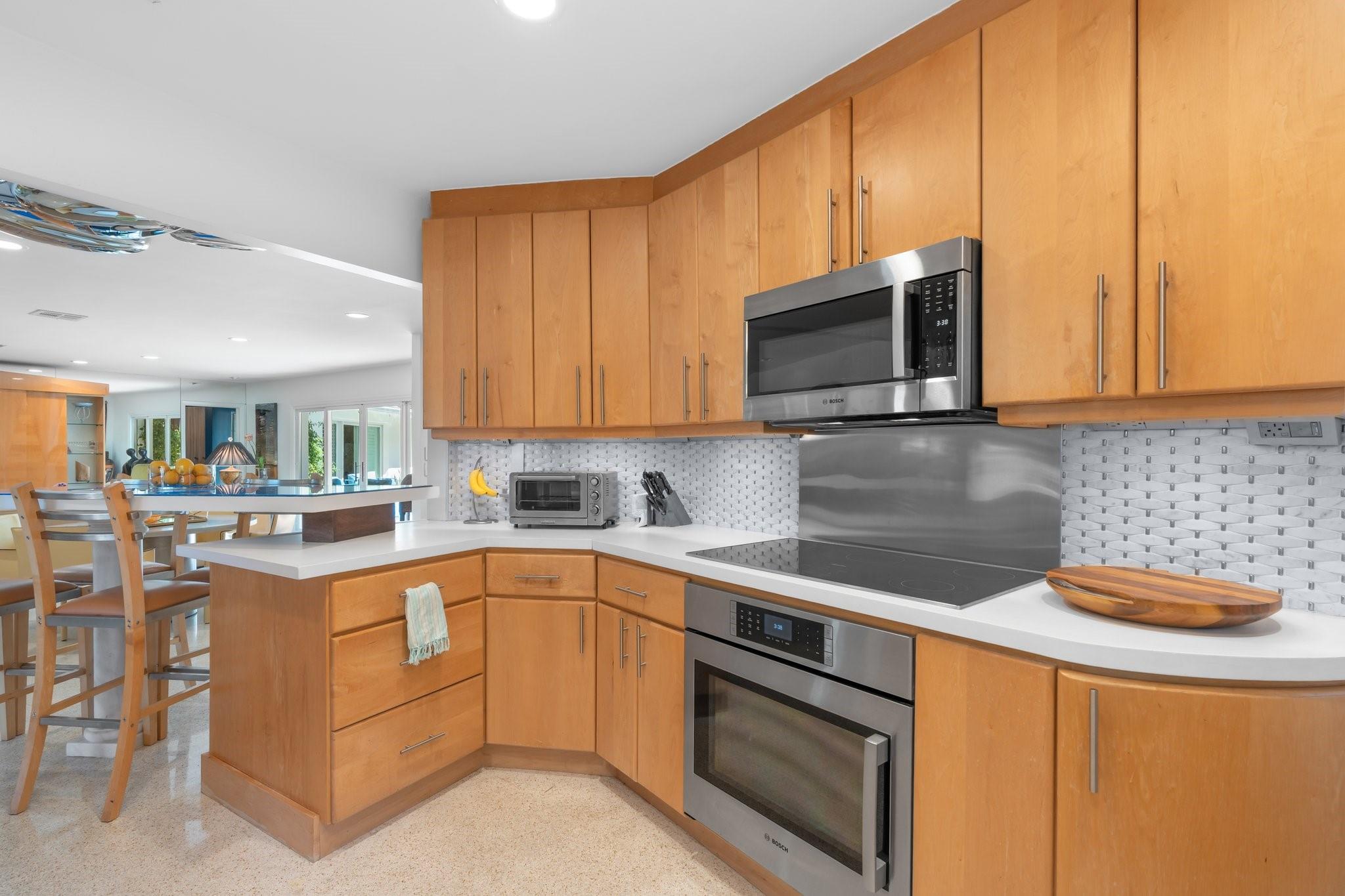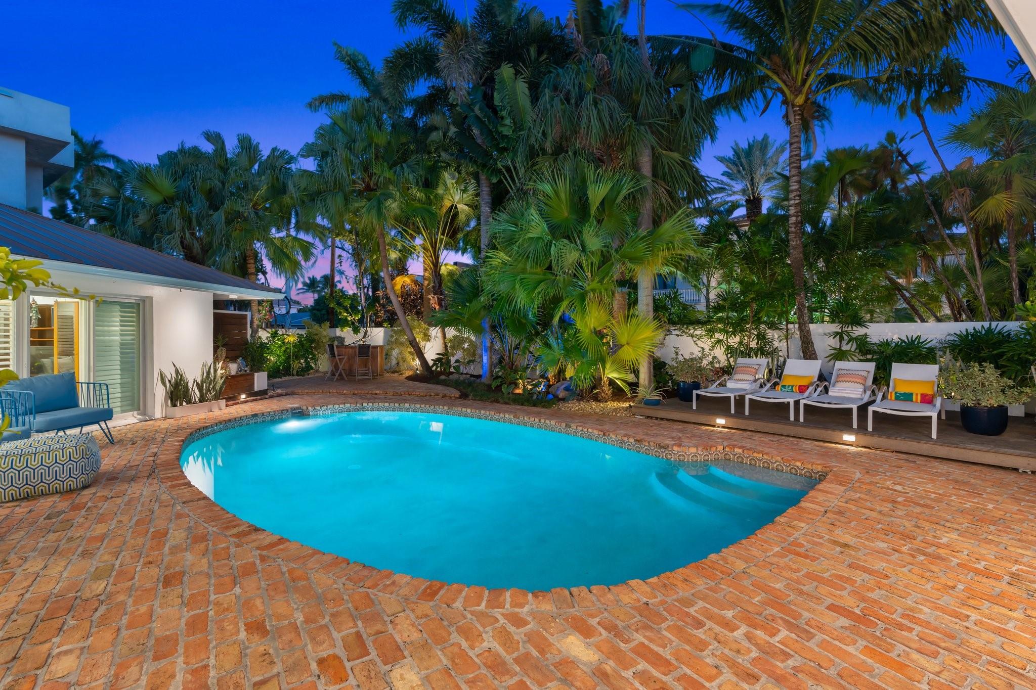 This Hidden Gem Combines A Very Private Pool w/no Fixed Bridges To The Ocean In A Lush Tropical Setting. A 3 Bed, 2 1/2 Bath, 2-Car Garage Home w/ Gorgeous Restored Terrazzo Floors, Hi-End Appliances, Beautiful Countertops & Backsplashes Adorn The Very Cool Mid-Century Kitchen, w/ Coffee Station, Pantry & Lunch Bar. The Floor Plan Has The Flow Of A Modern, Open Plan w/ Defined Spaces For Dining, Entertaining, Home Office/Den, Wet Bar/Media Room w/ 2-Sided Fireplace, AND VAULTED CEILINGS! Plus 600sf Covered Outdoor Space. Dock w/ Power, Water, 12,000 lb Boat Lift. Separate Irrigation Meter, Separate Garage Mini-Split A/C, New Roof 2020, New A/C 2022, New Ducts In 2024. Tropical, Beautiful, Complete. This Home Is Move In Condition For Your Most Particular & Interesting Clients.