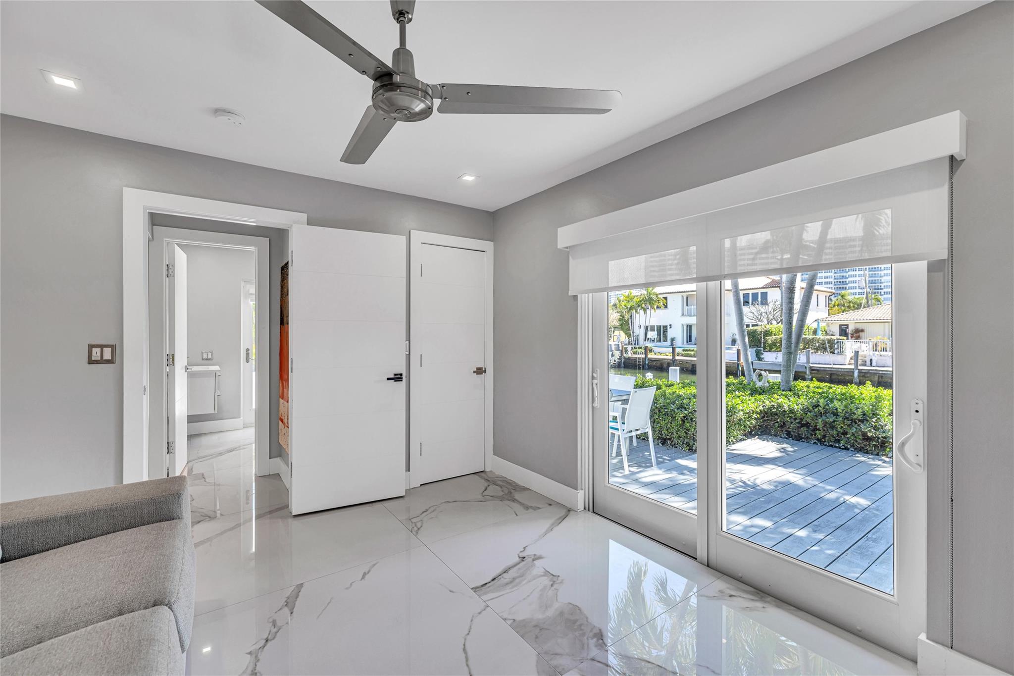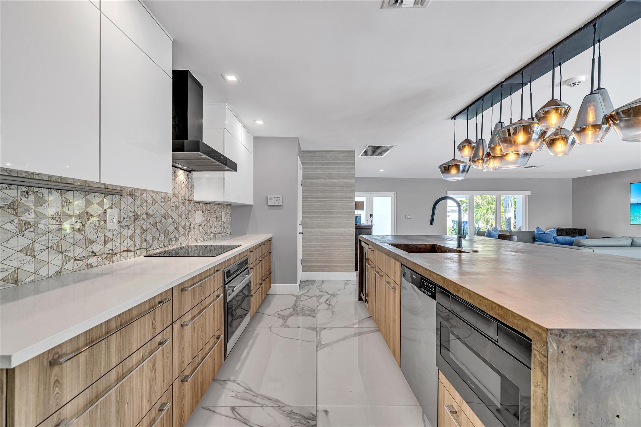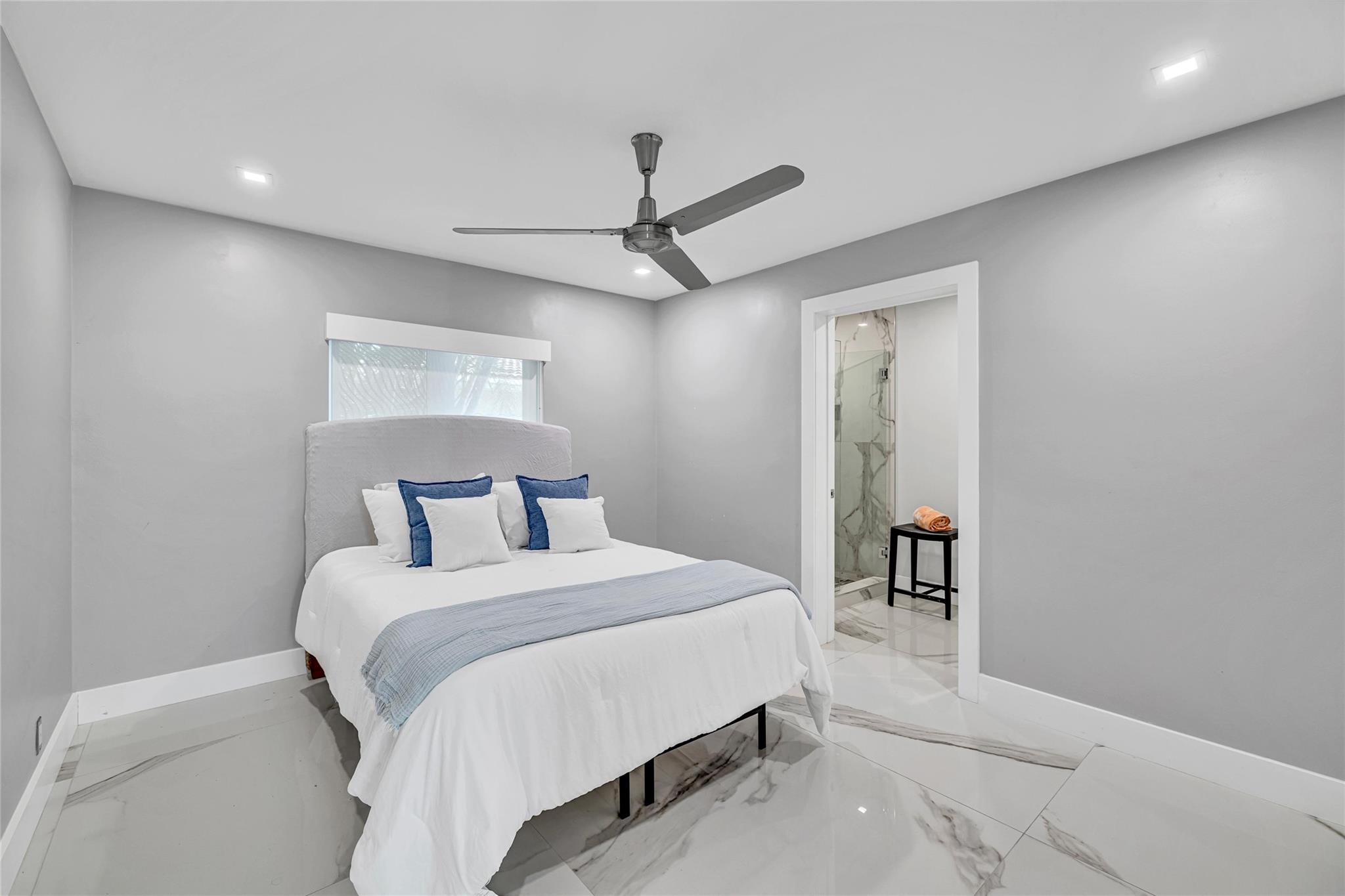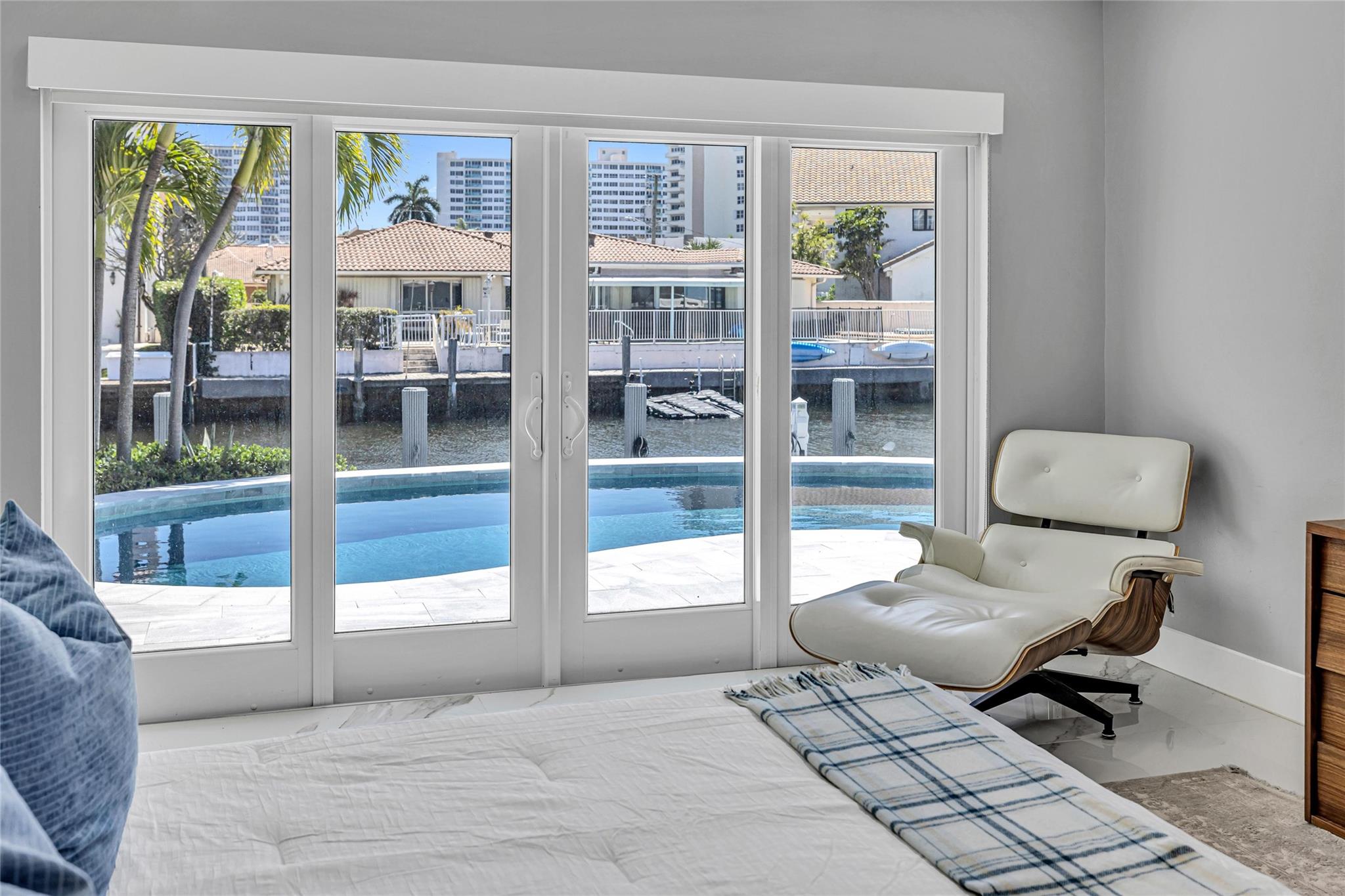 Outstanding waterfront home blocks to the beach in gated Bermuda Riviera. Modern interiors blend seamlessly with the outdoors through wide, sliding glass to a tiered patio and dock surrounding the pool. Designed for entertaining, the kitchen features a long center island, modern appliances and ample storage. The split plan allows each bedroom to enjoy privacy. The primary suite is a quiet retreat with sliders out to the pool, a massive walk-in closet and a 13 x 18 foot bathroom featuring a multi-spray shower. All three baths are updated in modern finishes. 16 foot squares of porcelain flooring is consistent throughout the house. The oversized garage has twin bays with extra wide doors. Multiple dining and shopping options are located within minutes of the property. Home Warranty Included