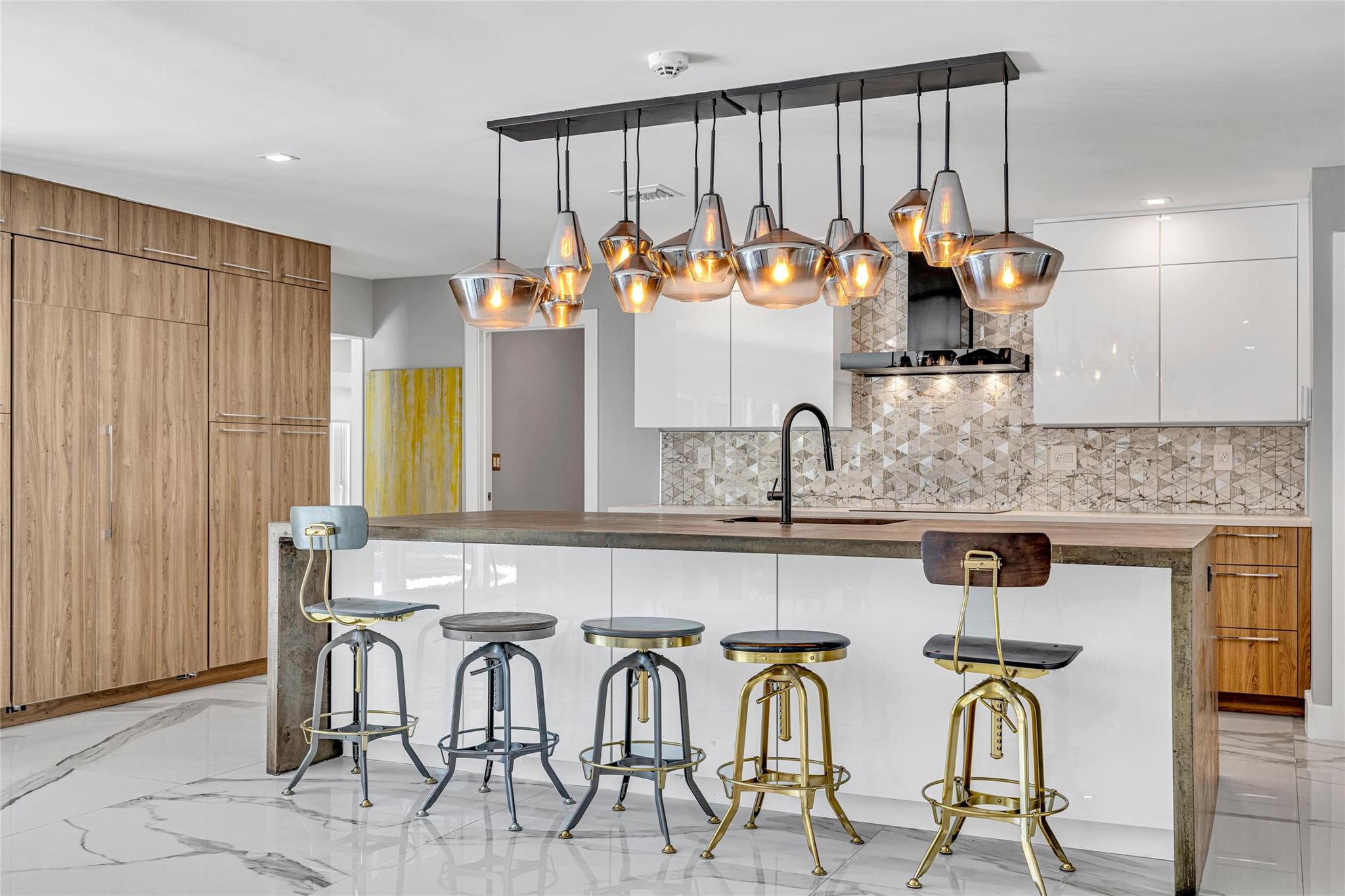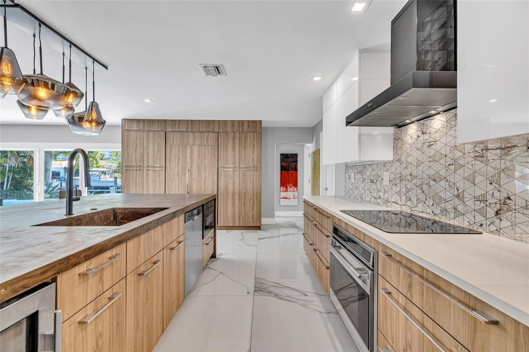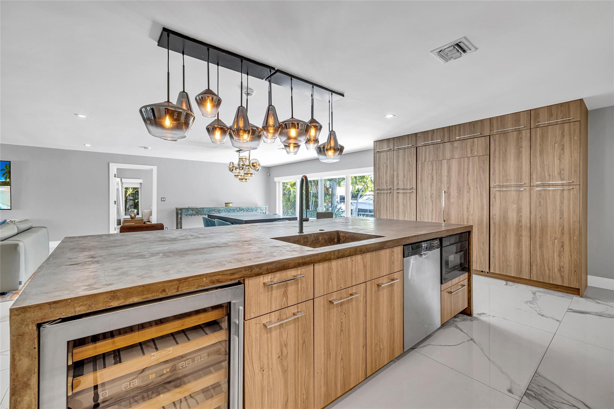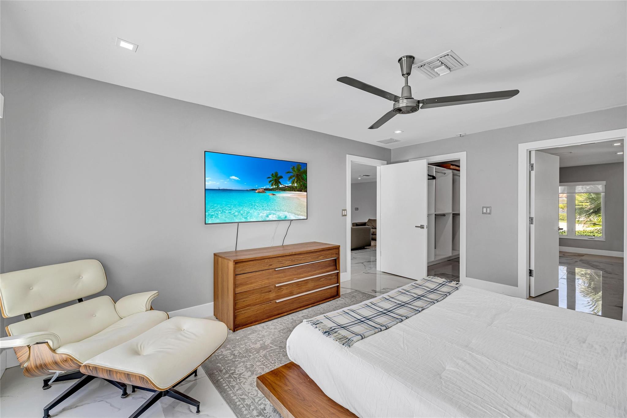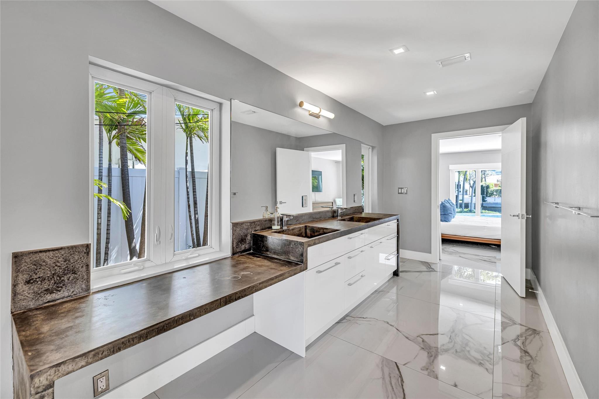 Outstanding waterfront home blocks to the beach in gated Bermuda Riviera. Modern interiors blend seamlessly with the outdoors through wide, sliding glass to a tiered patio and dock surrounding the pool. Designed for entertaining, the kitchen features a long center island, modern appliances and ample storage. The split plan allows each bedroom to enjoy privacy. The primary suite is a quiet retreat with sliders out to the pool, a massive walk-in closet and a 13 x 18 foot bathroom featuring a multi-spray shower. All three baths are updated in modern finishes. 16 foot squares of porcelain flooring is consistent throughout the house. The oversized garage has twin bays with extra wide doors. Multiple dining and shopping options are located within minutes of the property. Home Warranty Included