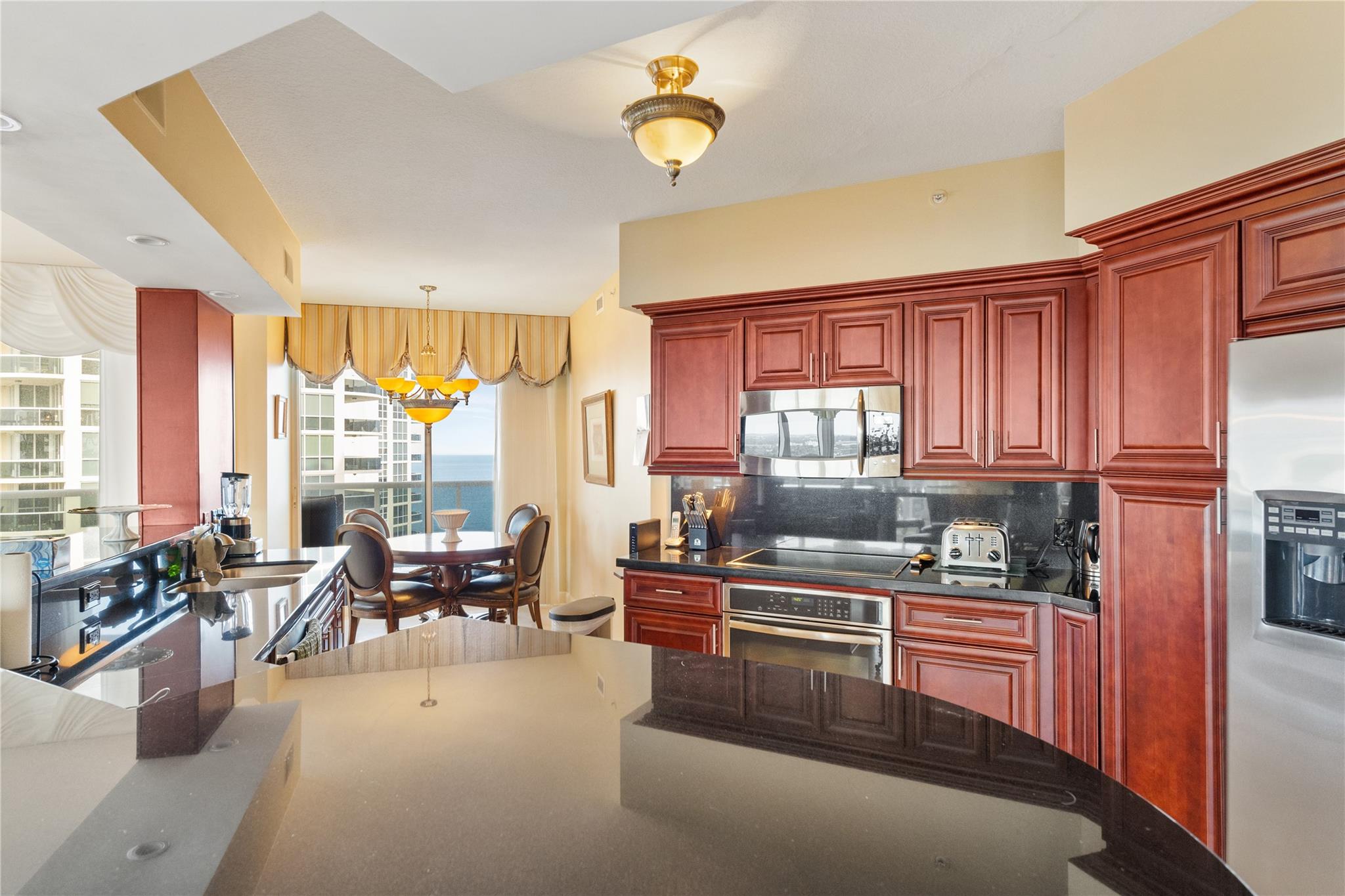 DOUBLE CORNER with PANORAMIC VIEWS of ocean, city & waterway. Two huge wrap-around terraces, Open kitchen, built in bar, marble floors & private elevator. NOTE that 3rd bedroom is open as a den, a wall can easily be constructed. RESORT-LIKE living w poolside restaurant, 2 clay (har-tru) tennis courts, tennis pro, concierge, private beach pavilion w tiki huts / BBQ/ beach attendant & cabanas, valet PLUS 2 SELF PARKING SPACES in garage (one has an electric charger) 2 pools, 2 spas, toddler pool and PET park. TWO PETS, ANY SIZE, OK.