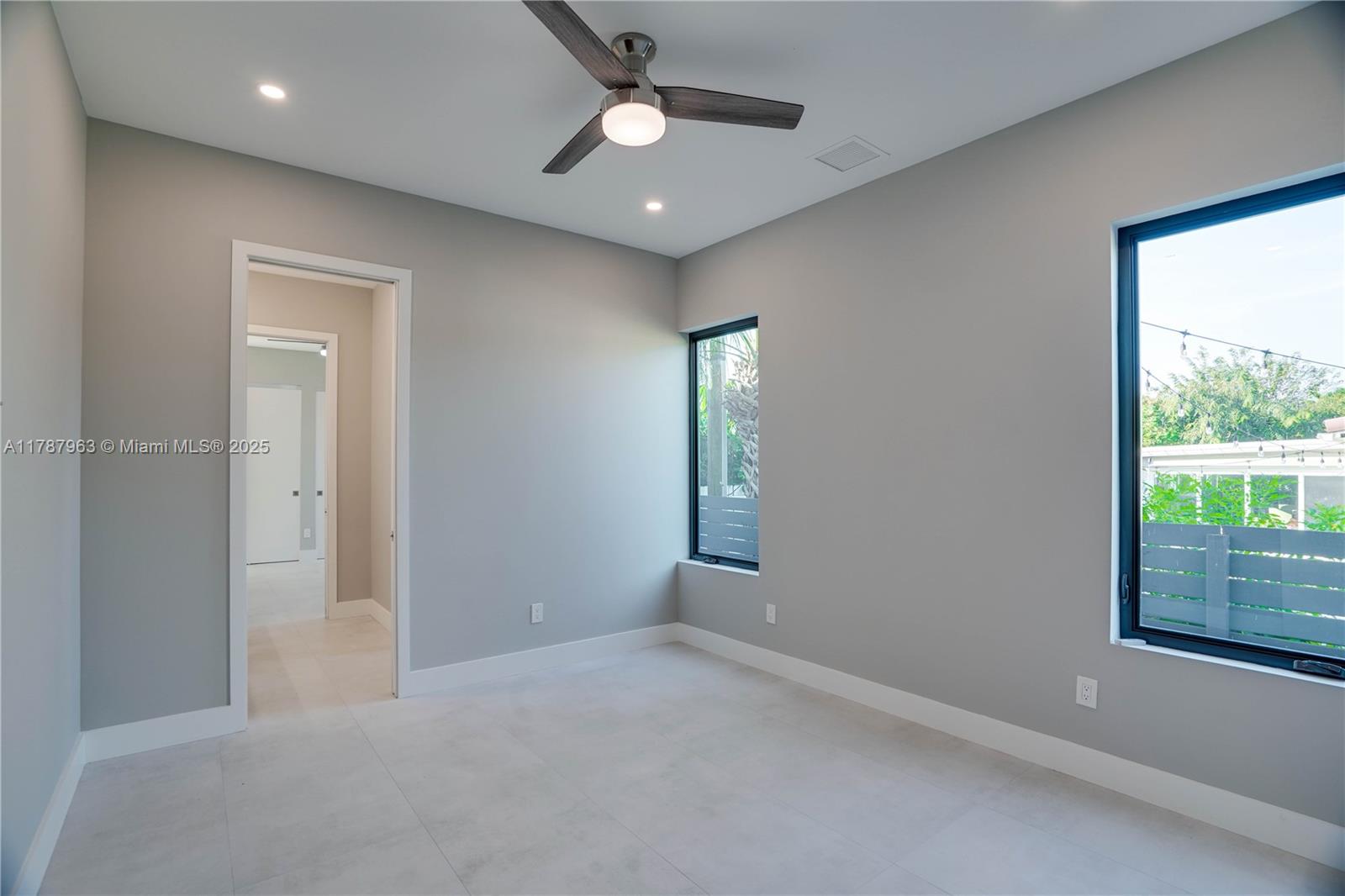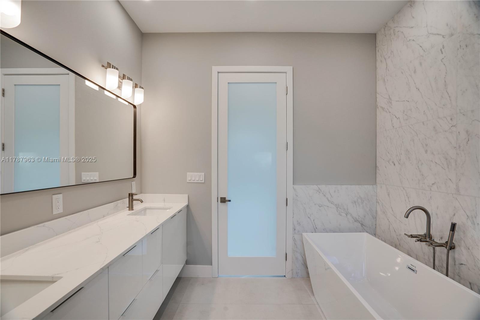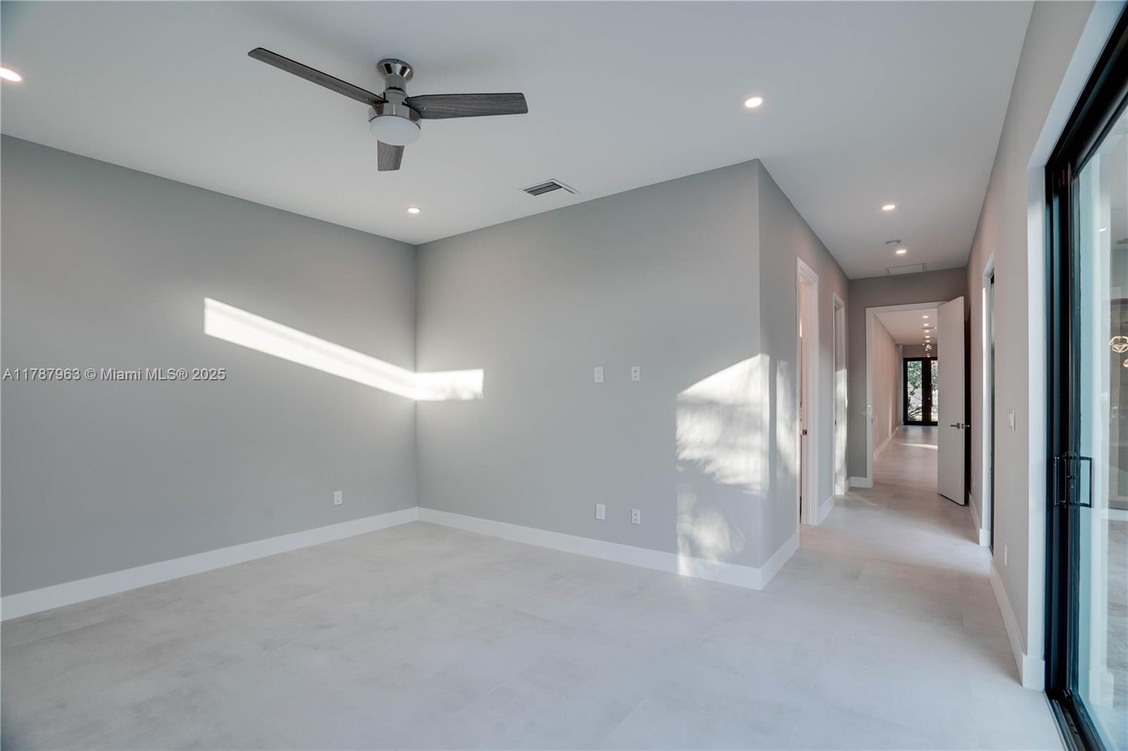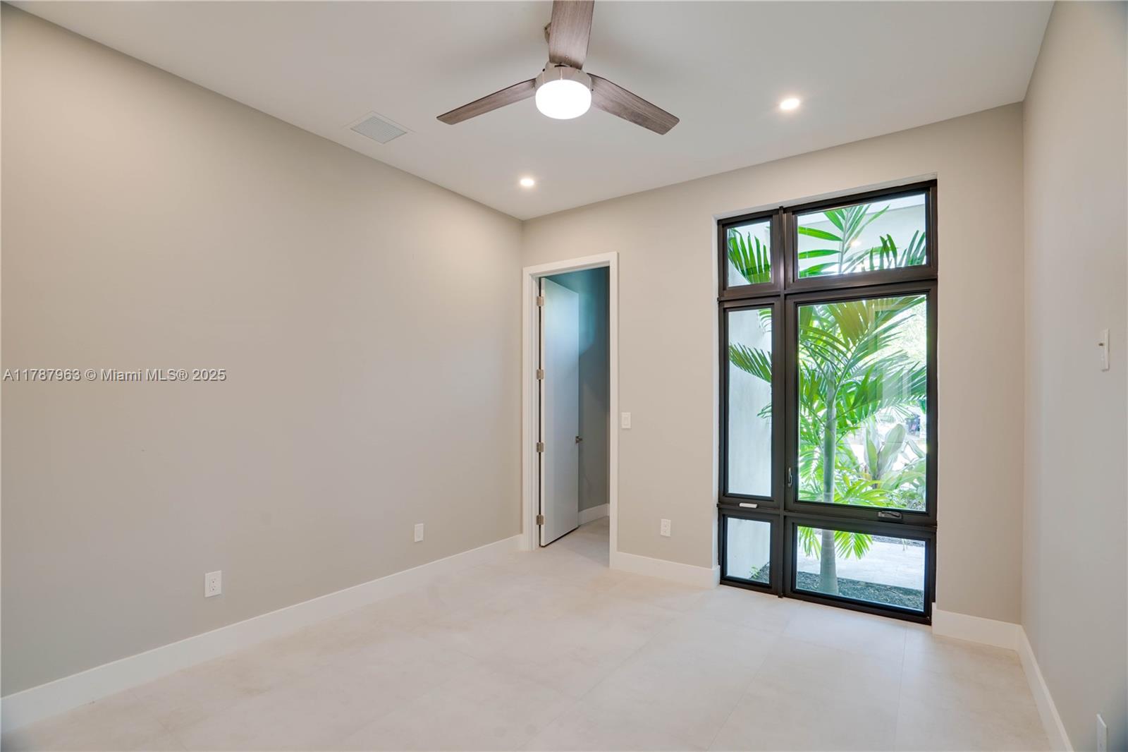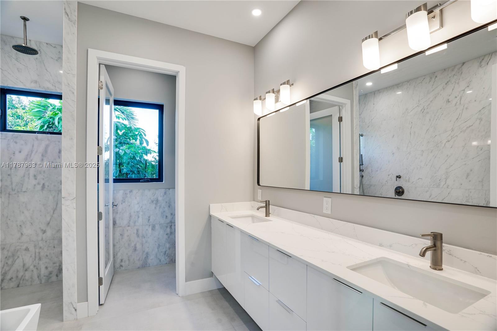NEW CONSTRUCTION MODERN POOL HOME, immediate occupancy, one story single family residence with high end finishes, offers pure luxury and unparalleled comfort. Designed for those who appreciate both style and function, the house features 4 bdr, all within an open and airy layout, soaring 10 to 17 foot ceilings. The primary suite boasts a walk-in closet, luxurious marble 3 baths, 2 car garage with dedicated circuit for EV charger, security system. Italian kitchen cabinetry and large island. Lapitec countertops and porcelain floors, impact windows and sliding doors. Extra raised, seven foot flood elevation floor. Covered patio overlooking a saltwater pool and a beautifully landscaped garden with palms. Your opportunity to own a brand new custom built home, in a desirable neighborhood, no HOA.
