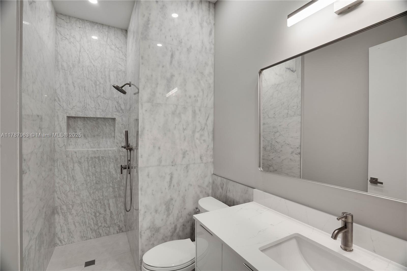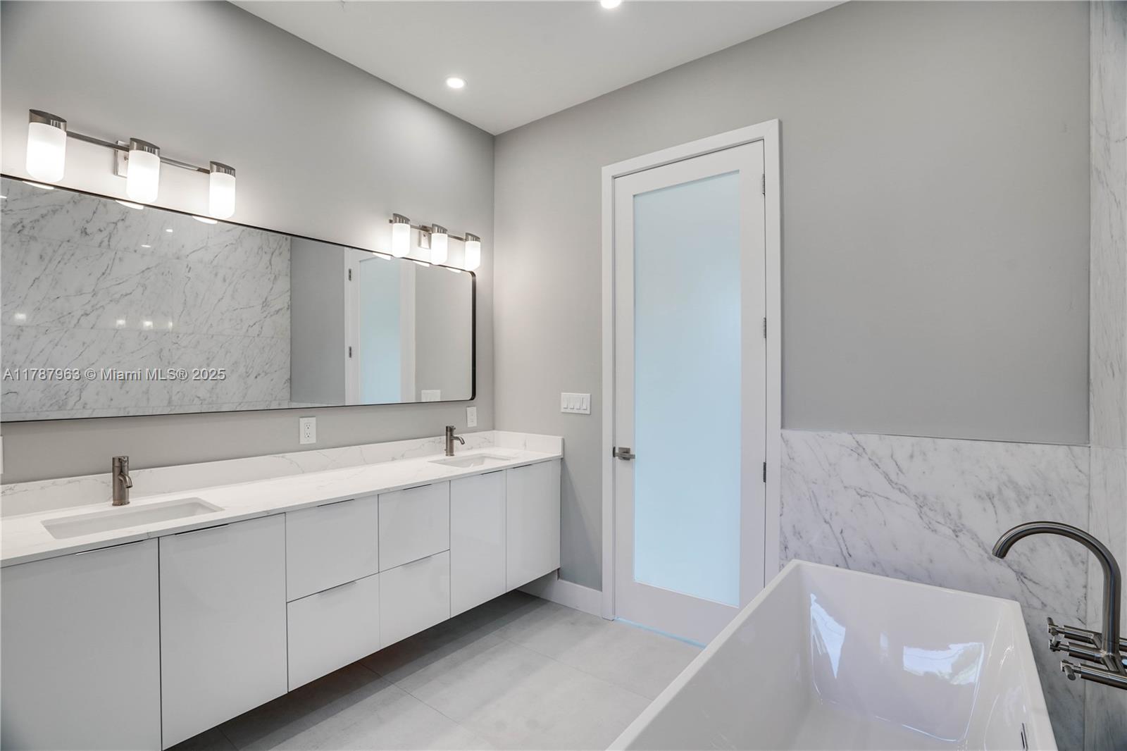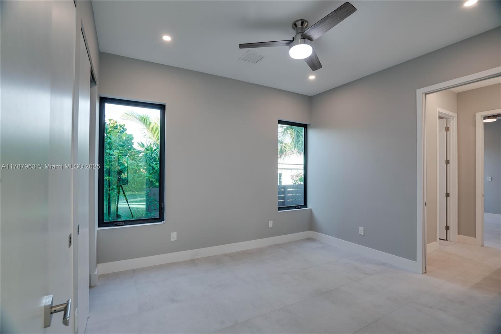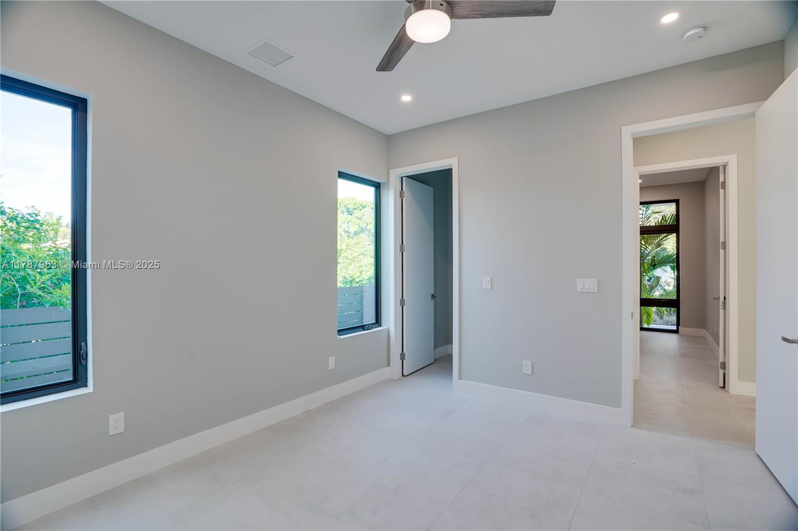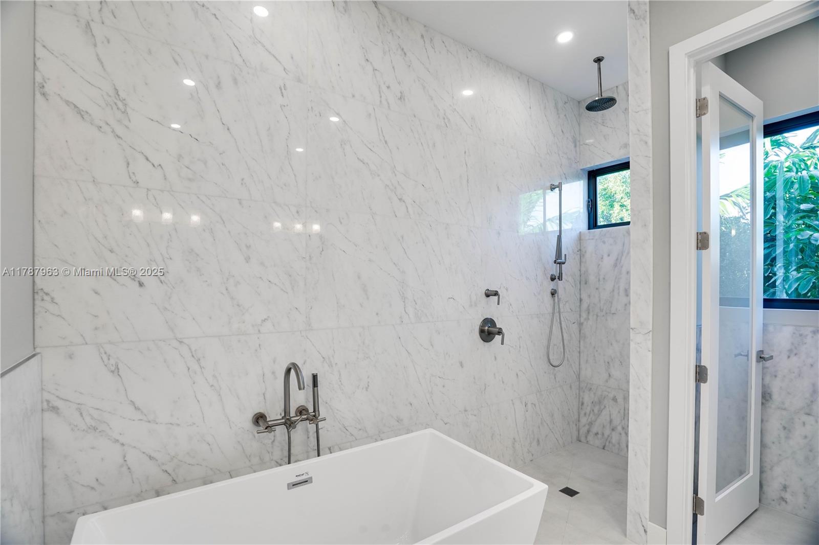 NEW CONSTRUCTION MODERN POOL HOME, immediate occupancy, one story single family residence with high end finishes, offers pure luxury and unparalleled comfort. Designed for those who appreciate both style and function, the house features 4 bdr, all within an open and airy layout, soaring 10 to 17 foot ceilings. The primary suite boasts a walk-in closet, luxurious marble 3 baths, 2 car garage with dedicated circuit for EV charger, security system. Italian kitchen cabinetry and large island. Lapitec countertops and porcelain floors, impact windows and sliding doors. Extra raised, seven foot flood elevation floor. Covered patio overlooking a saltwater pool and a beautifully landscaped garden with palms. Your opportunity to own a brand new custom built home, in a desirable neighborhood, no HOA.