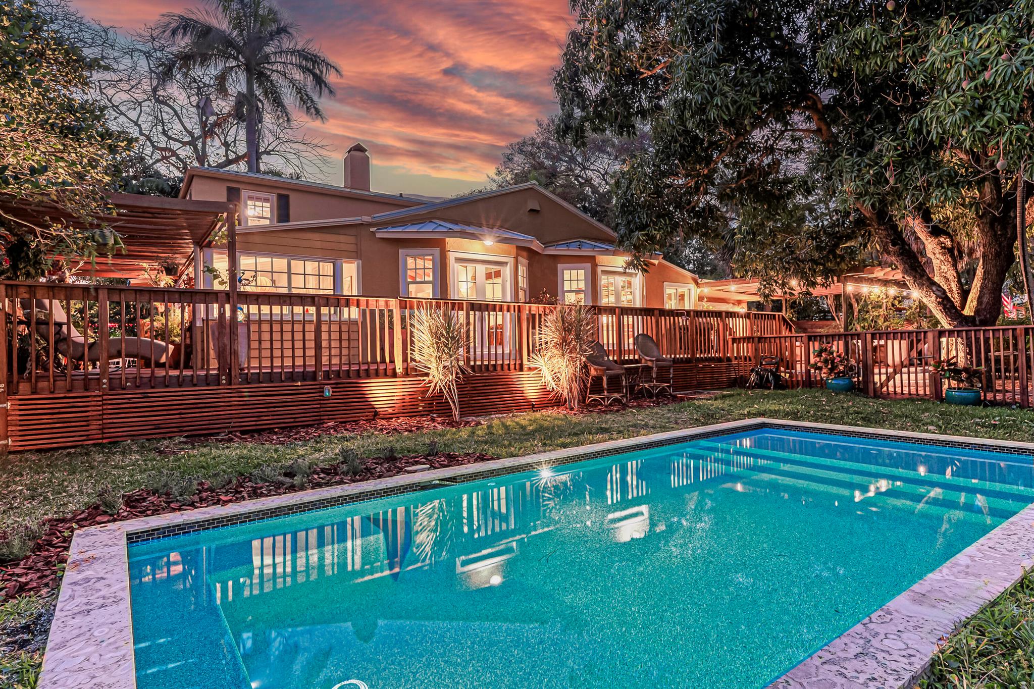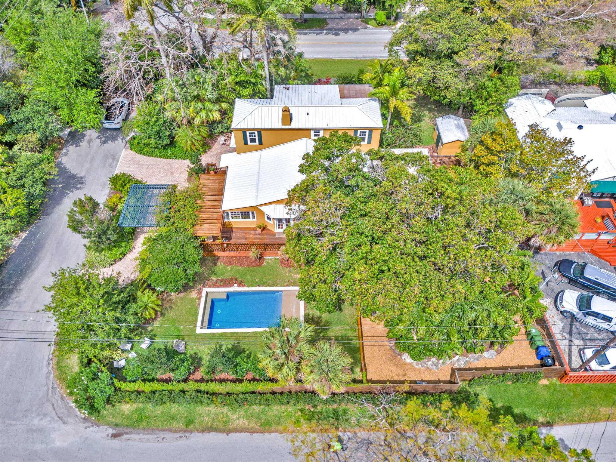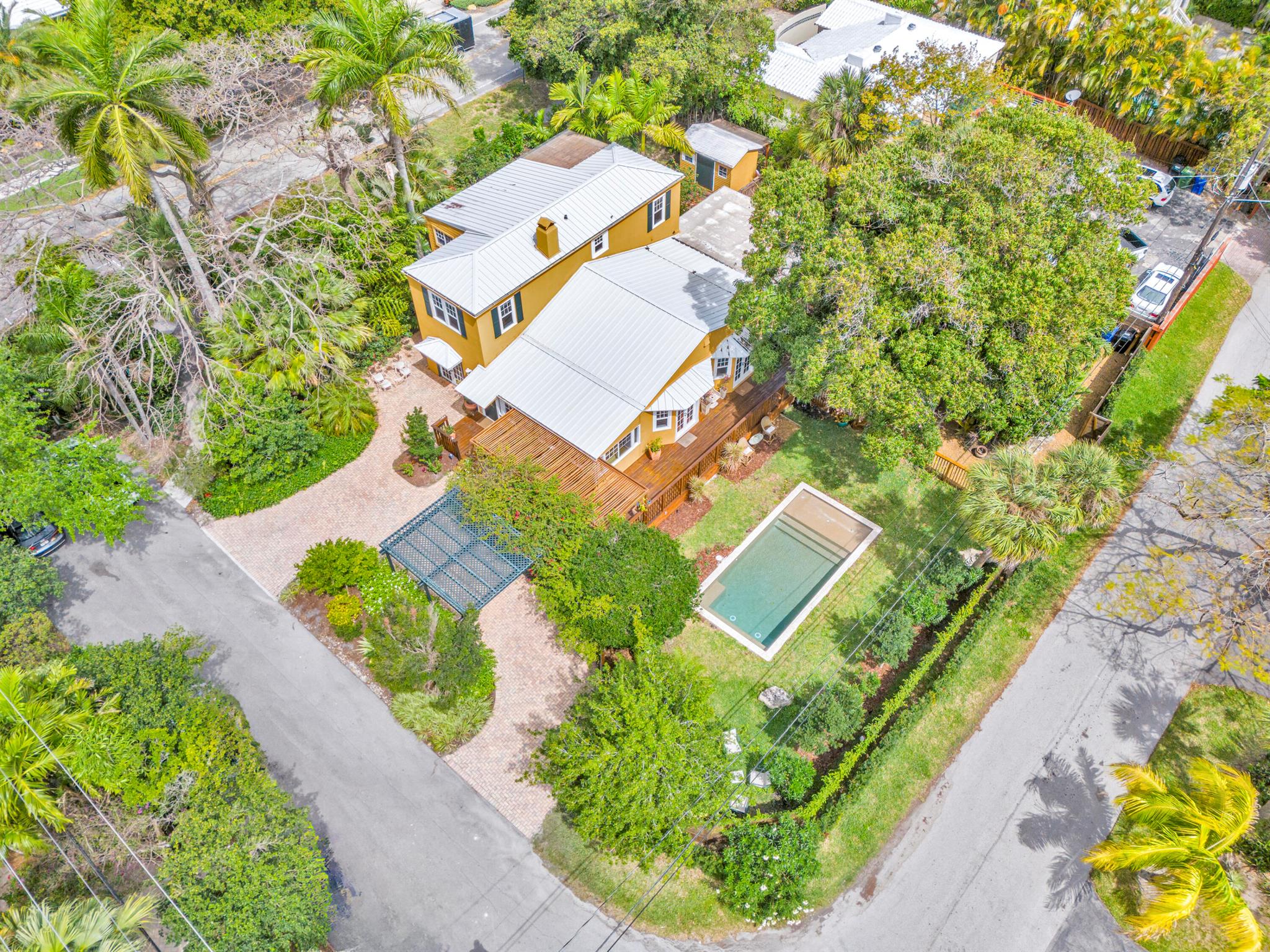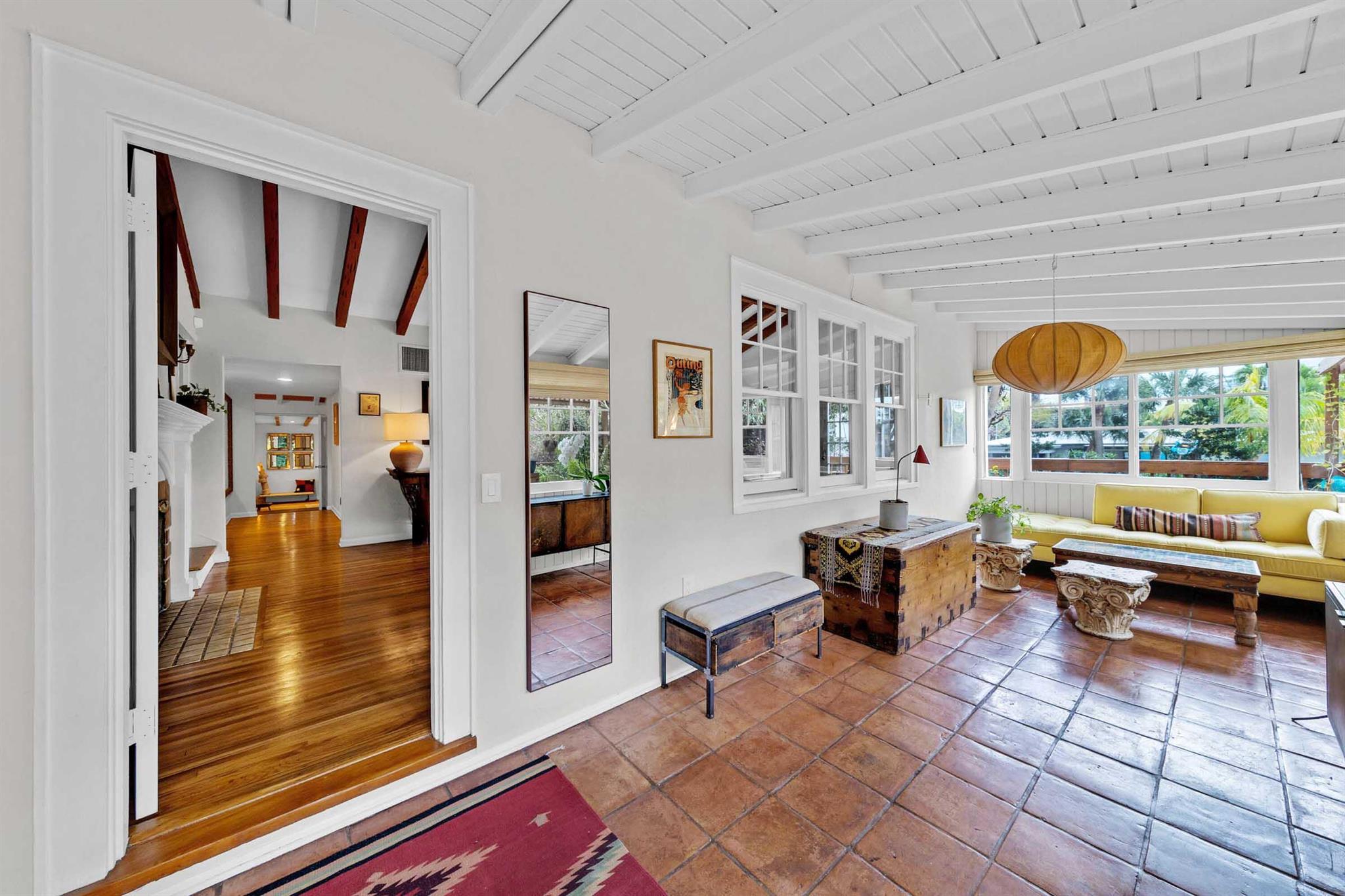 Timeless 1939 Victoria Park home on rare double lot! CBS + frame construction, rich original hardwood floors, exposed wood beam ceilings, modern chef-inspired kitchen w/Sub-Zero fridge, Wolf gas range, quartzite counters. Spacious 5 beds + 2 bonus rooms, 3.5 baths, primary suite w/luxurious bath + walk-in closet. Impact glass, metal roof, custom landscape lighting, large private pool, wraparound porches, balconies, fruit trees. Walkable to Holiday Park, playground, tennis, pickleball, dog park. Minutes to Las Olas, beaches, boat ramps. Zoned RS-8 double lot. No HOA. Elevated ridge.