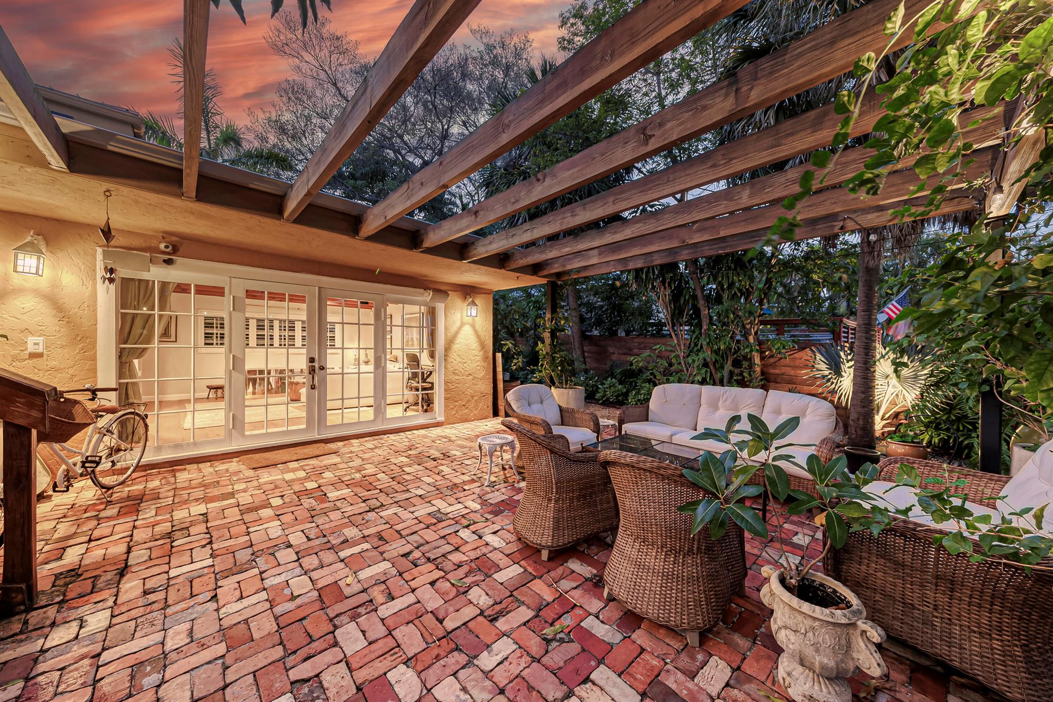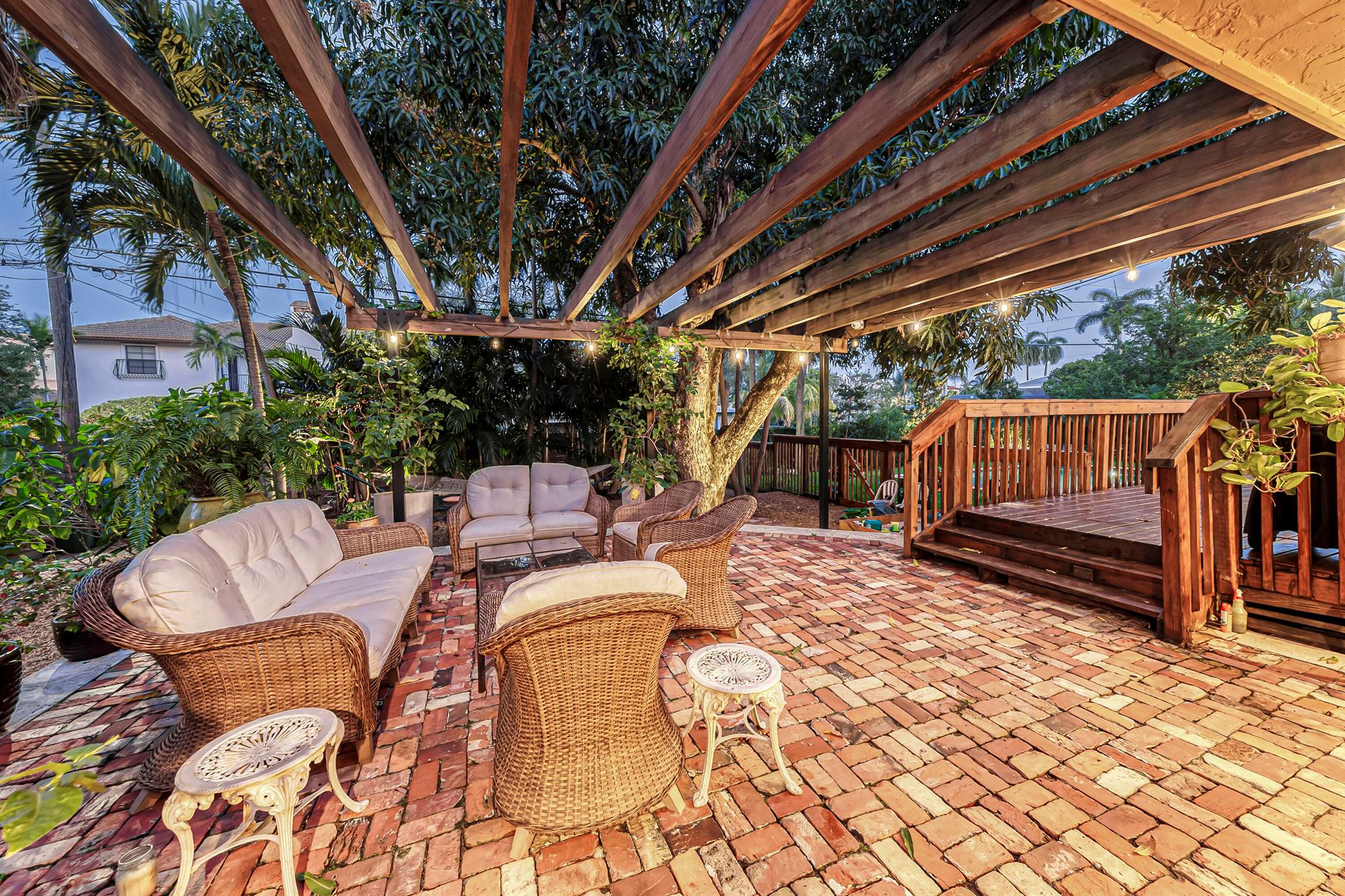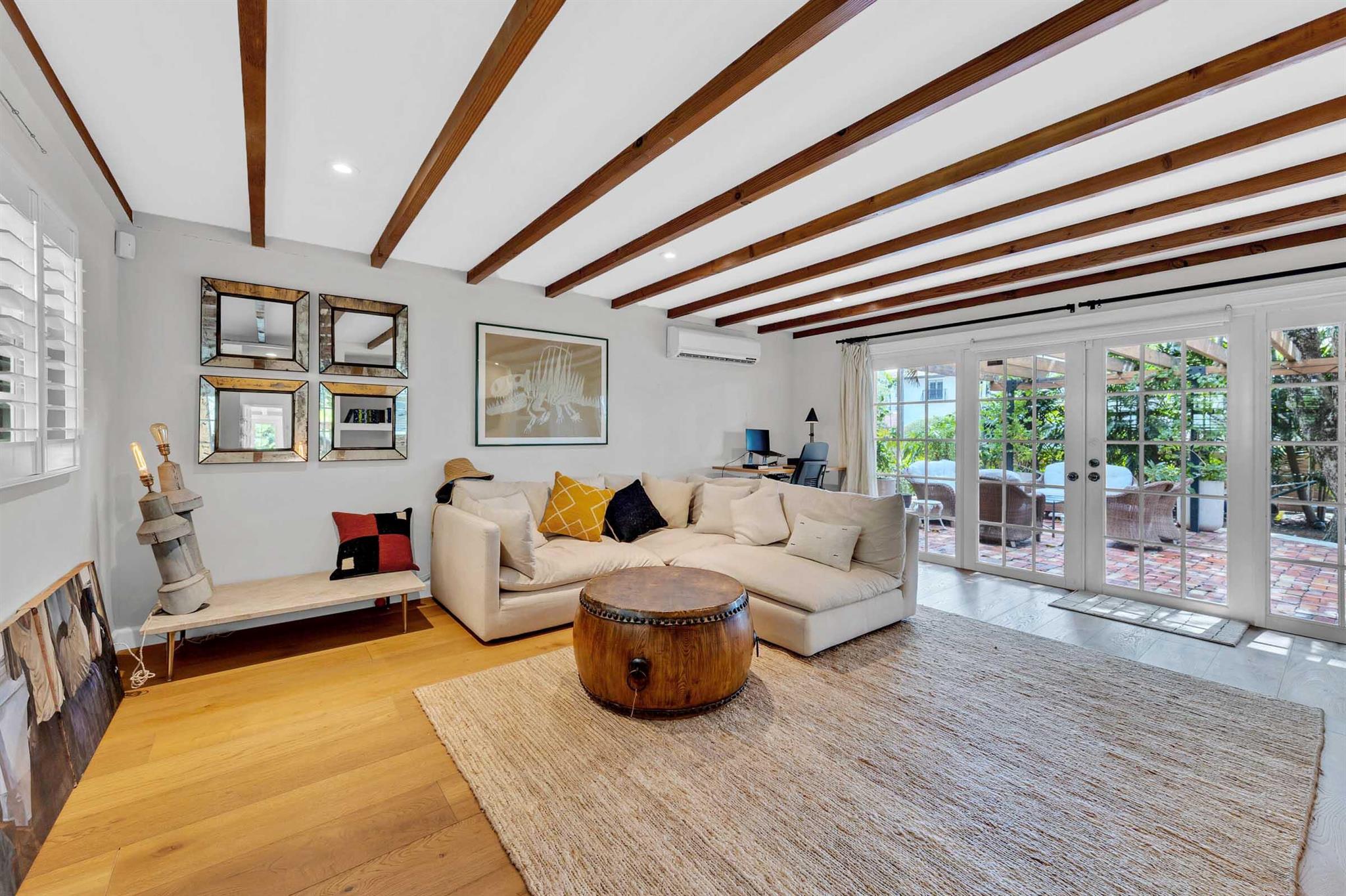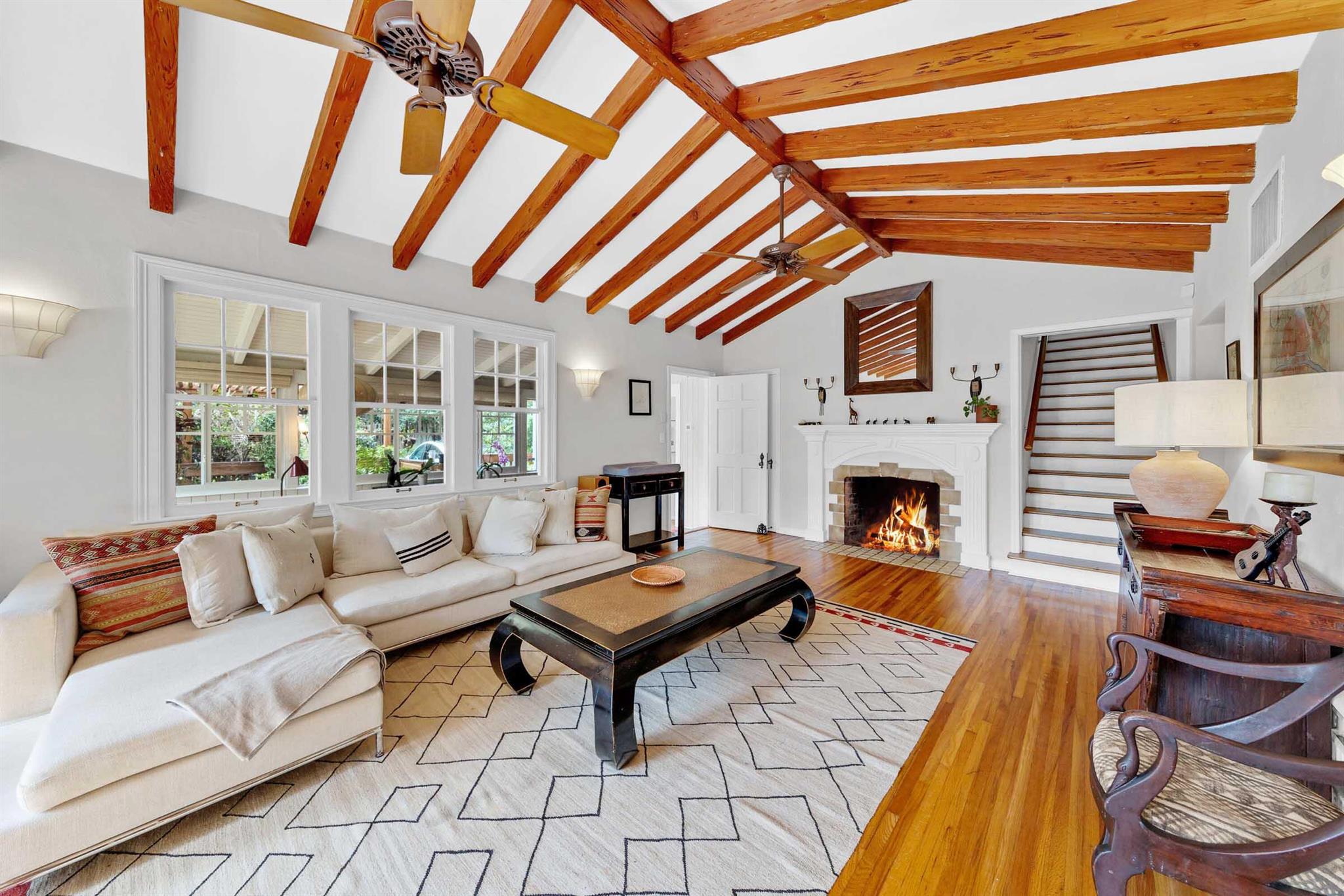 Timeless 1939 Victoria Park home on rare double lot! CBS + frame construction, rich original hardwood floors, exposed wood beam ceilings, modern chef-inspired kitchen w/Sub-Zero fridge, Wolf gas range, quartzite counters. Spacious 5 beds + 2 bonus rooms, 3.5 baths, primary suite w/luxurious bath + walk-in closet. Impact glass, metal roof, custom landscape lighting, large private pool, wraparound porches, balconies, fruit trees. Walkable to Holiday Park, playground, tennis, pickleball, dog park. Minutes to Las Olas, beaches, boat ramps. Zoned RS-8 double lot. No HOA. Elevated ridge.